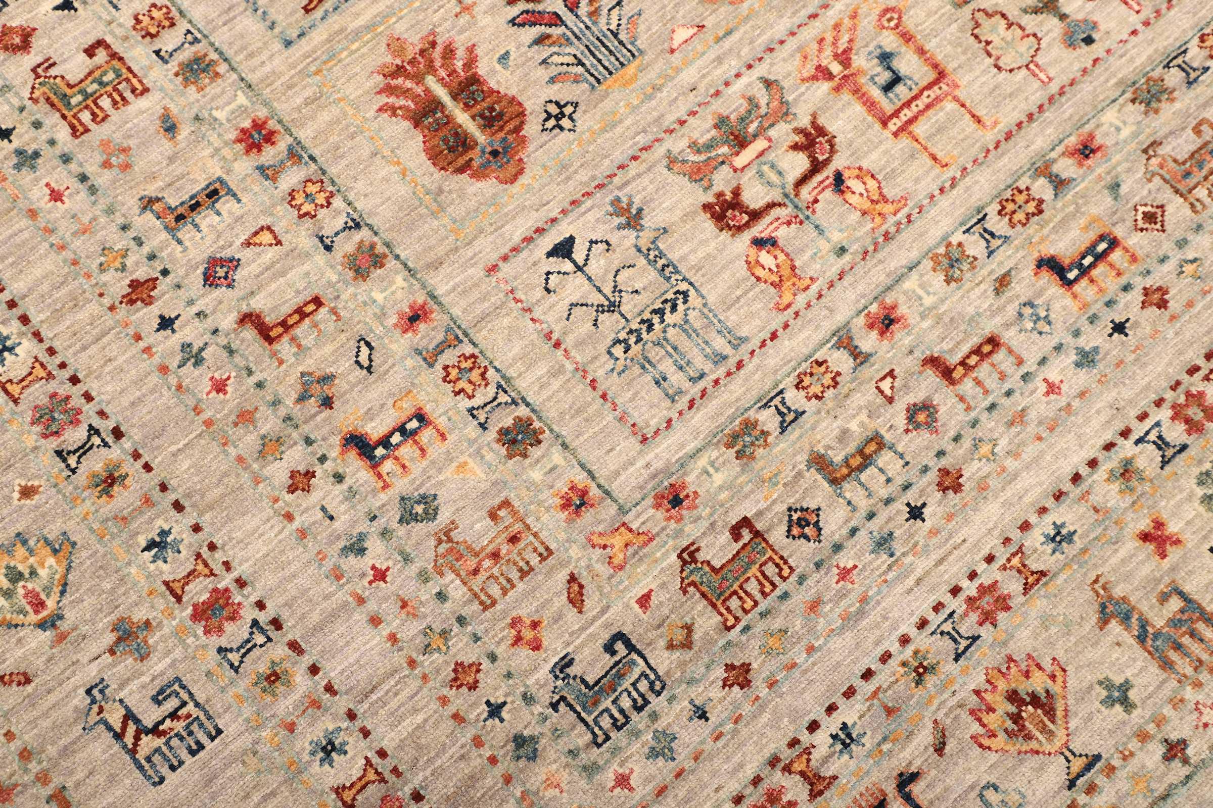 Questo tappeto è realizzato in lana di pecora filata a mano di altissima qualità. Soprattutto in Iran (ex Persia), Afghanistan e Pakistan la lana viene ancora filata a mano prima che inizi l'annodatura vera e propria del tappeto. La lana si è dimostrata nei secoli un materiale naturale ed estremamente resistente. Tra le altre cose, ha proprietà di repellenza allo sporco e di isolamento termico. Allo stesso tempo, la lana è incomparabilmente morbida e ha una lucentezza naturale.