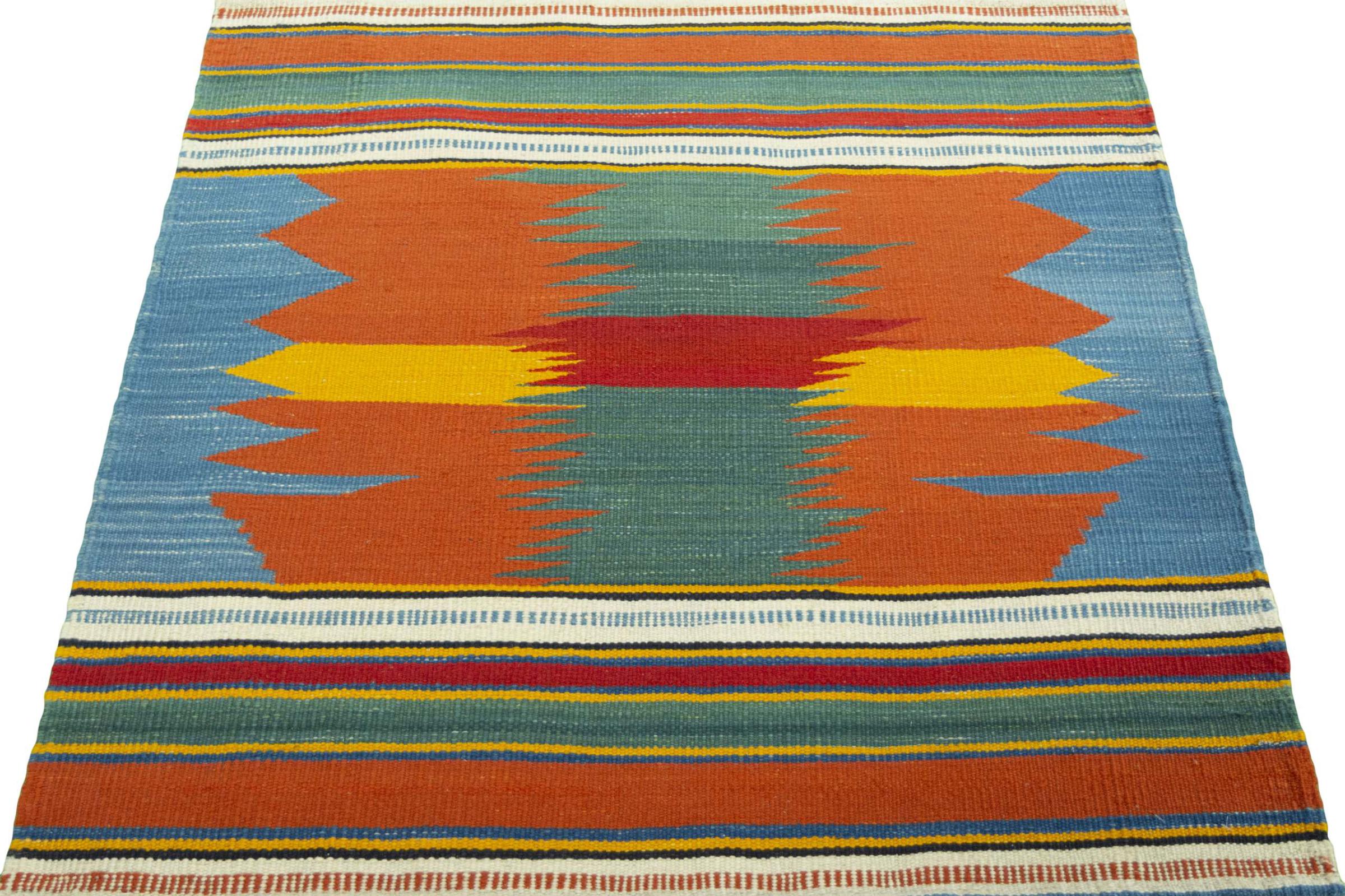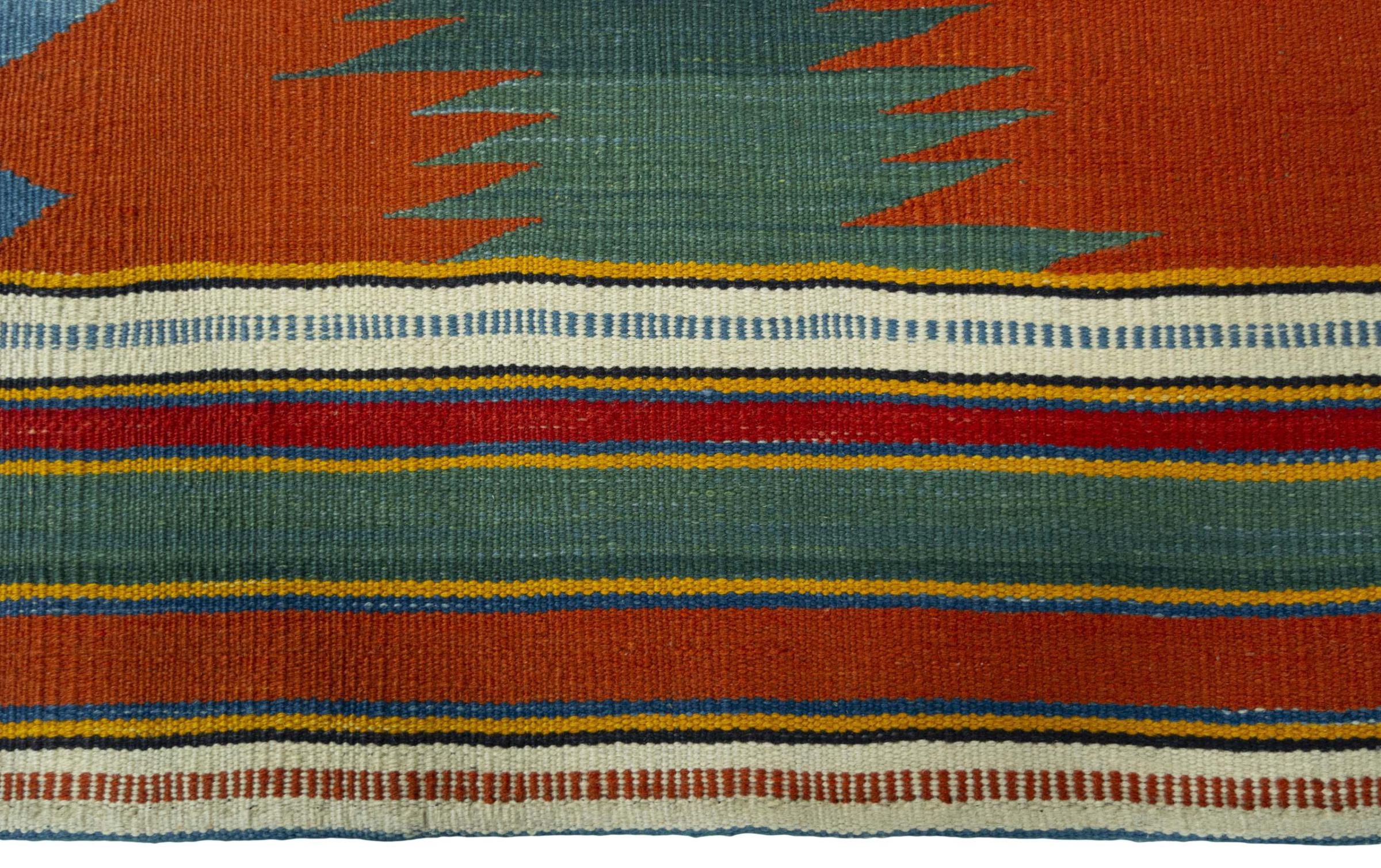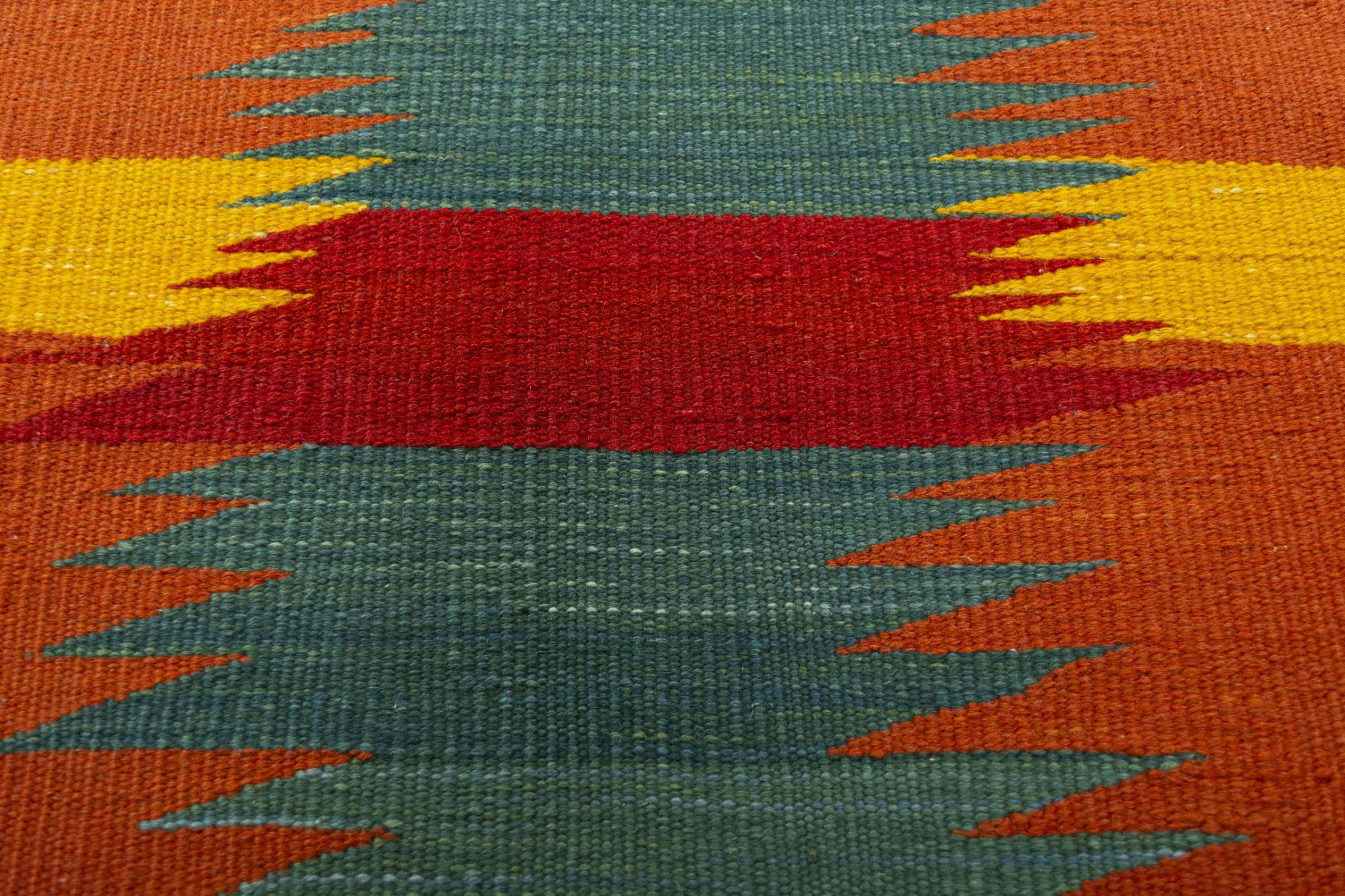Questo Eylisian è un kilim dal design particolarmente pregiato, moderno e a tessitura piatta. La sua lana filata a mano/naturale è stata tessuta a mano secondo il design contemporaneo utilizzando la tradizionale tecnica persiana. La sua qualità robusta e duratura lo rende un elemento accattivante, popolare, contemporaneo e senza tempo nella tua casa.