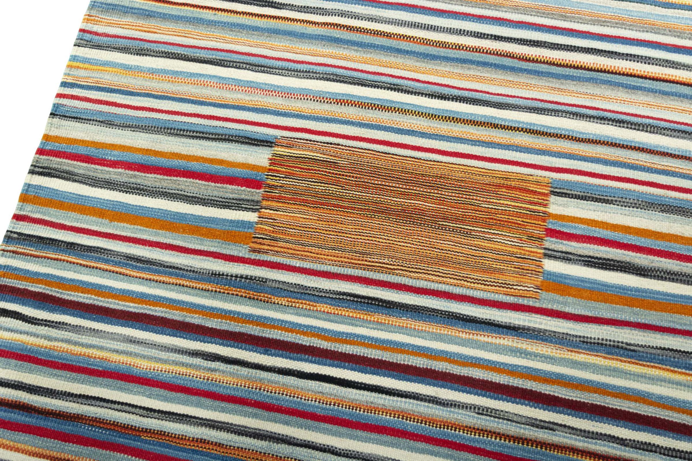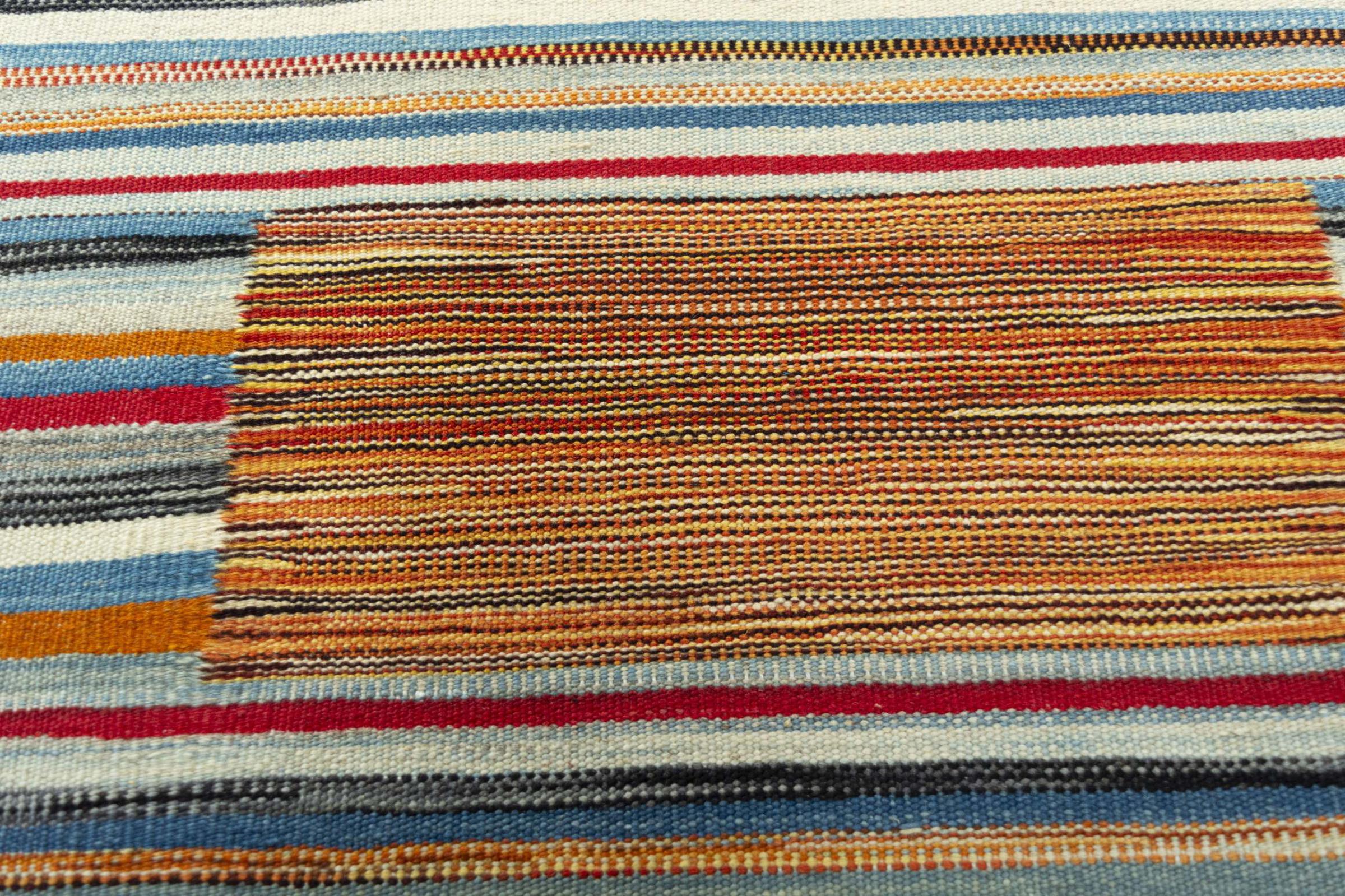 Questo Eylisian è un kilim dal design particolarmente pregiato, moderno e a tessitura piatta. La sua lana filata a mano/naturale è stata tessuta a mano secondo il design contemporaneo utilizzando la tradizionale tecnica persiana. La sua qualità robusta e duratura lo rende un elemento accattivante, popolare, contemporaneo e senza tempo nella tua casa.