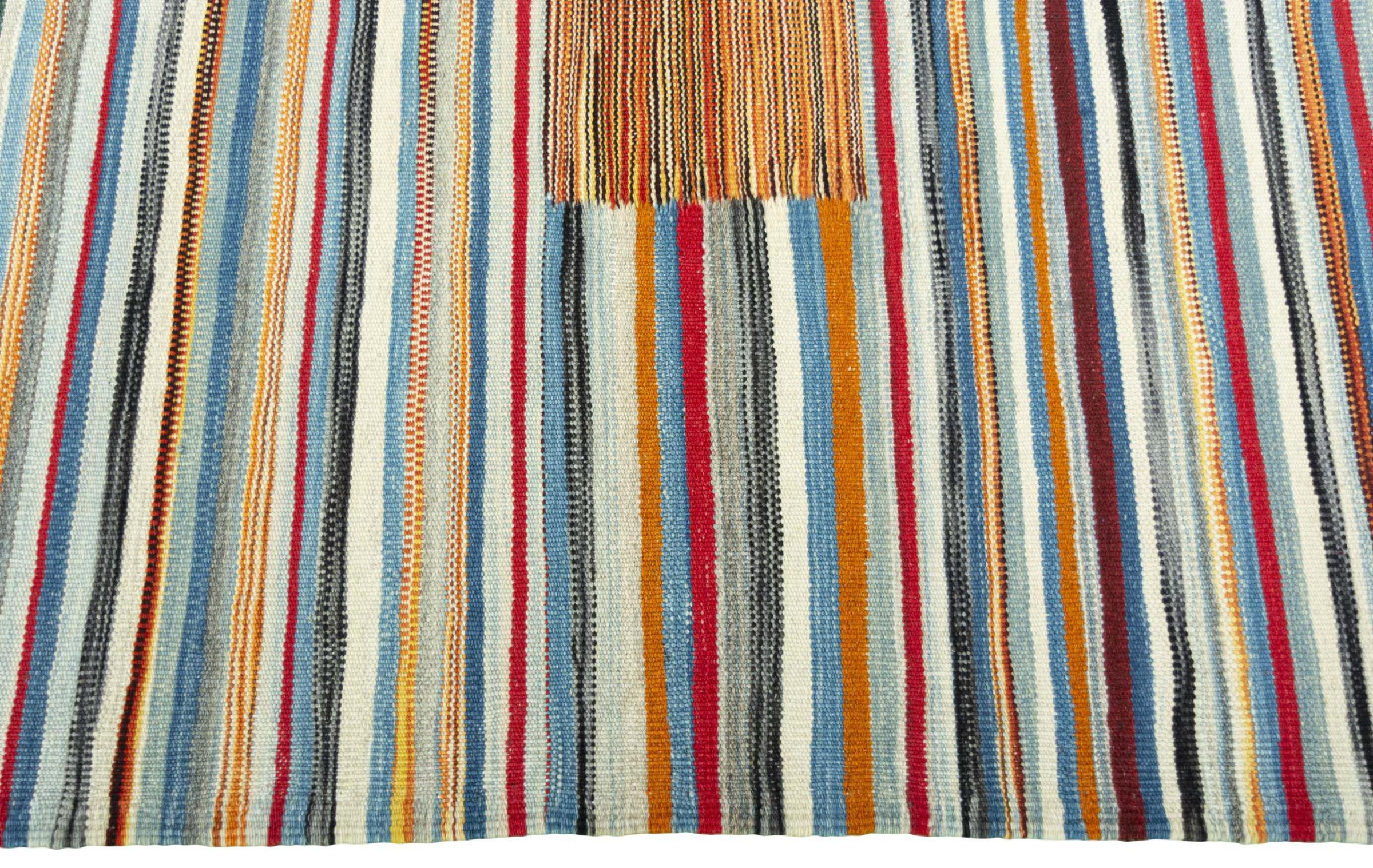Questo tappeto è stato realizzato a mano su un telaio come una trama piatta. Flatweave è il termine usato per descrivere i tappeti che non hanno pelo. Come promette il nome, questi tappeti sono tessuti e non annodati. Il risultato è un tappeto piatto con una superficie strutturata. Le trame piatte non sono così morbide e di solito più sottili dei tappeti annodati. Allo stesso tempo sono molto meno complessi da produrre e di solito possono essere disposti da entrambi i lati (davanti e dietro). I loro motivi sono di solito geometrici, che è determinato dal tessuto.
