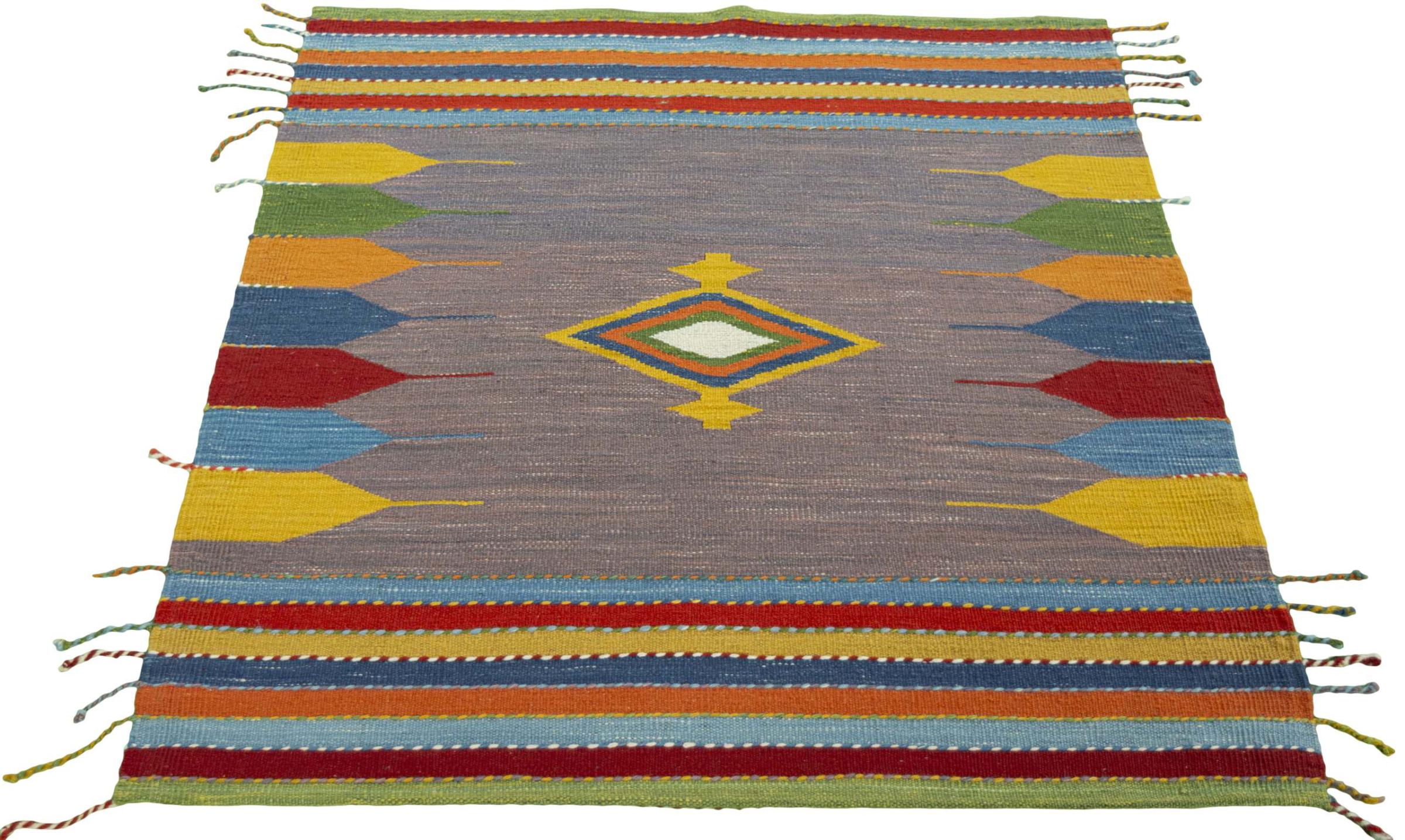 Questo Eylisian è un kilim dal design particolarmente pregiato, moderno e a tessitura piatta. La sua lana filata a mano/naturale è stata tessuta a mano secondo il design contemporaneo utilizzando la tradizionale tecnica persiana. La sua qualità robusta e duratura lo rende un elemento accattivante, popolare, contemporaneo e senza tempo nella tua casa.