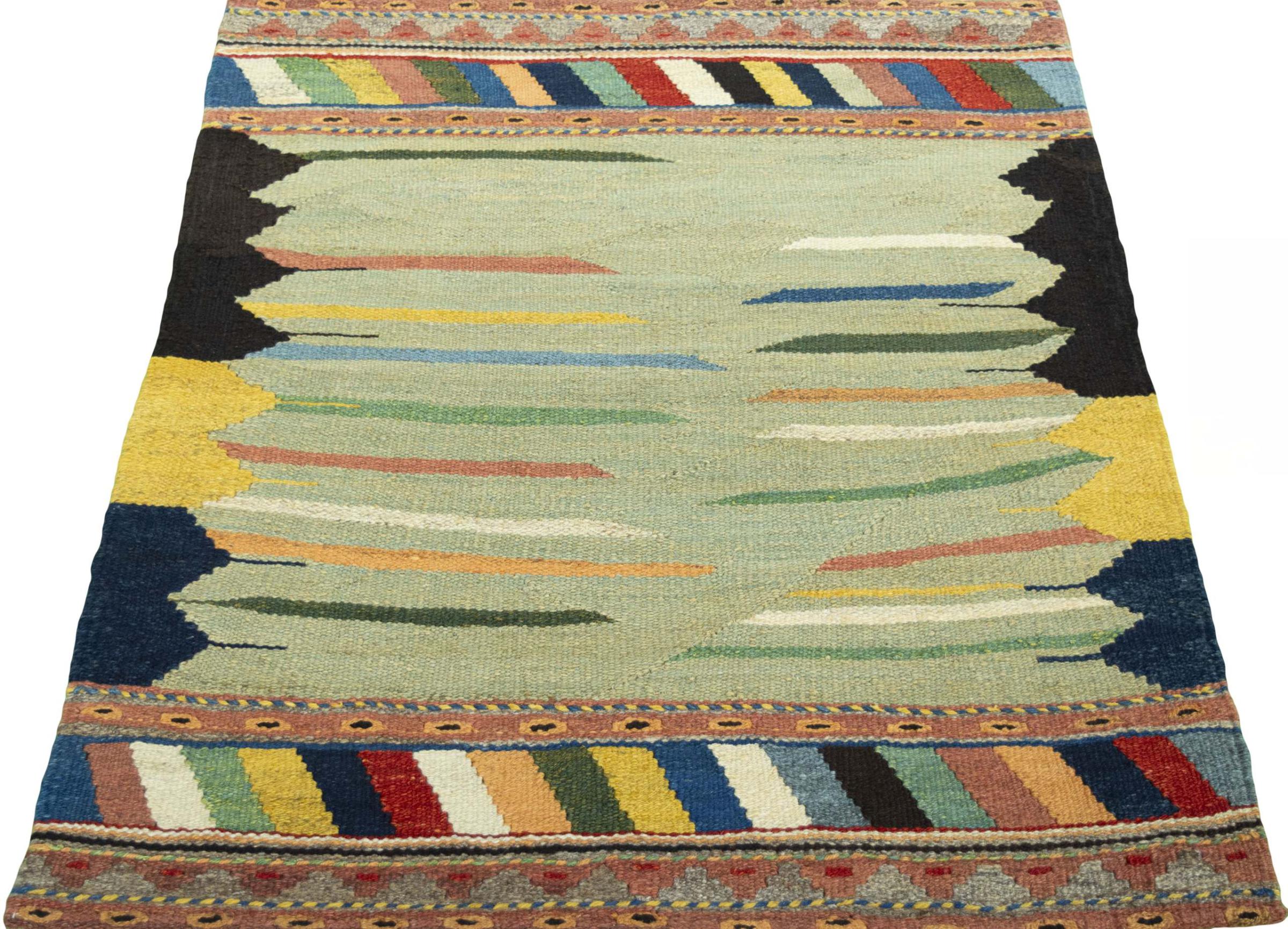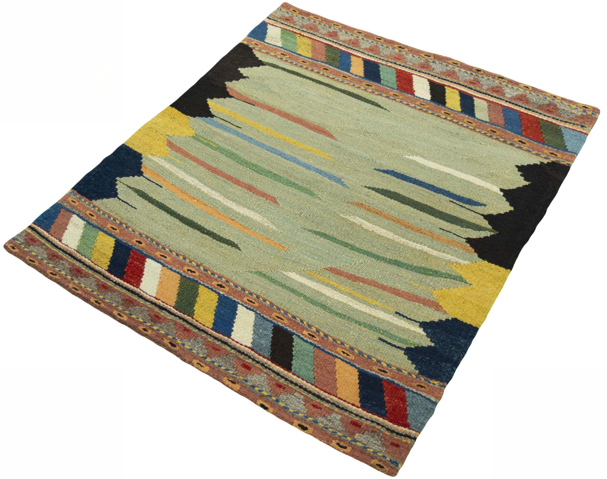 Questo Eylisian è un kilim dal design particolarmente pregiato, moderno e a tessitura piatta. La sua lana filata a mano/naturale è stata tessuta a mano secondo il design contemporaneo utilizzando la tradizionale tecnica persiana. La sua qualità robusta e duratura lo rende un elemento accattivante, popolare, contemporaneo e senza tempo nella tua casa.