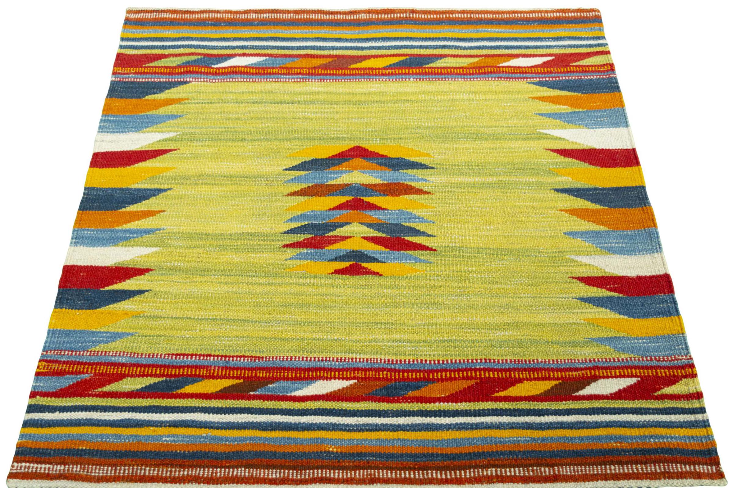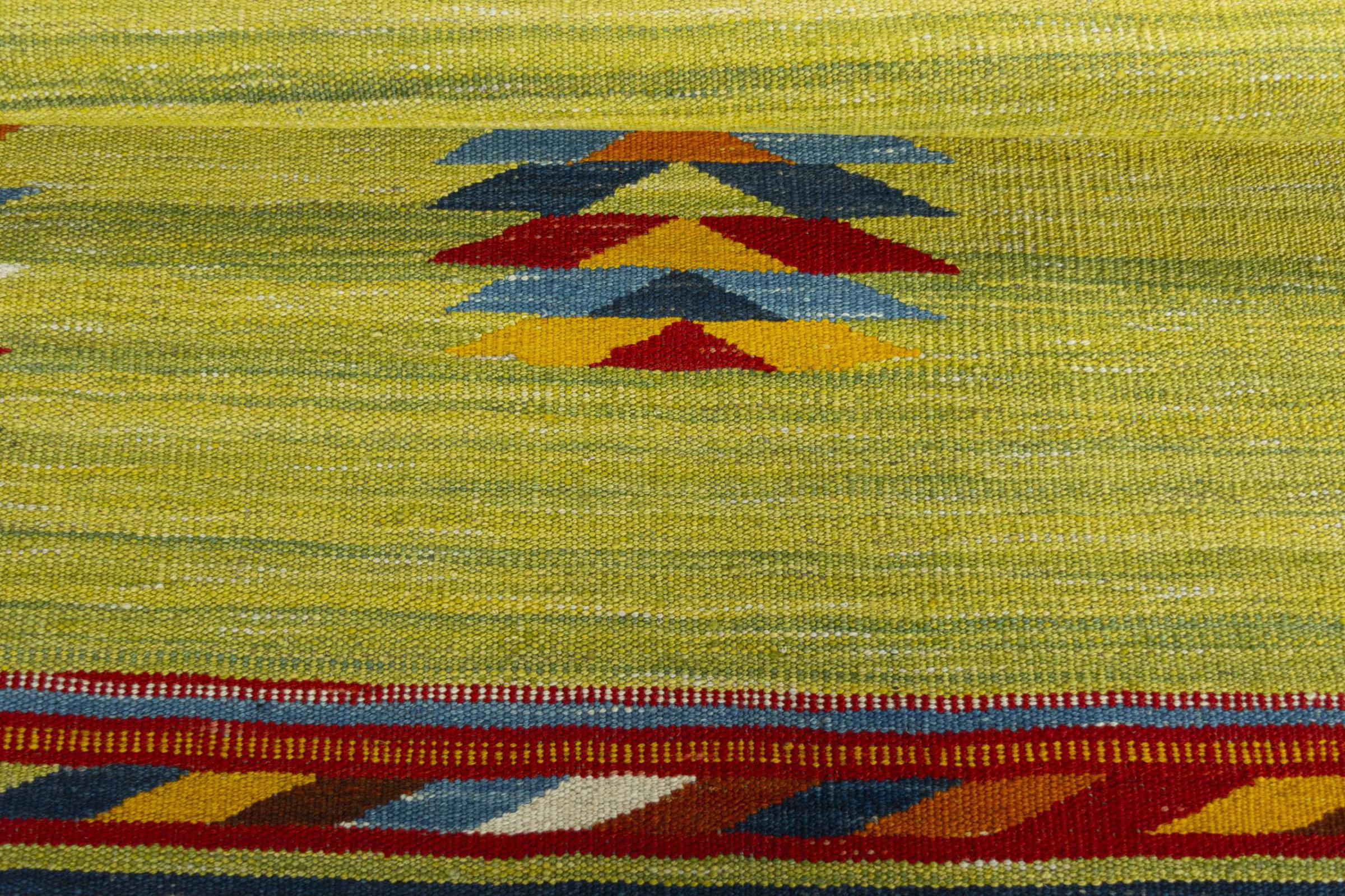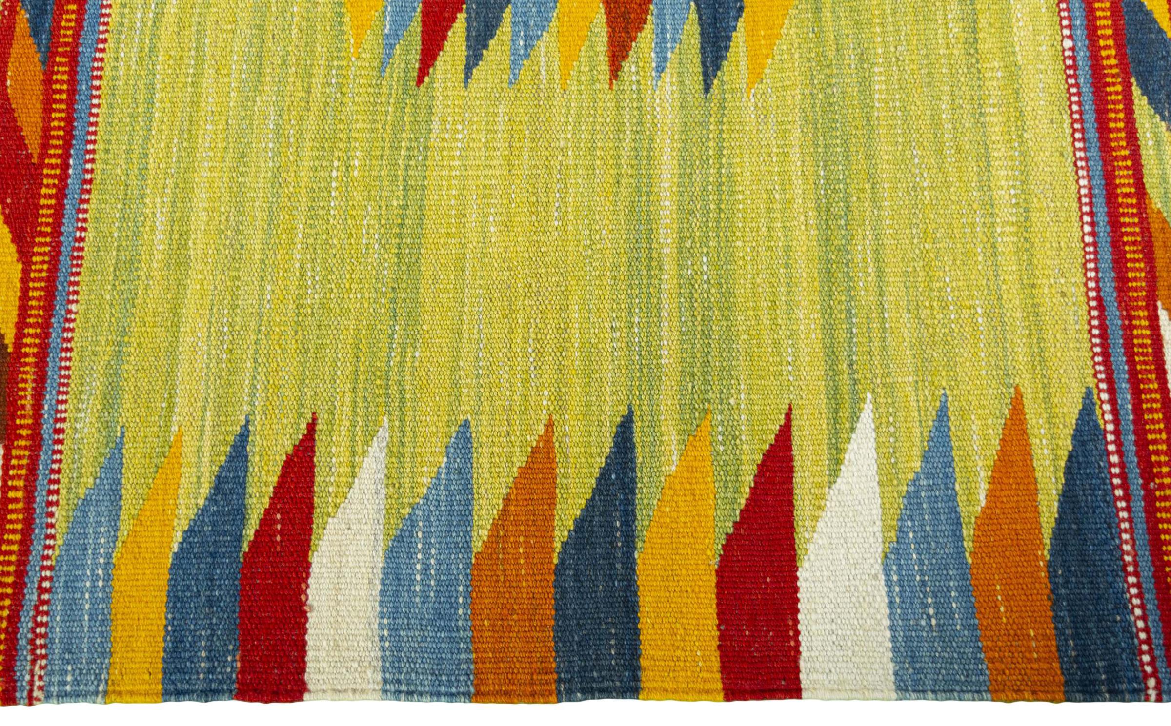 Questo Eylisian è un kilim dal design particolarmente pregiato, moderno e a tessitura piatta. La sua lana filata a mano/naturale è stata tessuta a mano secondo il design contemporaneo utilizzando la tradizionale tecnica persiana. La sua qualità robusta e duratura lo rende un elemento accattivante, popolare, contemporaneo e senza tempo nella tua casa.