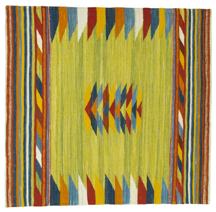 Questo tappeto è stato realizzato a mano su un telaio come una trama piatta. Flatweave è il termine usato per descrivere i tappeti che non hanno pelo. Come promette il nome, questi tappeti sono tessuti e non annodati. Il risultato è un tappeto piatto con una superficie strutturata. Le trame piatte non sono così morbide e di solito più sottili dei tappeti annodati. Allo stesso tempo sono molto meno complessi da produrre e di solito possono essere disposti da entrambi i lati (davanti e dietro). I loro motivi sono di solito geometrici, che è determinato dal tessuto.