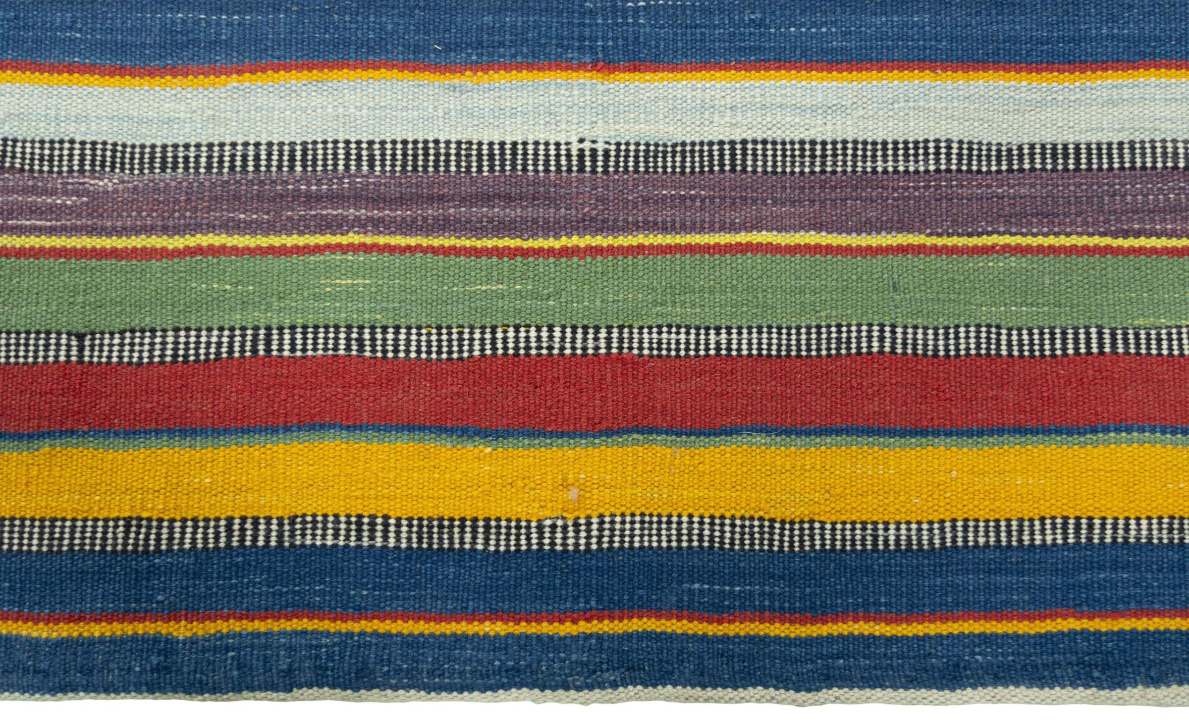 Questo tappeto è stato realizzato a mano su un telaio come una trama piatta. Flatweave è il termine usato per descrivere i tappeti che non hanno pelo. Come promette il nome, questi tappeti sono tessuti e non annodati. Il risultato è un tappeto piatto con una superficie strutturata. Le trame piatte non sono così morbide e di solito più sottili dei tappeti annodati. Allo stesso tempo sono molto meno complessi da produrre e di solito possono essere disposti da entrambi i lati (davanti e dietro). I loro motivi sono di solito geometrici, che è determinato dal tessuto.