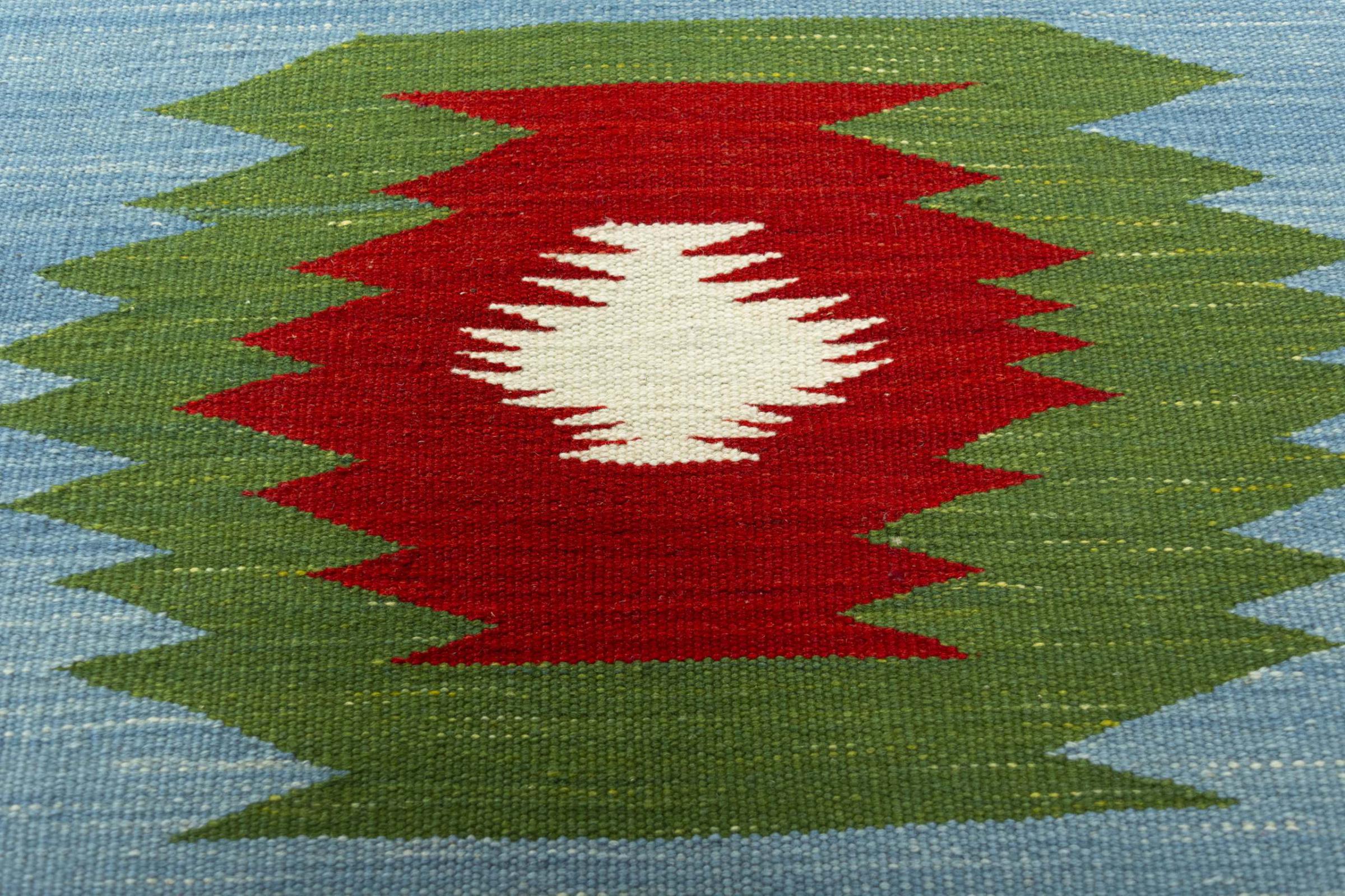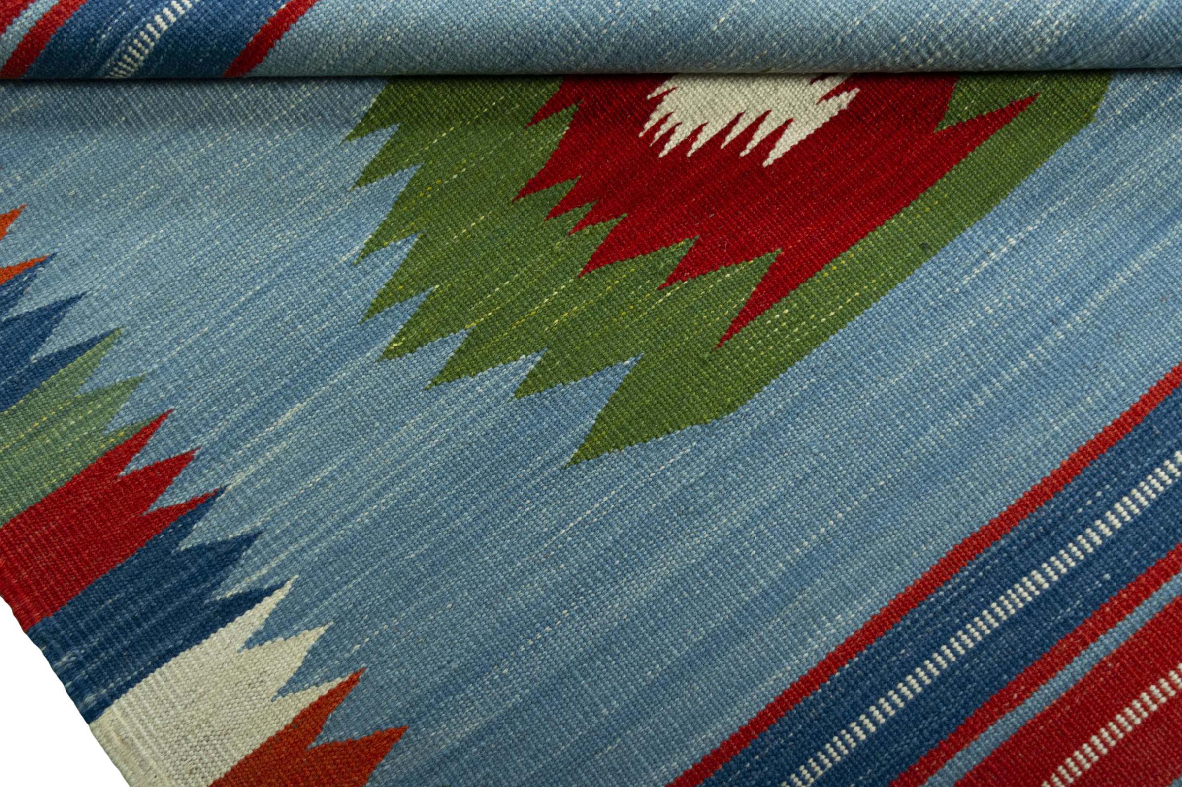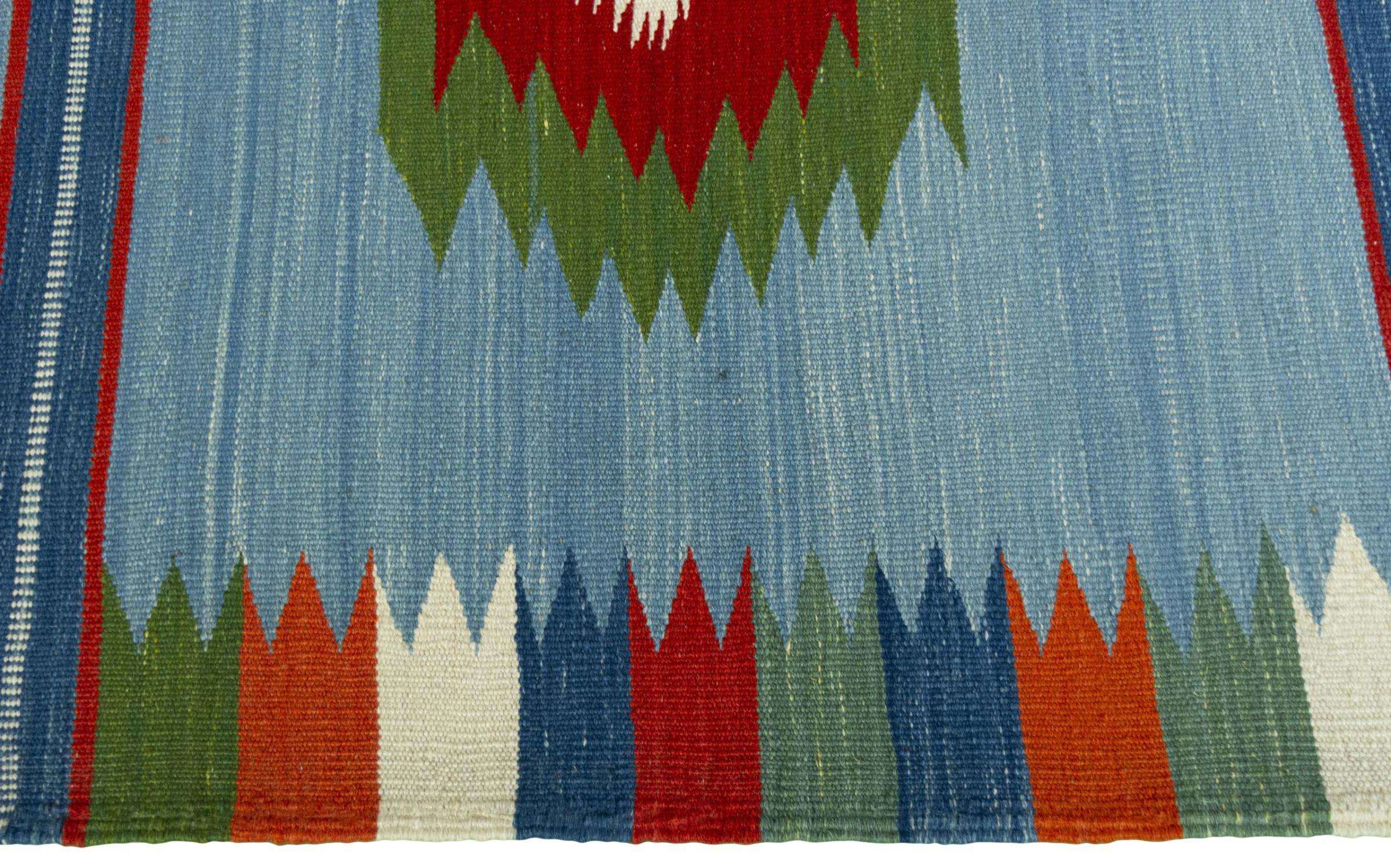 Questo tappeto è stato realizzato a mano su un telaio come una trama piatta. Flatweave è il termine usato per descrivere i tappeti che non hanno pelo. Come promette il nome, questi tappeti sono tessuti e non annodati. Il risultato è un tappeto piatto con una superficie strutturata. Le trame piatte non sono così morbide e di solito più sottili dei tappeti annodati. Allo stesso tempo sono molto meno complessi da produrre e di solito possono essere disposti da entrambi i lati (davanti e dietro). I loro motivi sono di solito geometrici, che è determinato dal tessuto.