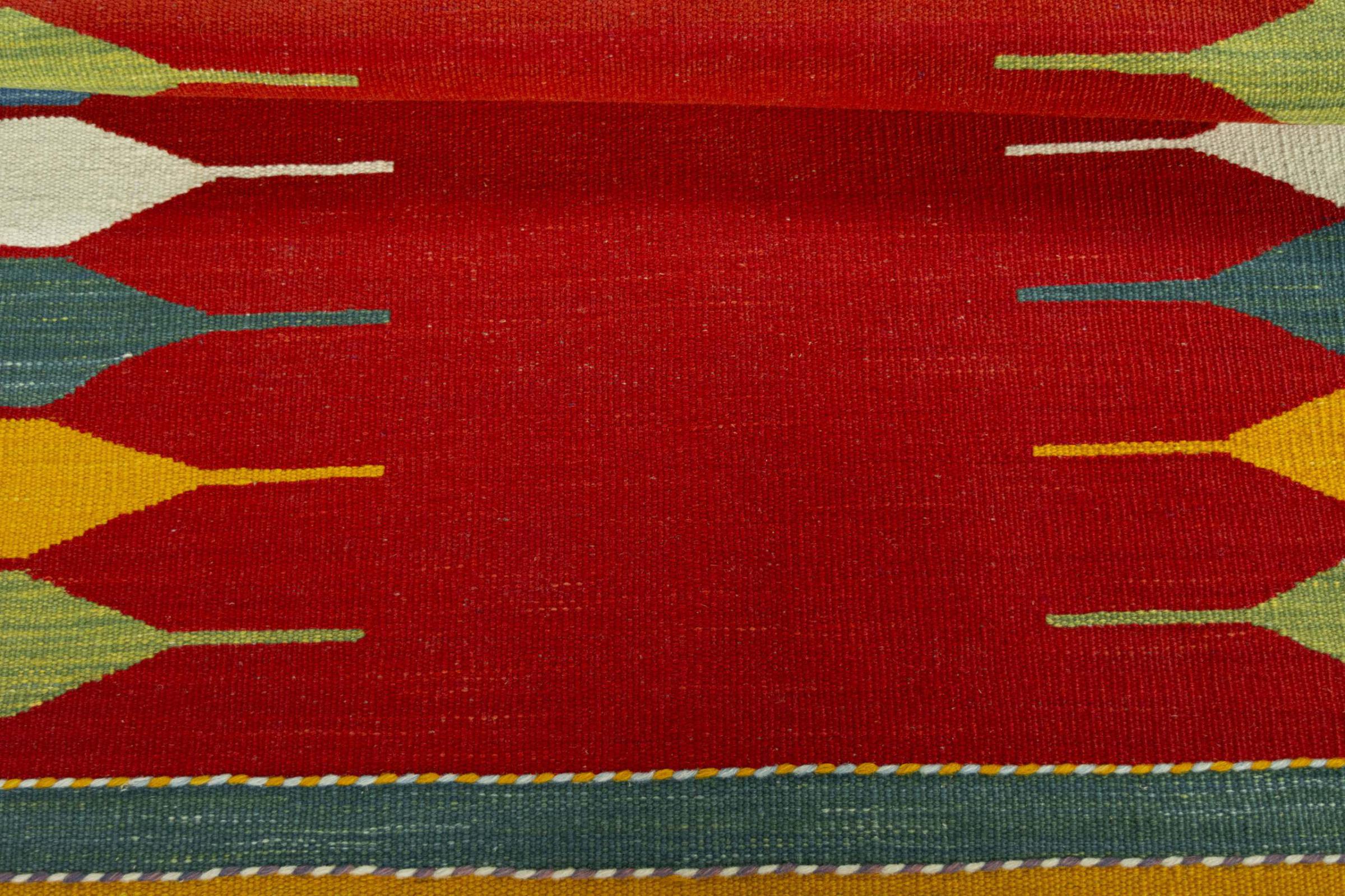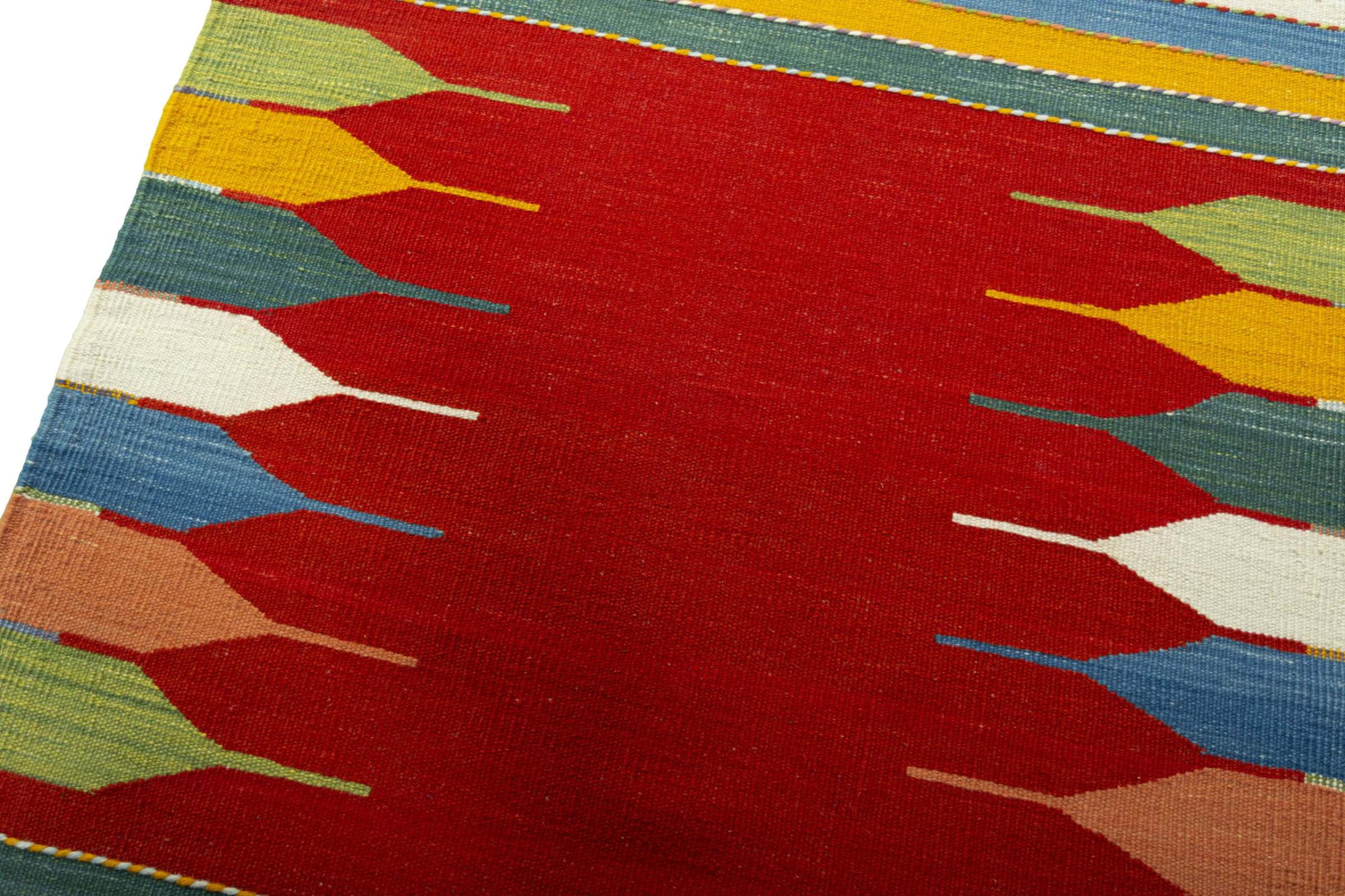 Questo Eylisian è un kilim dal design particolarmente pregiato, moderno e a tessitura piatta. La sua lana filata a mano/naturale è stata tessuta a mano secondo il design contemporaneo utilizzando la tradizionale tecnica persiana. La sua qualità robusta e duratura lo rende un elemento accattivante, popolare, contemporaneo e senza tempo nella tua casa.