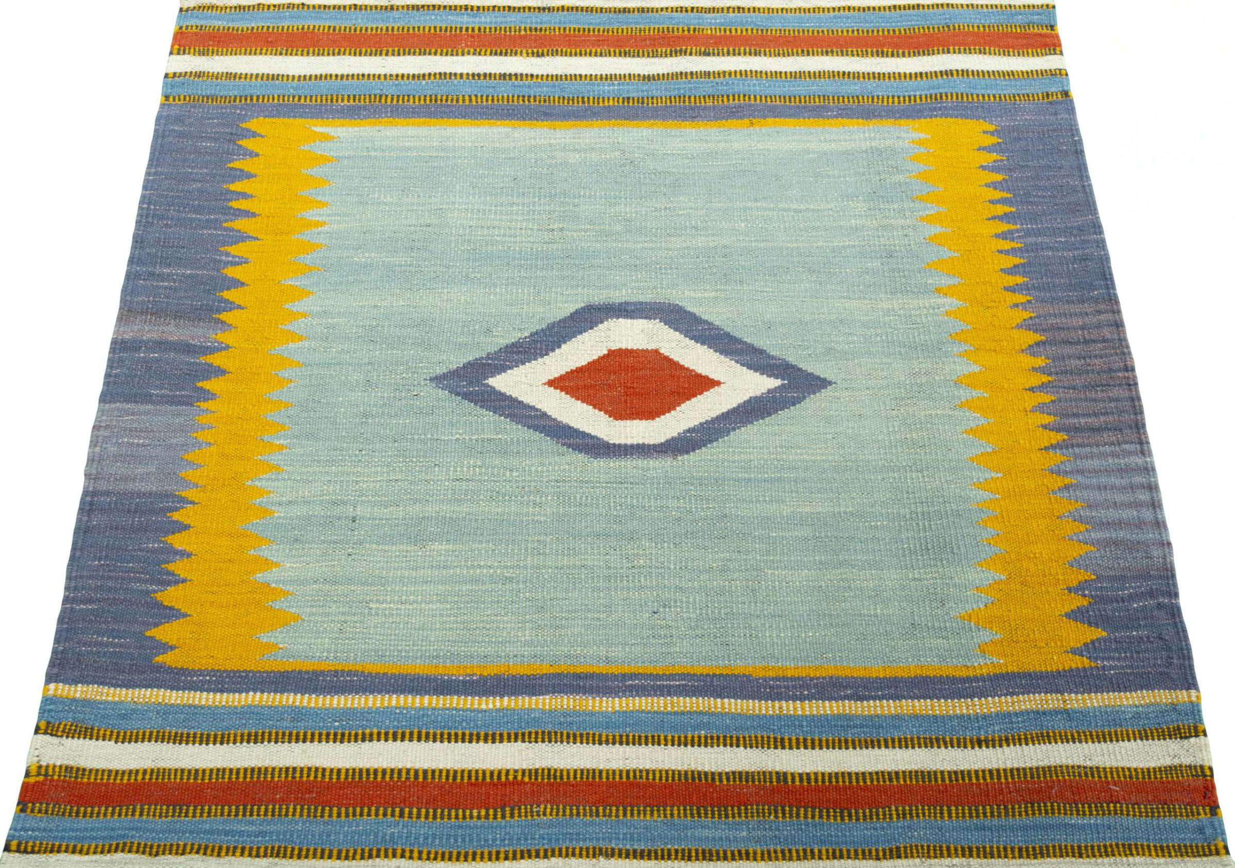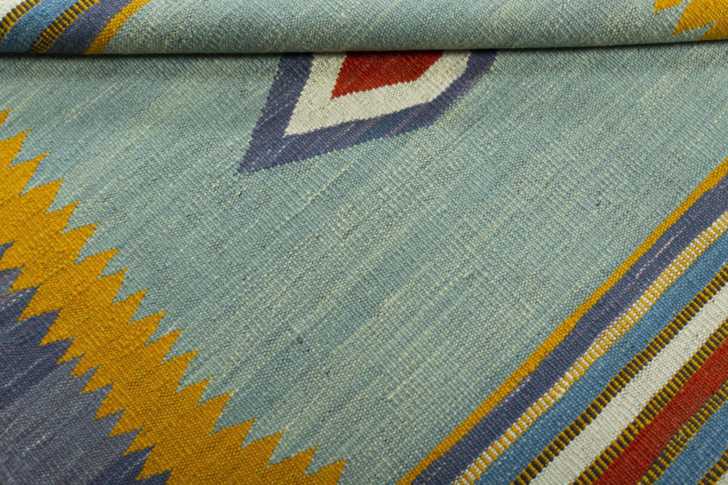 Questo Eylisian è un kilim dal design particolarmente pregiato, moderno e a tessitura piatta. La sua lana filata a mano/naturale è stata tessuta a mano secondo il design contemporaneo utilizzando la tradizionale tecnica persiana. La sua qualità robusta e duratura lo rende un elemento accattivante, popolare, contemporaneo e senza tempo nella tua casa.
