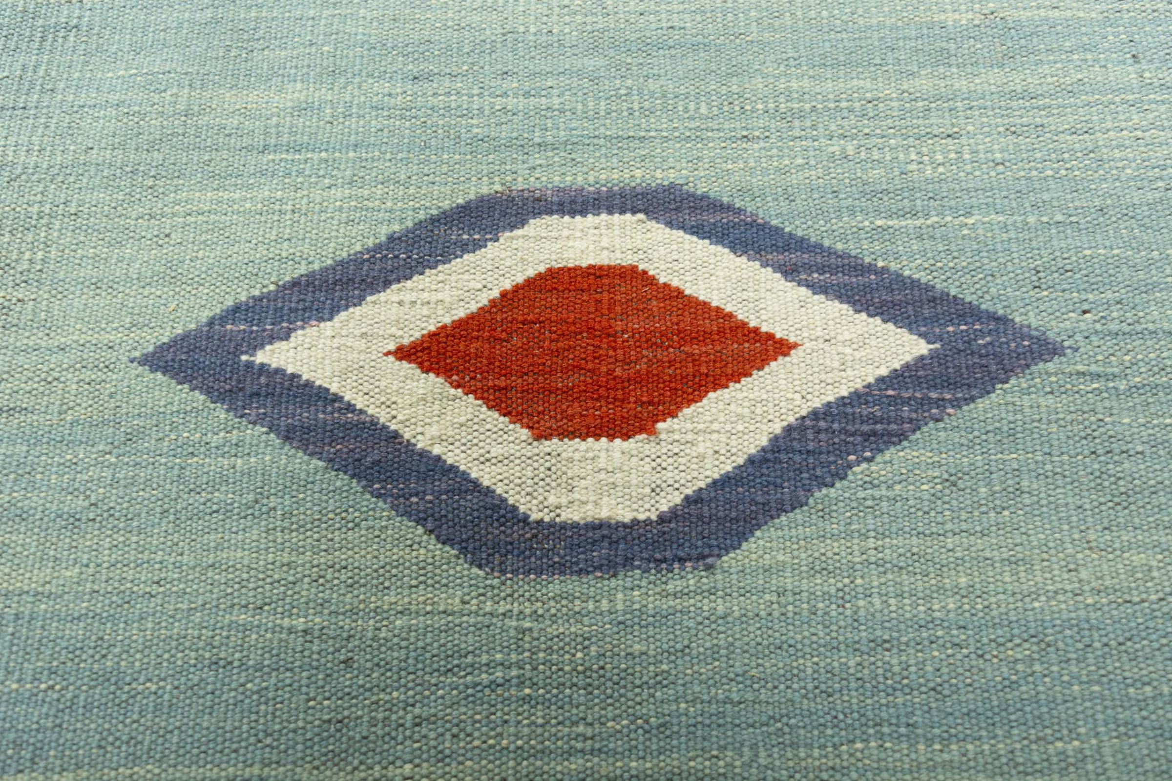 Questo tappeto è stato realizzato a mano su un telaio come una trama piatta. Flatweave è il termine usato per descrivere i tappeti che non hanno pelo. Come promette il nome, questi tappeti sono tessuti e non annodati. Il risultato è un tappeto piatto con una superficie strutturata. Le trame piatte non sono così morbide e di solito più sottili dei tappeti annodati. Allo stesso tempo sono molto meno complessi da produrre e di solito possono essere disposti da entrambi i lati (davanti e dietro). I loro motivi sono di solito geometrici, che è determinato dal tessuto.