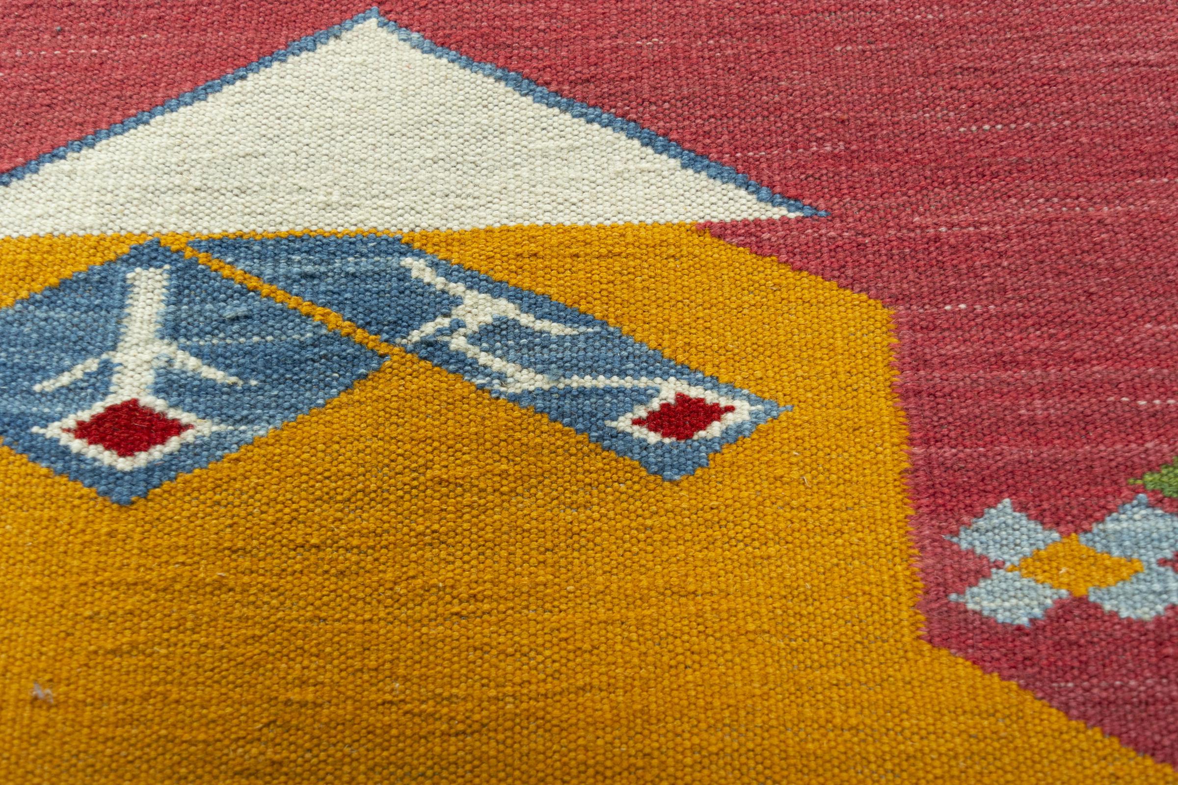 Questo Eylisian è un kilim dal design particolarmente pregiato, moderno e a tessitura piatta. La sua lana filata a mano/naturale è stata tessuta a mano secondo il design contemporaneo utilizzando la tradizionale tecnica persiana. La sua qualità robusta e duratura lo rende un elemento accattivante, popolare, contemporaneo e senza tempo nella tua casa.