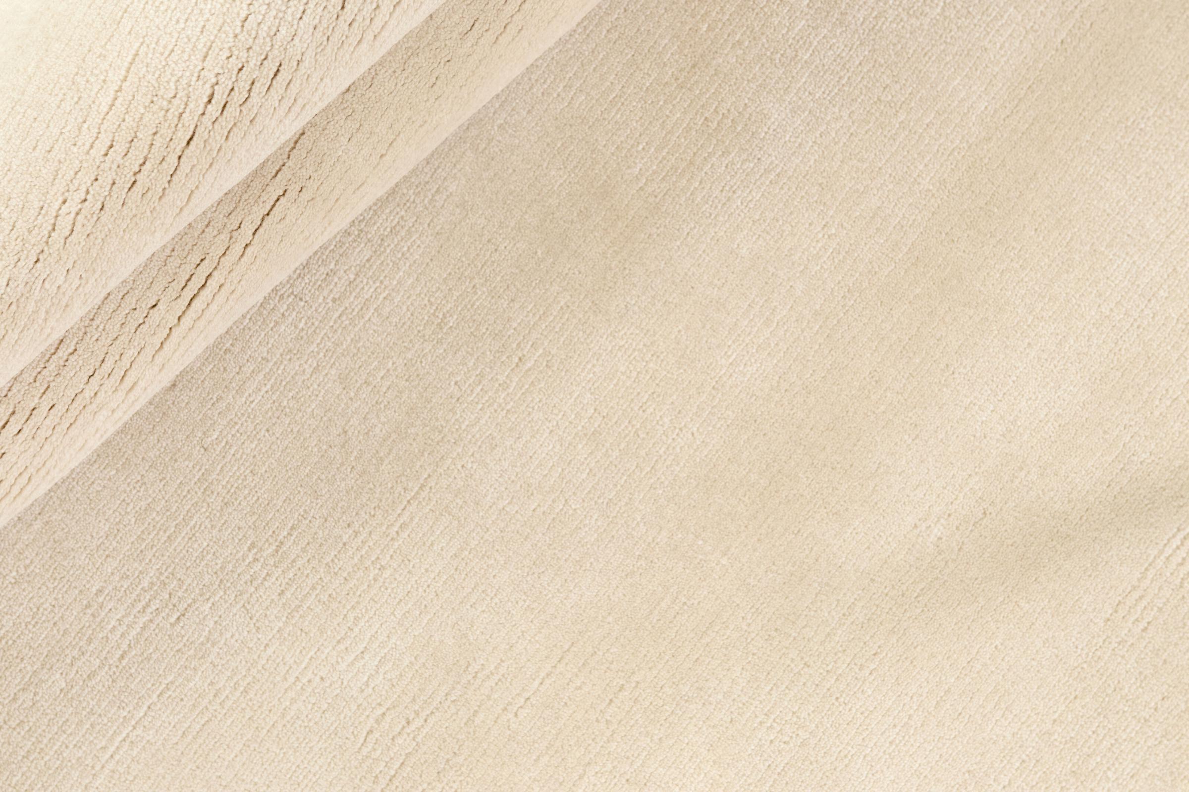 Questo originale tappeto orientale annodato a mano dal design scandinavo in pura lana / 100% viscosa di alta qualità incarna meravigliosamente la funzionalità in una forma semplice e molto elegante. La sua superficie non solo brilla come la seta, ma il suo colore si fonde sempre perfettamente nella stanza.