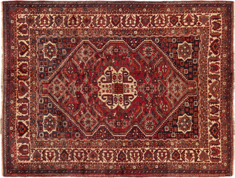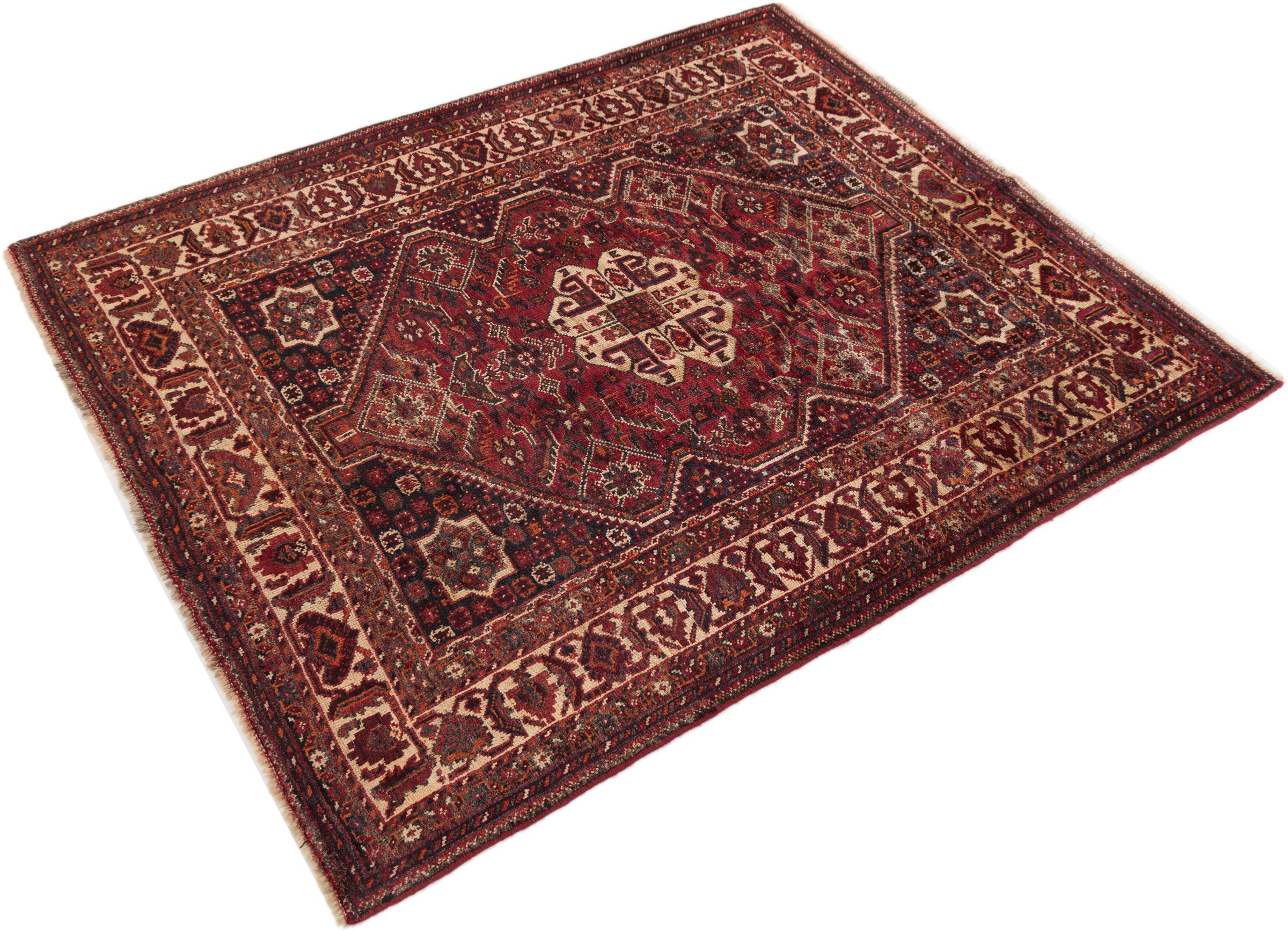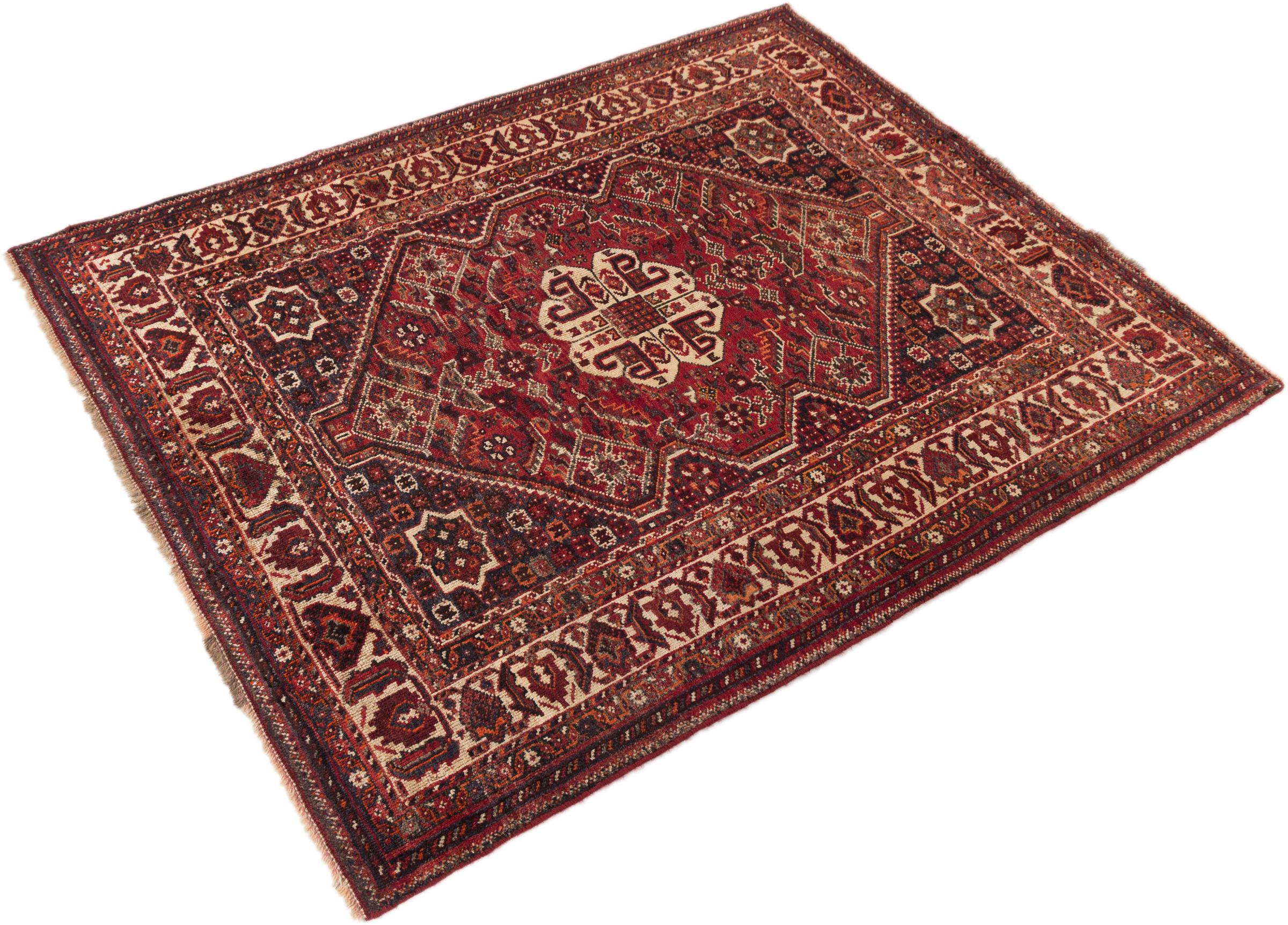 Tappeto-N.: 295496002608 Dimensione: 173x133 cm Spessore: circa . 12 mm Nodi: 128 000 - 160 000 / m² Lavorazione: Annodato a mano Fondo: Lana filata a mano Catena: Lana di pecora Origine: Persia / Iran Età: Vecchio/Semi-Antico, età più di 50 Anni Peso: circa . 8 kg Conosciuto anche come Qashqai, Gaschgai, Gashghai, Kashgai Disponibile: Unico - Solo 1 disponibili