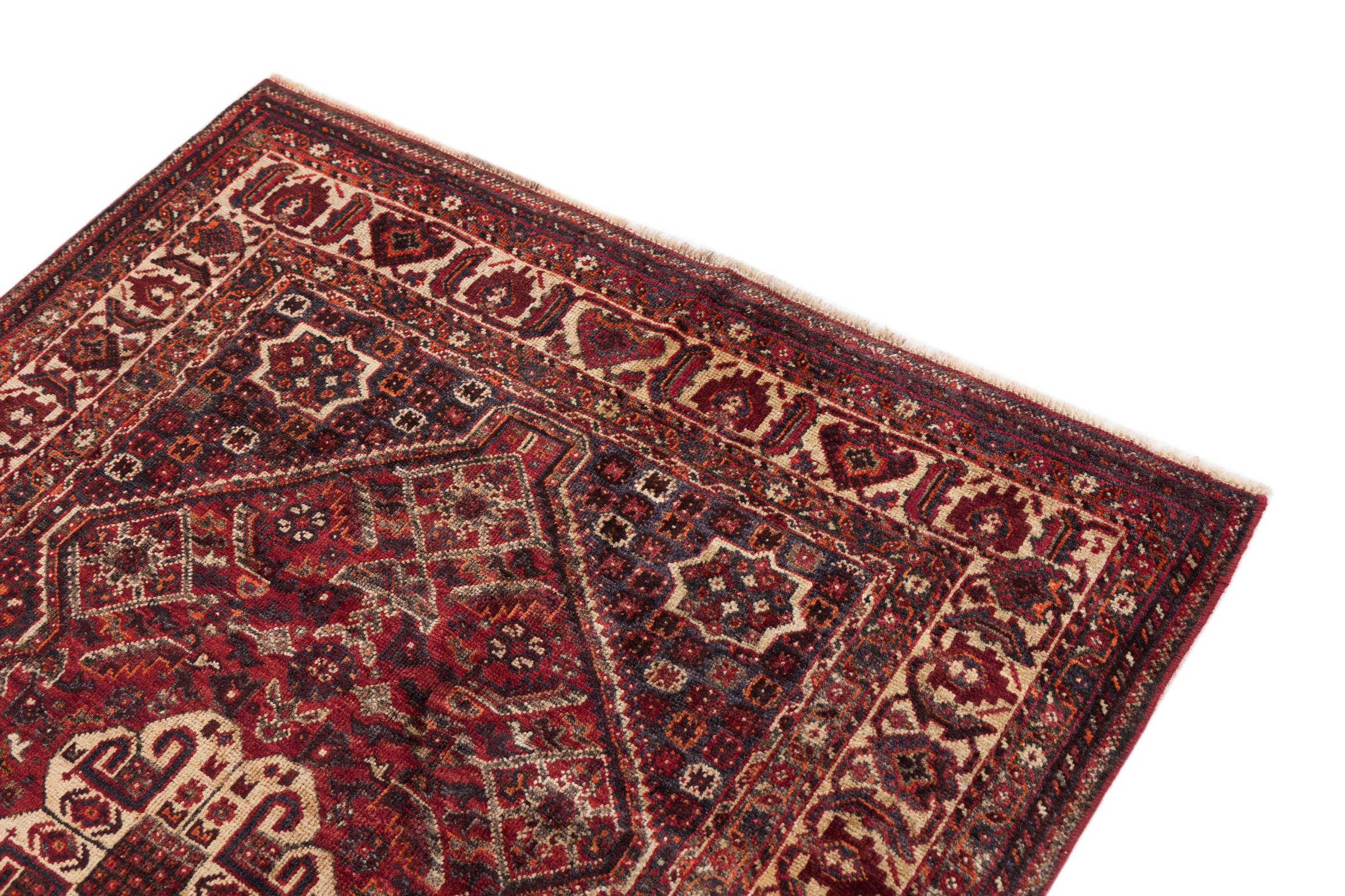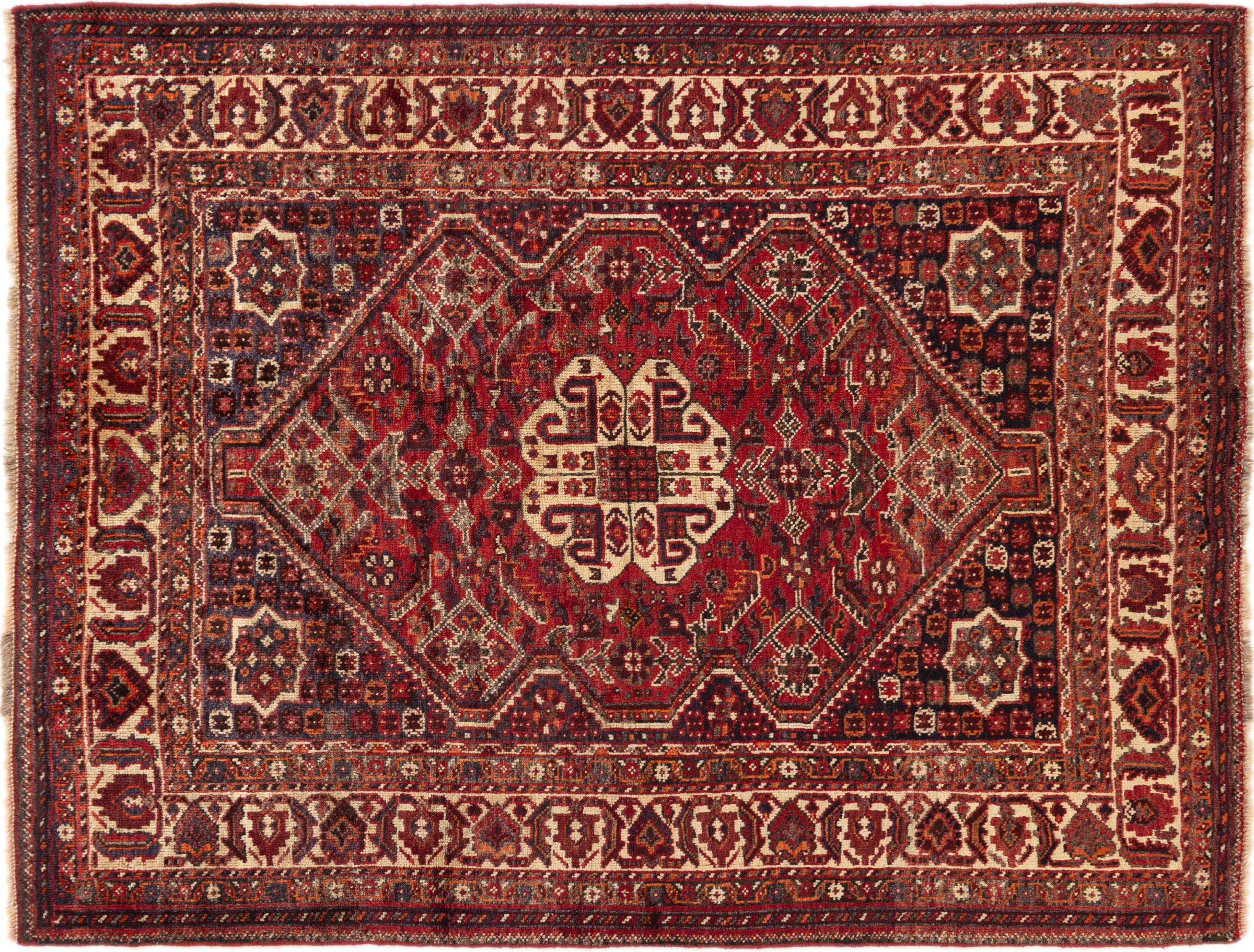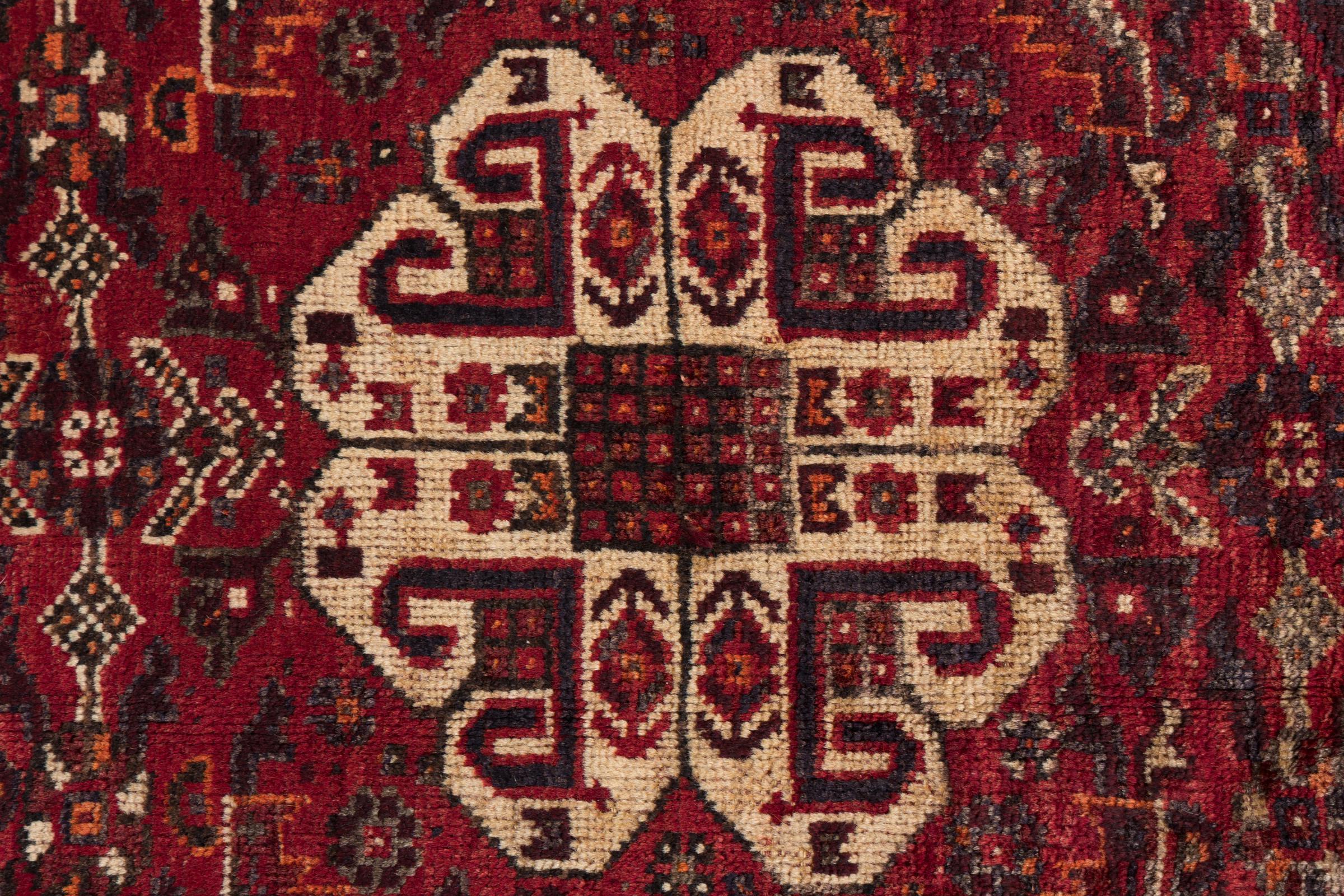 Tappeto-N.: 295496002608 Dimensione: 173x133 cm Spessore: circa . 12 mm Nodi: 128 000 - 160 000 / m² Lavorazione: Annodato a mano Fondo: Lana filata a mano Catena: Lana di pecora Origine: Persia / Iran Età: Vecchio/Semi-Antico, età più di 50 Anni Peso: circa . 8 kg Conosciuto anche come Qashqai, Gaschgai, Gashghai, Kashgai Disponibile: Unico - Solo 1 disponibili