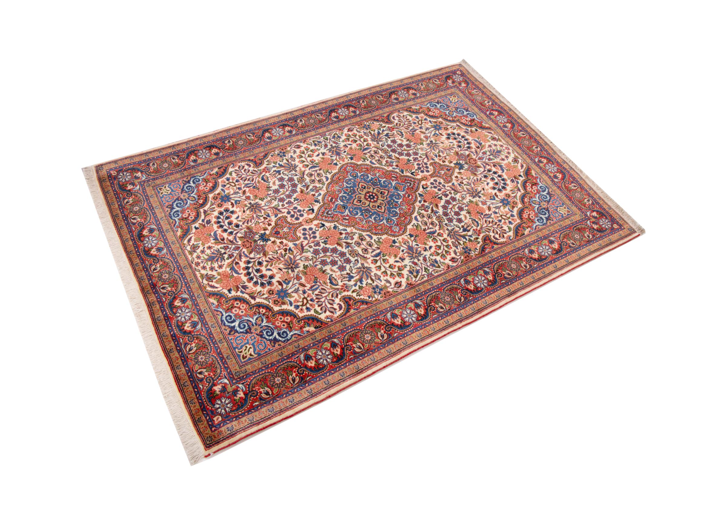 Questo tappeto è realizzato in lana di pecora filata a mano di altissima qualità. Soprattutto in Iran (ex Persia), Afghanistan e Pakistan la lana viene ancora filata a mano prima che inizi l'annodatura vera e propria del tappeto. La lana si è dimostrata nei secoli un materiale naturale ed estremamente resistente. Tra le altre cose, ha proprietà di repellenza allo sporco e di isolamento termico. Allo stesso tempo, la lana è incomparabilmente morbida e ha una lucentezza naturale.