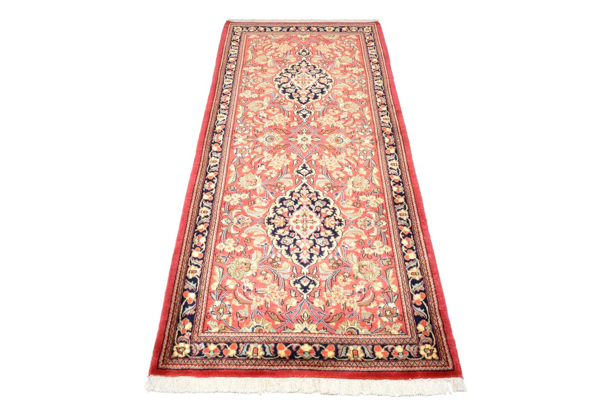 Tappeto-N.: 1534200675150 Dimensione: 195x83 cm Spessore: circa . 10 mm Nodi: 320 000 - 350 000 / m² Lavorazione: Annodato a mano Fondo: Lana filata a mano Catena: Cotone Origine: Persia / Iran Età: Nuovo Peso: circa . 6 kg Disponibile: Unico - Solo 1 disponibili
