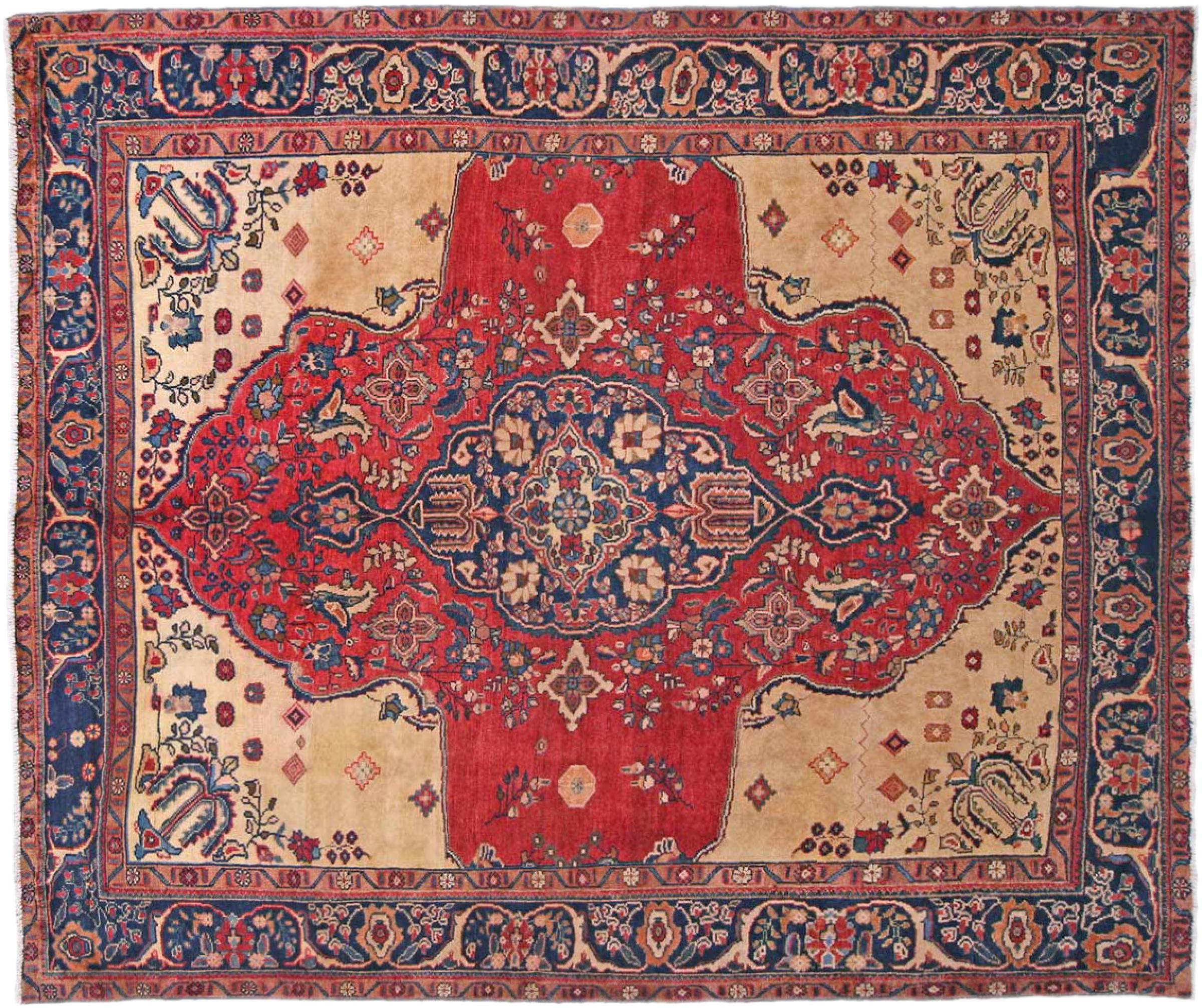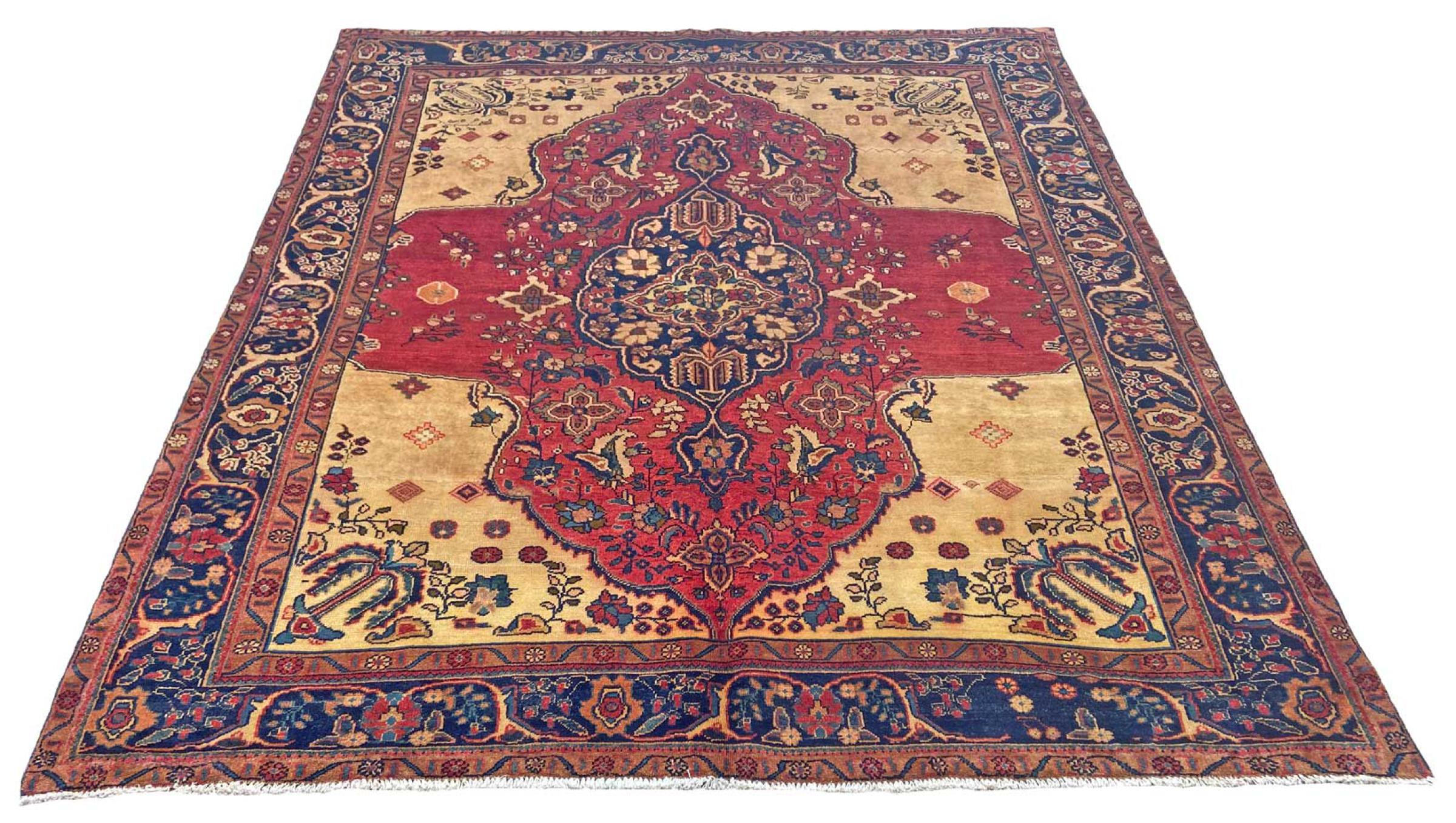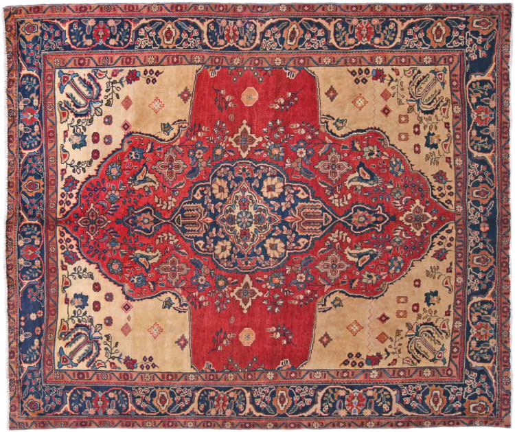 Tappeto-N.: 303084002880397 Dimensione: 264x224 cm Spessore: circa . 8 mm Nodi: 128 000 - 160 000 / m² Lavorazione: Annodato a mano Fondo: Lana filata a mano Catena: Cotone Origine: Persia / Iran Età: Nuovo Peso: circa . 21 kg Conosciuto anche come Huseinabad Disponibile: Unico - Solo 1 disponibili