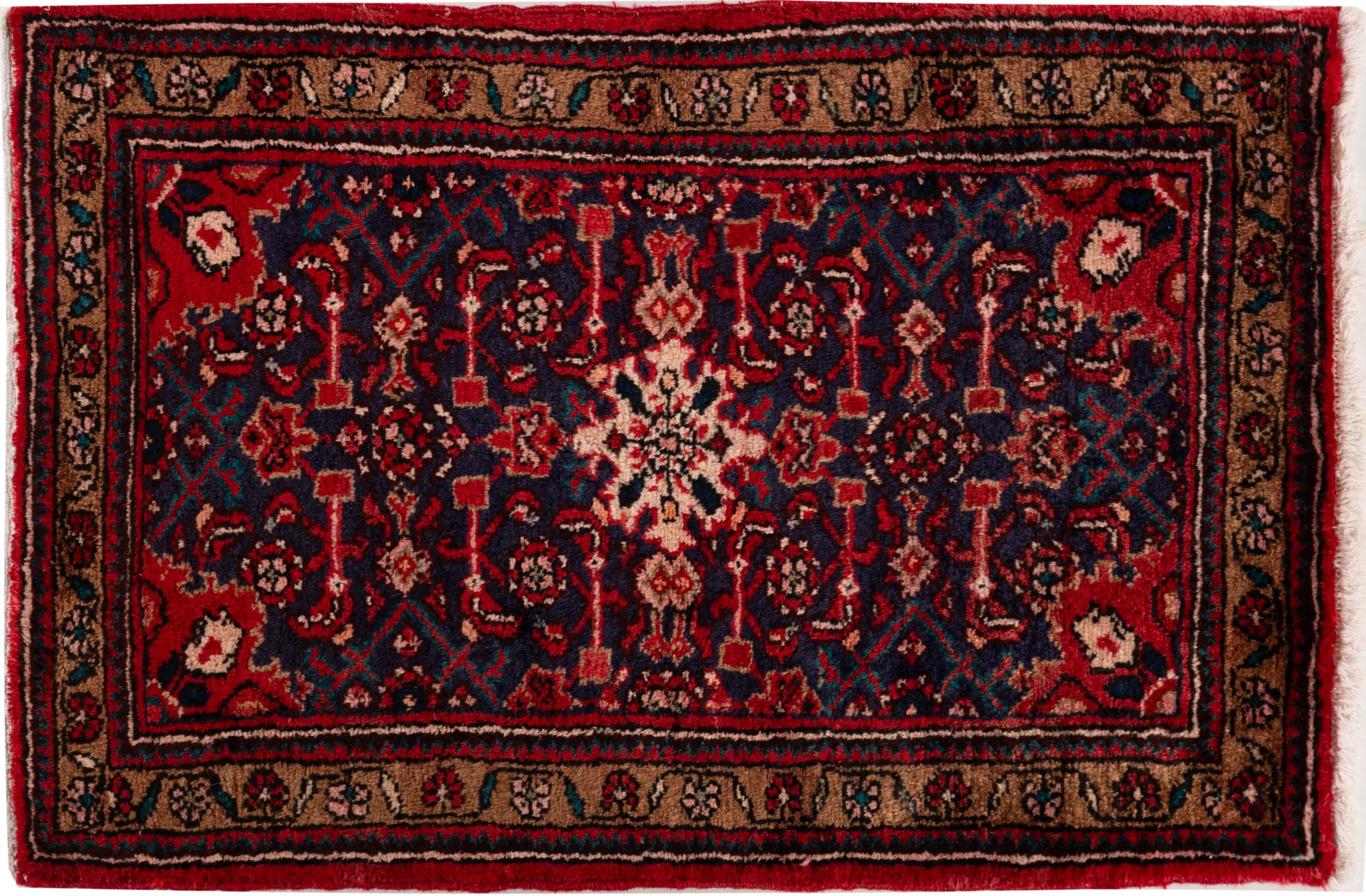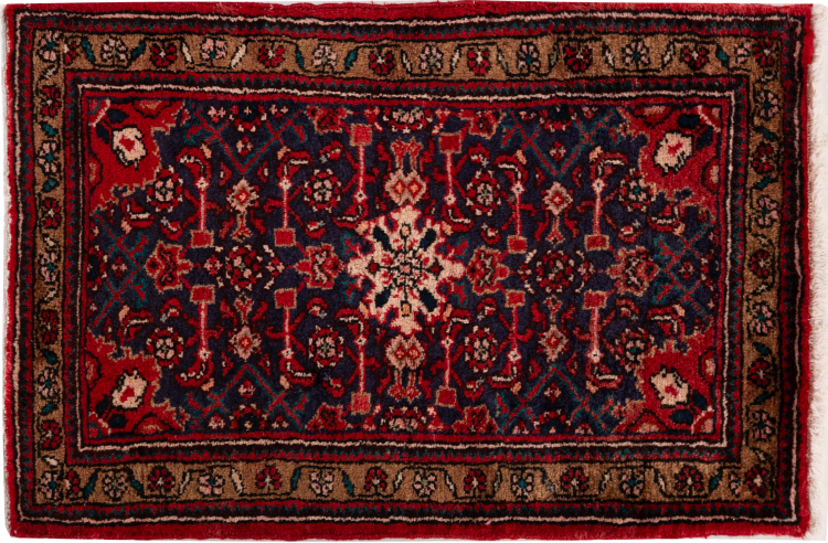 Tappeto-N.: 30713400105637 Dimensione: 99x68 cm Spessore: circa . 8 mm Nodi: 200 000 - 250 000 / m² Lavorazione: Annodato a mano Fondo: Lana filata a mano Catena: Cotone Origine: Persia / Iran Età: Nuovo Peso: circa . 2 kg Conosciuto anche come Huseinabad Disponibile: Unico - Solo 1 disponibili