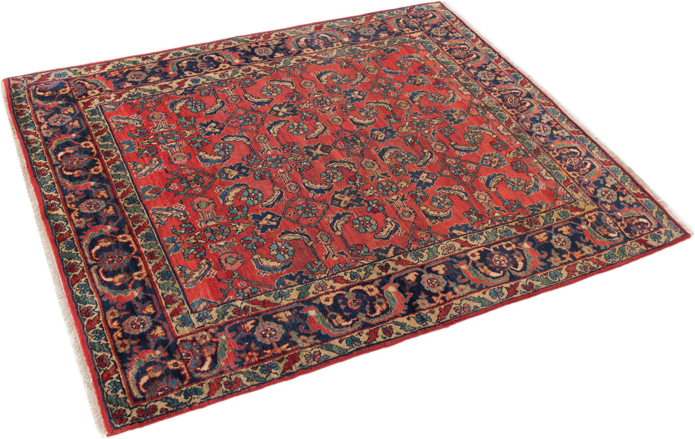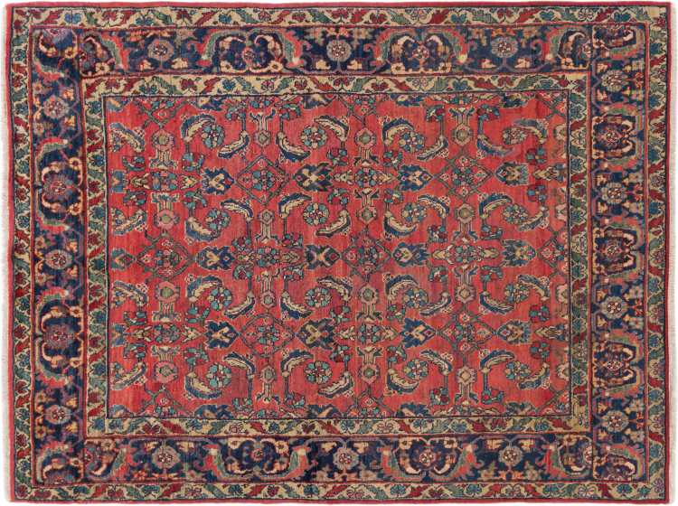 Tappeto-N.: 296081006341 Dimensione: 207x150 cm Spessore: circa . 8 mm Nodi: 200 000 - 250 000 / m² Lavorazione: Annodato a mano Fondo: Lana filata a mano Catena: Cotone Origine: Persia / Iran Età: Vecchio/Semi-Antico, età più di 50 Anni Peso: circa . 11 kg Conosciuto anche come Huseinabad Disponibile: Unico - Solo 1 disponibili