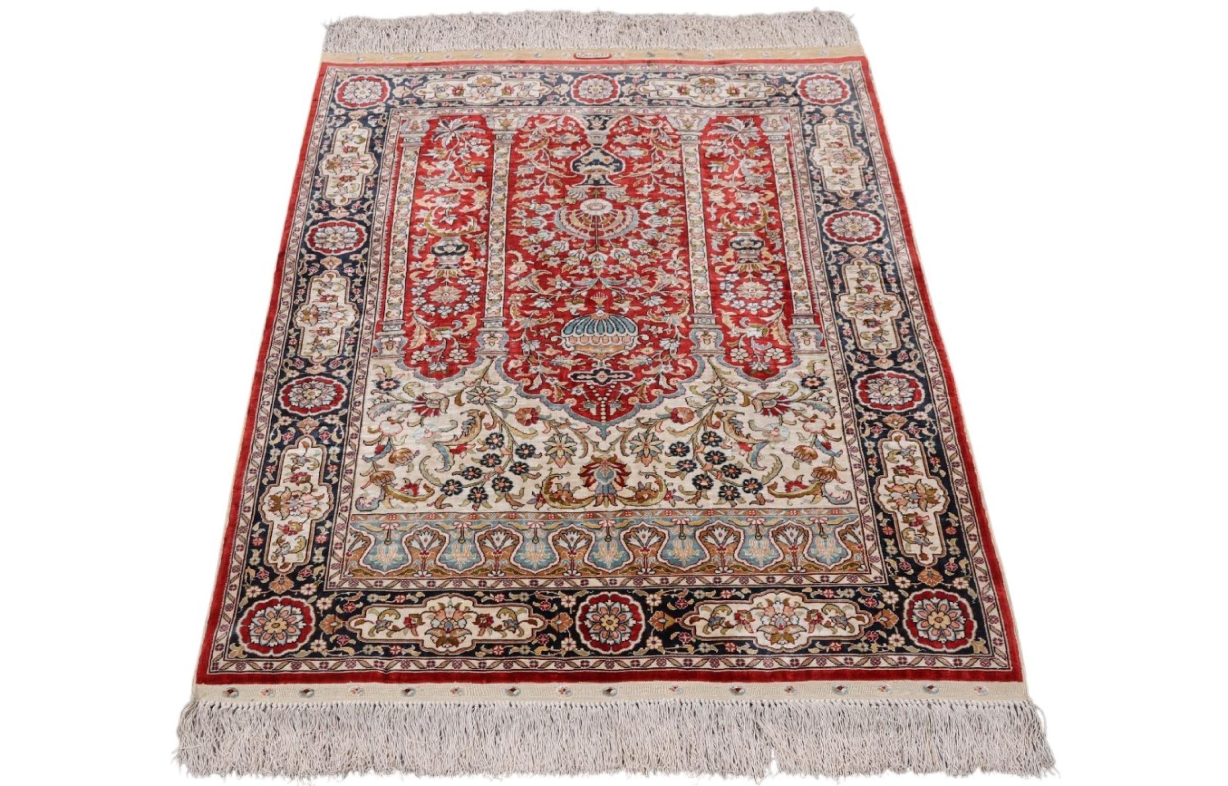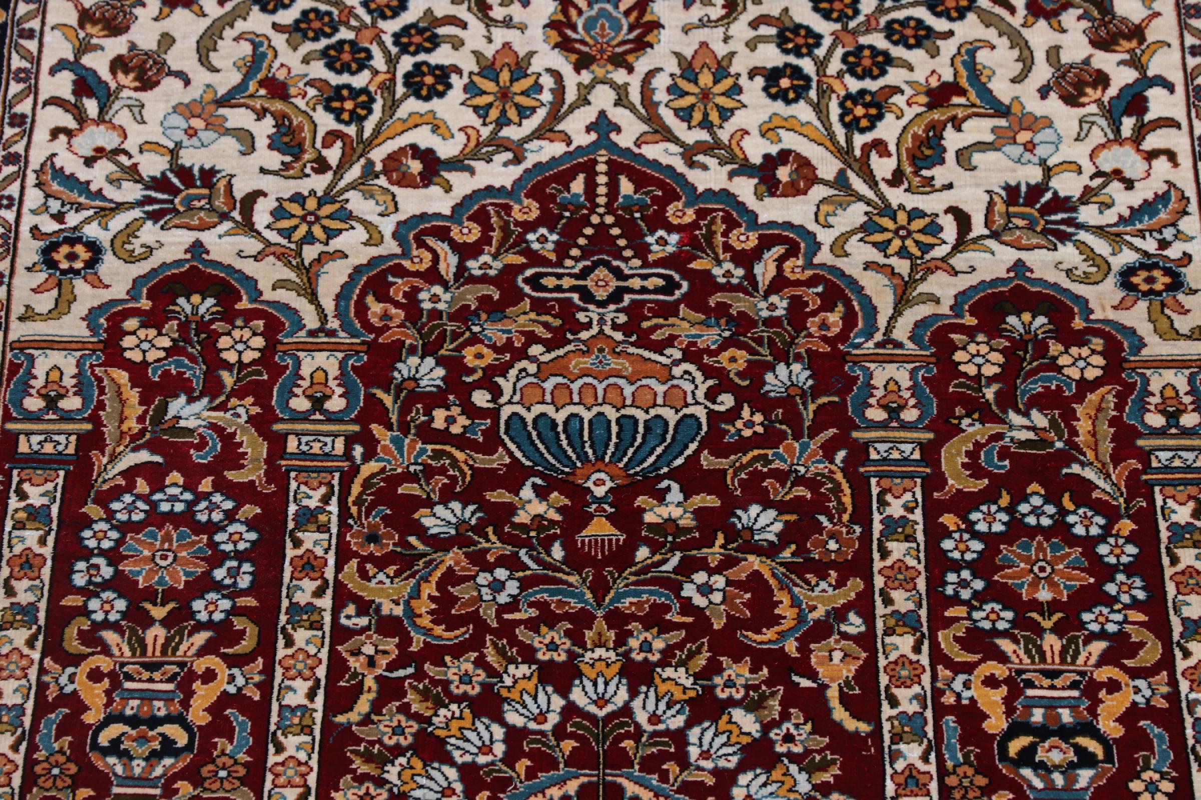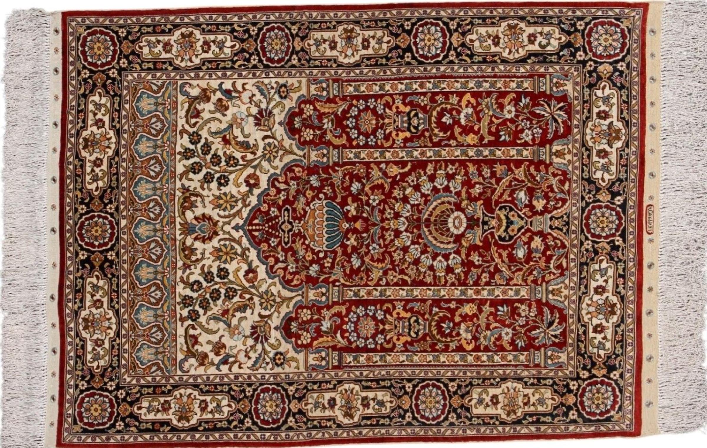 Questo tappeto Hereke annodato a mano è totalmente lavorato a mano secondo il lavoro tradizionale turco.I suoi bei colori riflettono la sua origine in un modo magnifico. Godetevelo, ne Vale la pena.