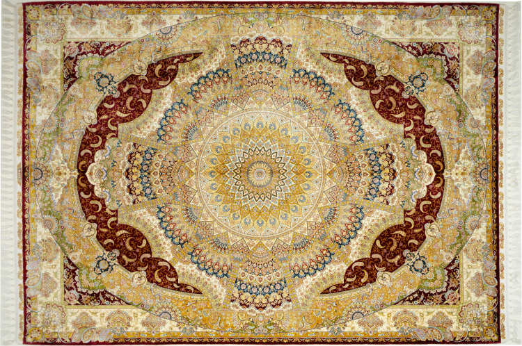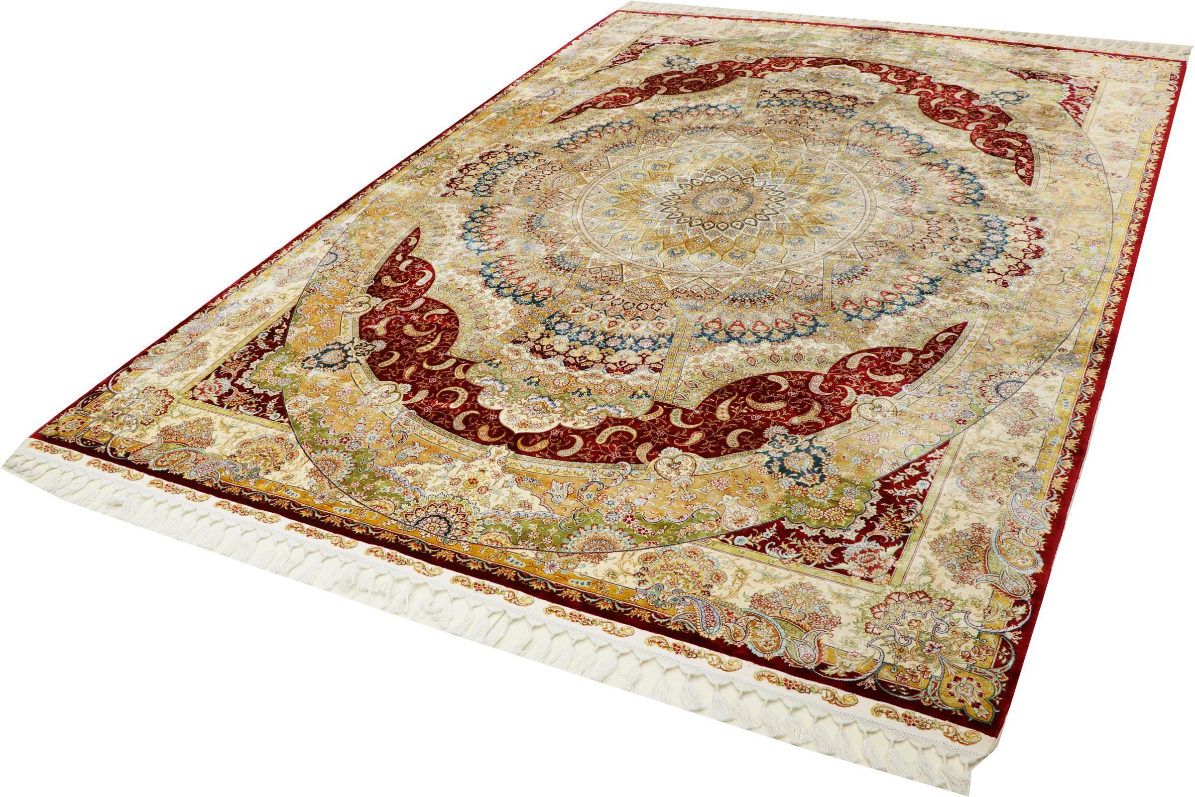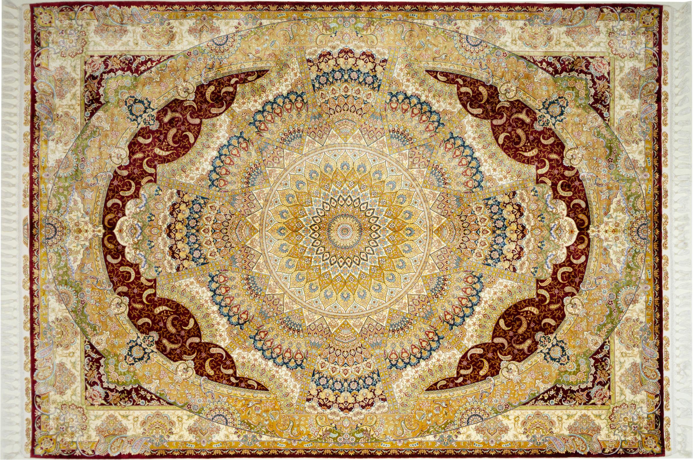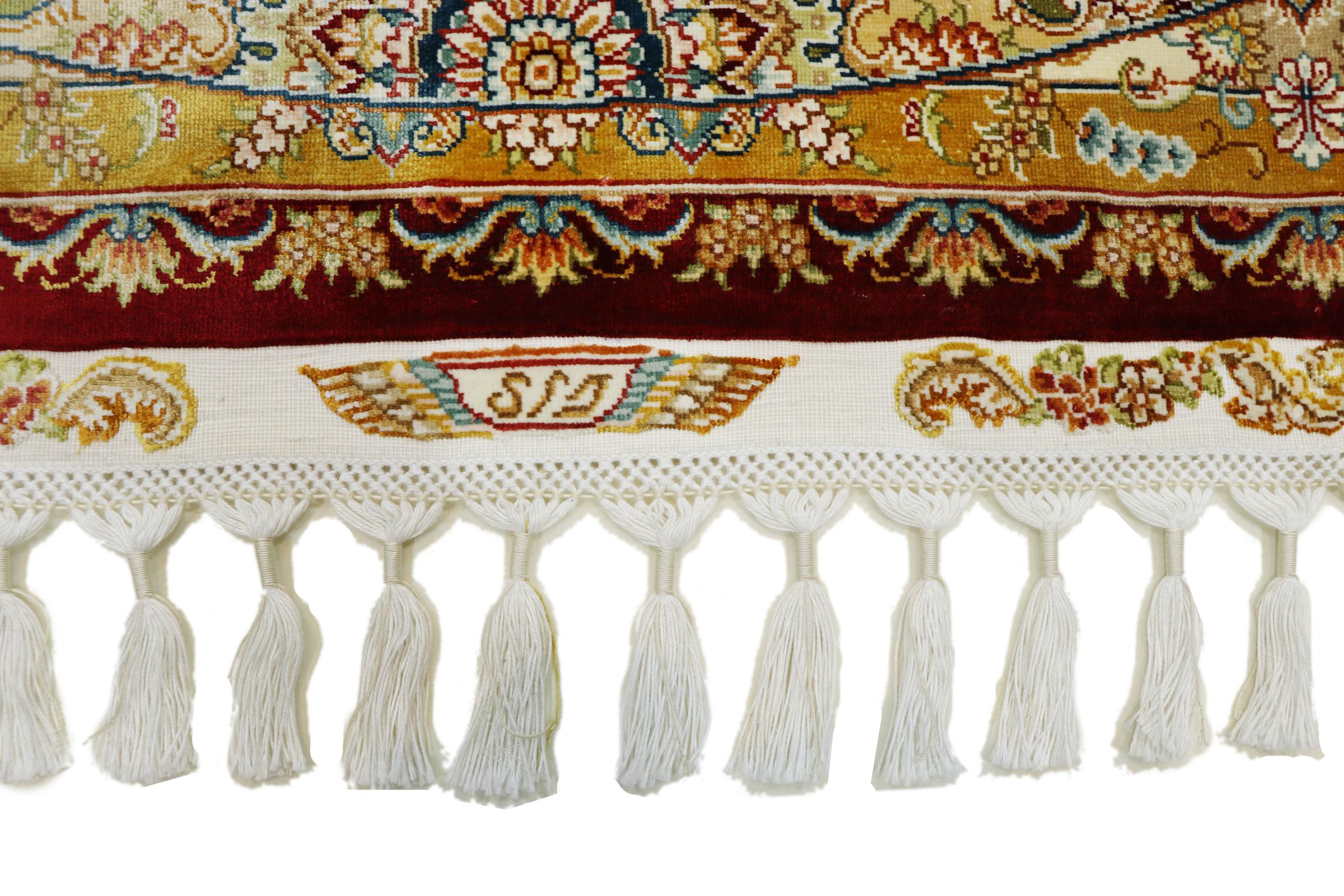 Tappeto-N.: 303792007471560 Dimensione: 281x189 cm Spessore: circa . 3 mm Nodi: 640 000 / m² Lavorazione: Annodato a mano Fondo: Seta Catena: Seta Origine: Turchia Età: Nuovo Peso: circa . 11 kg Disponibile: Unico - Solo 1 disponibili
