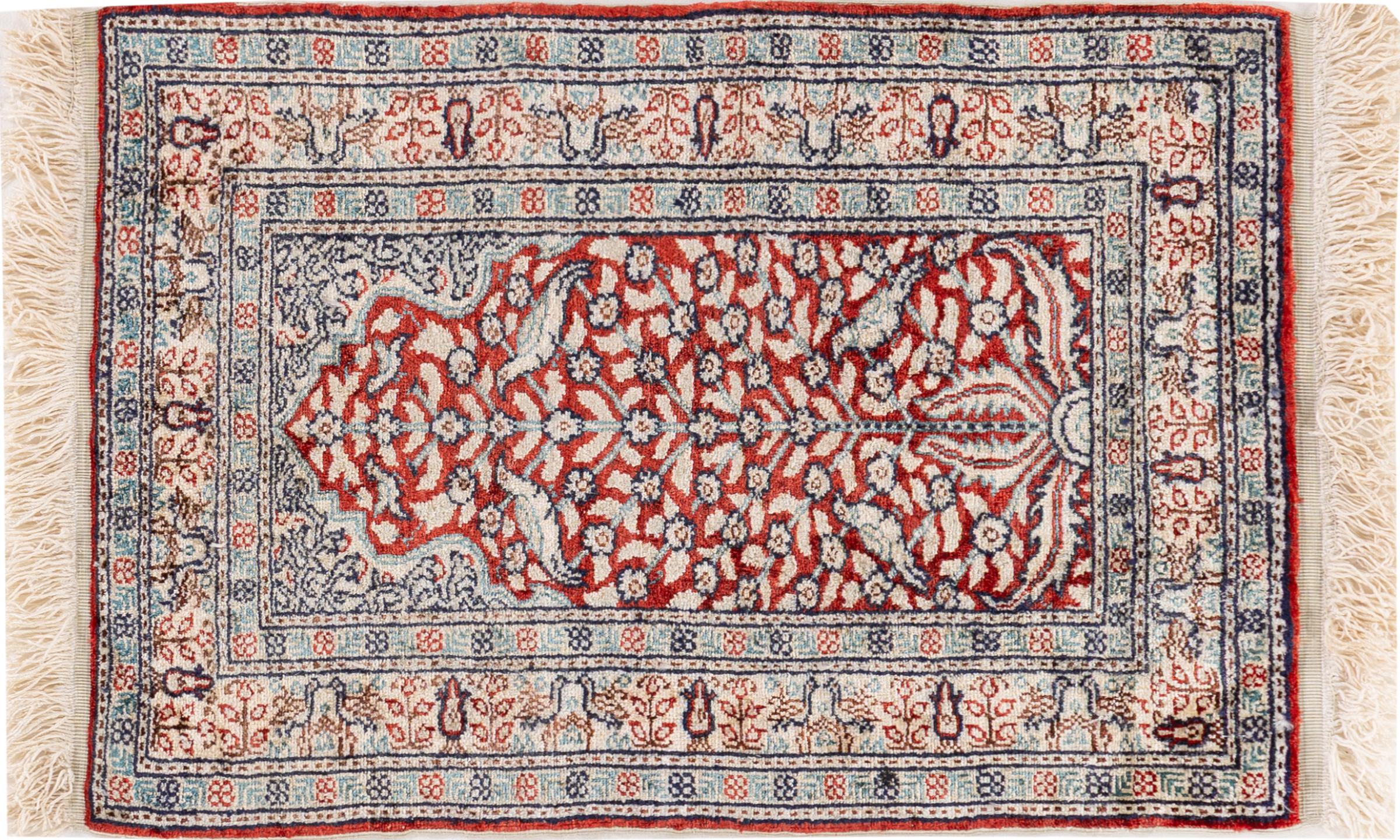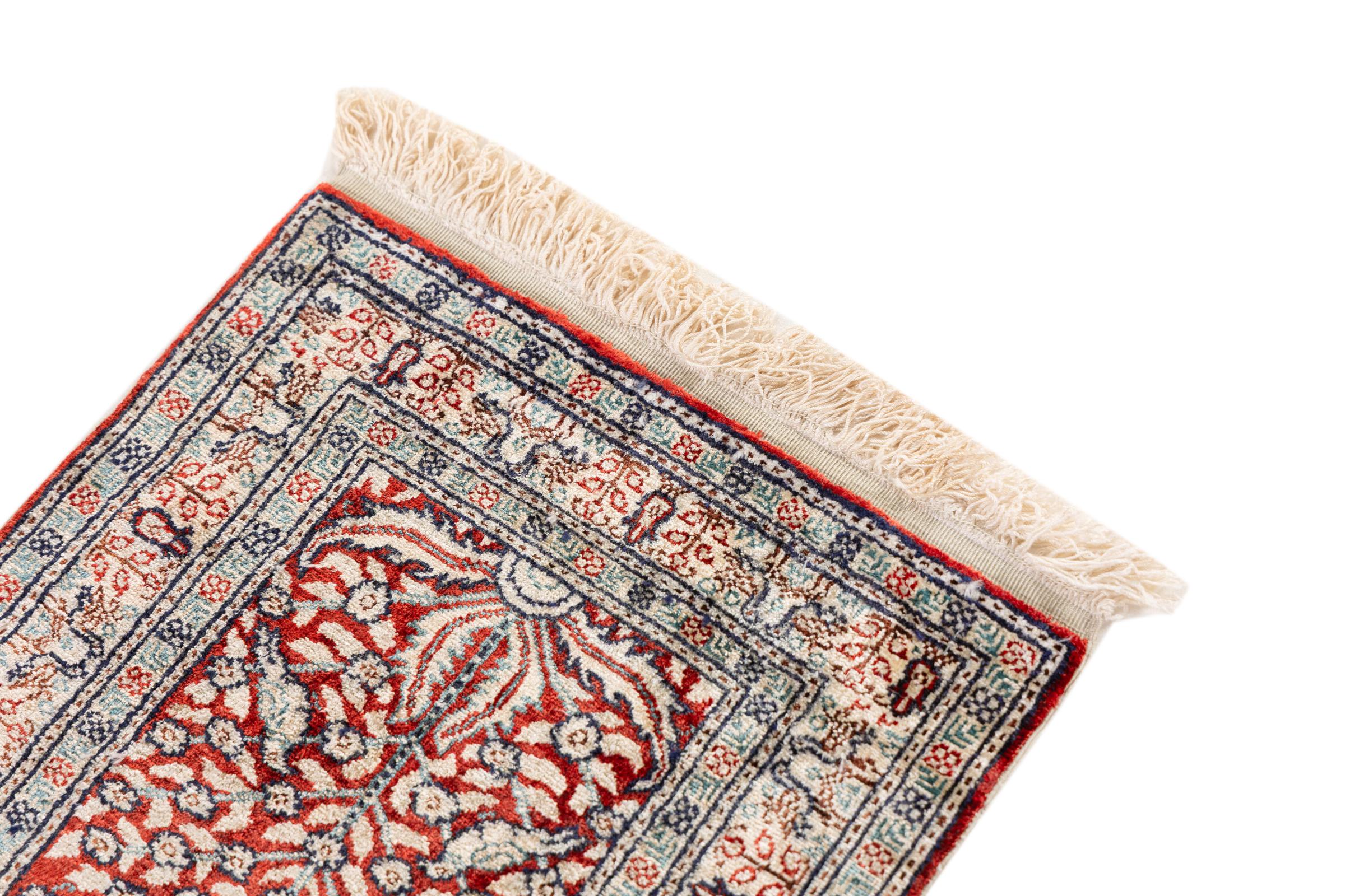 Tappeto-N.: 30714500105648 Dimensione: 59x41 cm Spessore: circa . 5 mm Nodi: 320 000 - 360 000 / m² Lavorazione: Annodato a mano Fondo: Seta Catena: Seta Origine: Cina Età: Nuovo Peso: circa . 1 kg Disponibile: Unico - Solo 1 disponibili