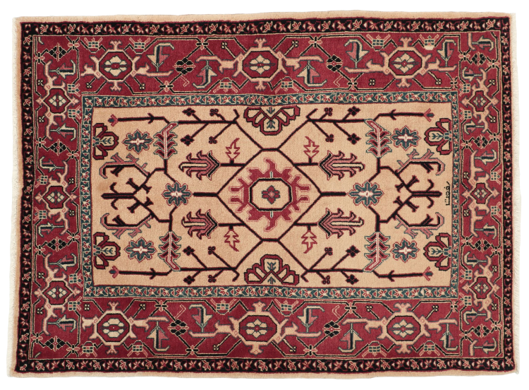 Tappeto-N.: 30880000557985 Dimensione: 155x115 cm Spessore: circa . 12 mm Nodi: 72 000 - 90 000 / m² Lavorazione: Annodato a mano Fondo: Lana filata a mano Catena: Cotone Origine: Persia / Iran Età: Nuovo Peso: circa . 6 kg Disponibile: Unico - Solo 1 disponibili