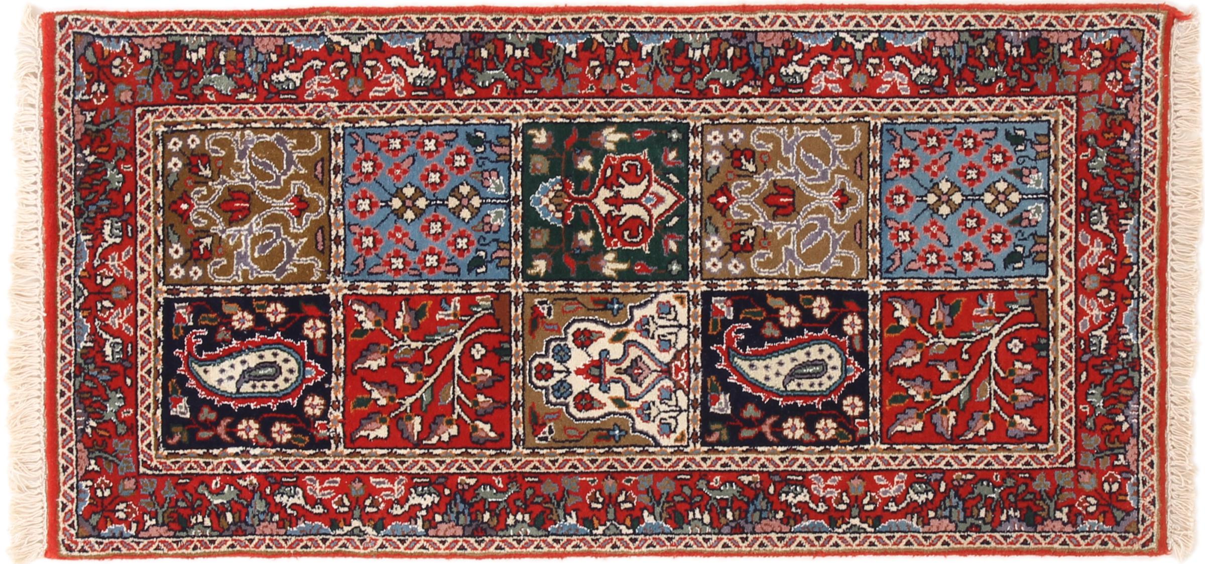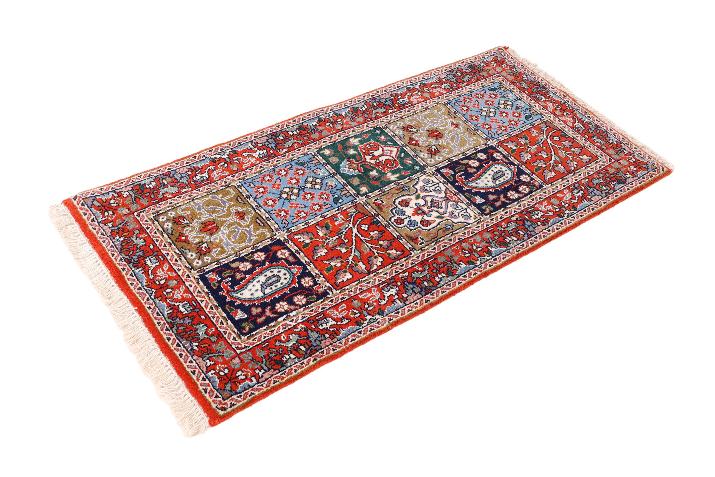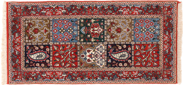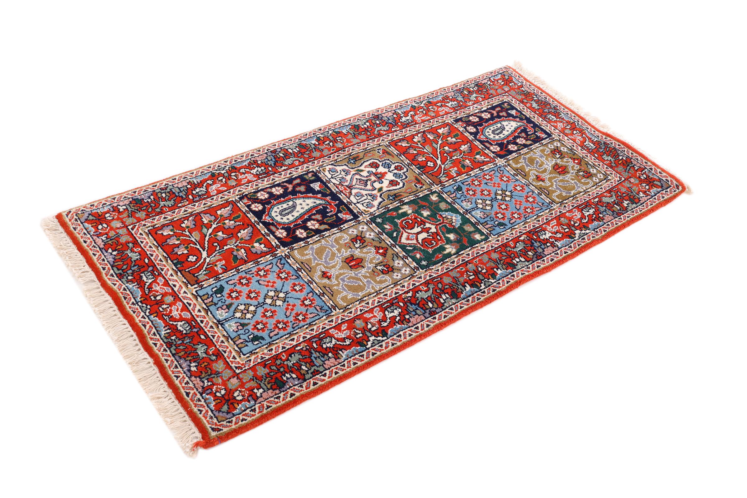 Tappeto-N.: 197895009437661 Dimensione: 143x68 cm Spessore: circa . 12 mm Nodi: 72 000 - 90 000 / m² Lavorazione: Annodato a mano Fondo: Lana filata a mano Catena: Cotone Origine: India Età: Nuovo Peso: circa . 3 kg Disponibile: Unico - Solo 1 disponibili