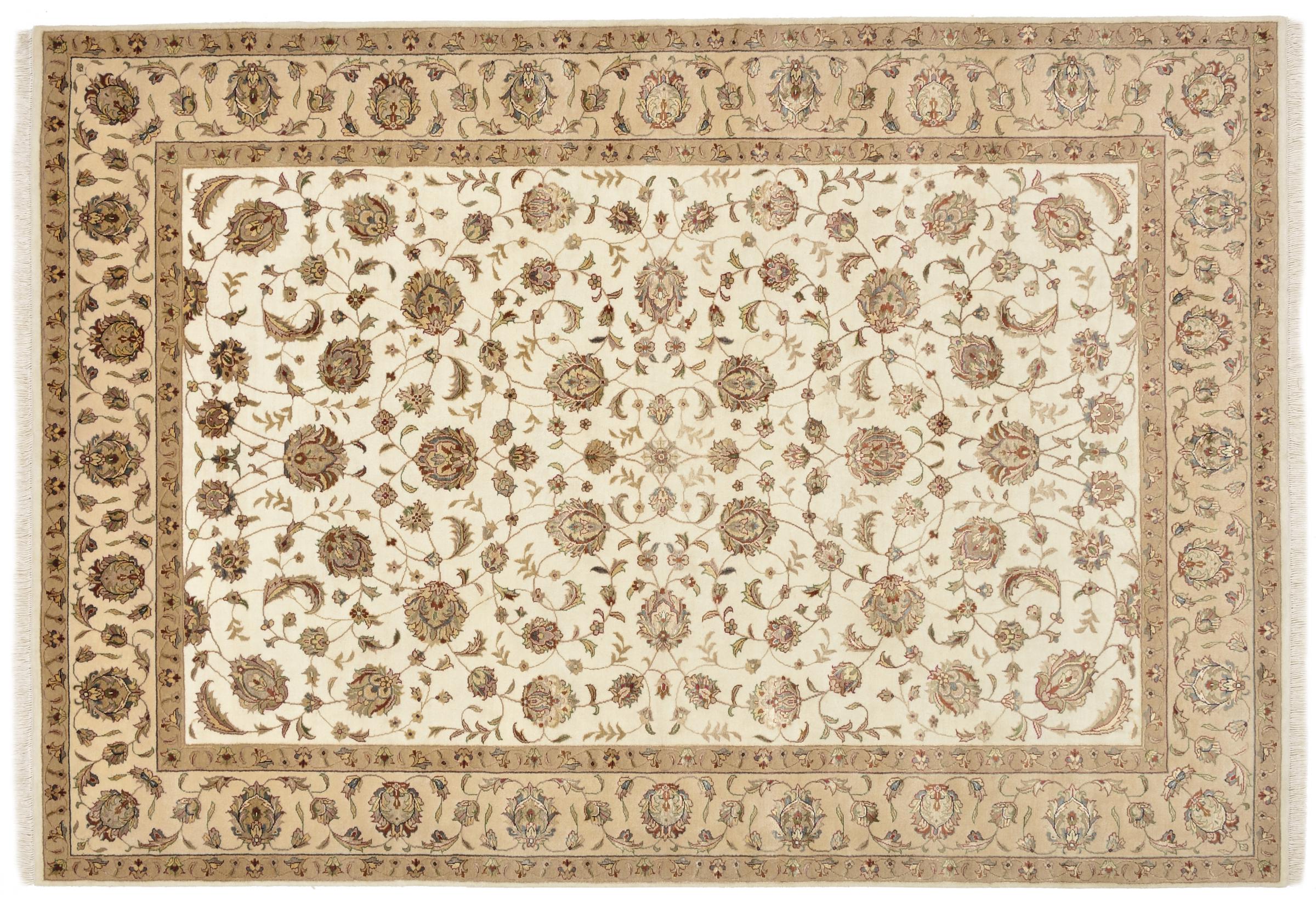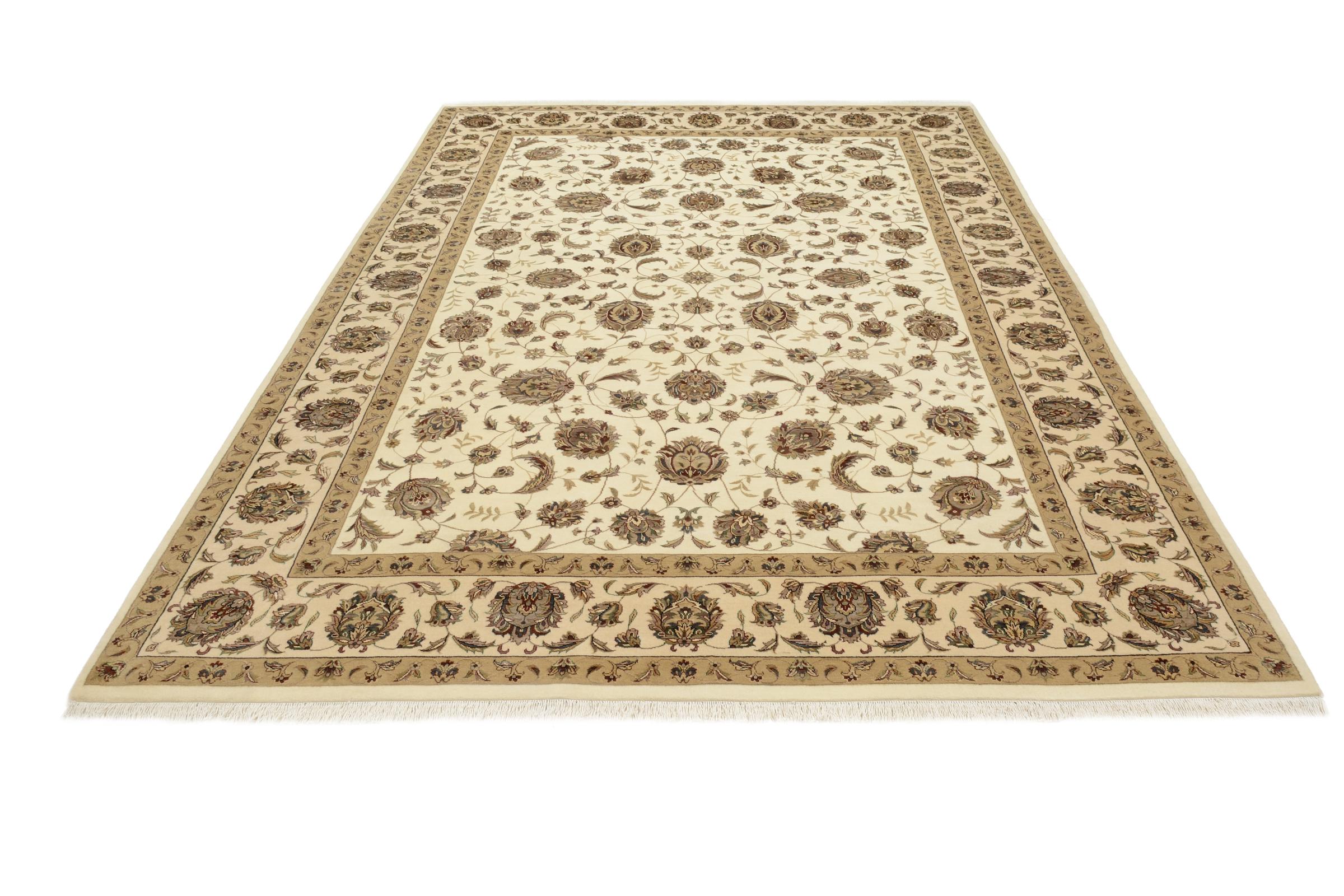 Questo Indo Tabriz è un bell'esempio di lavoro indiano specializzato. Annodato a mano e realizzato con buona lana, rimarrà con te per molto tempo. Altrove non troverete altri tappeti di questo tipo con meno soldi.