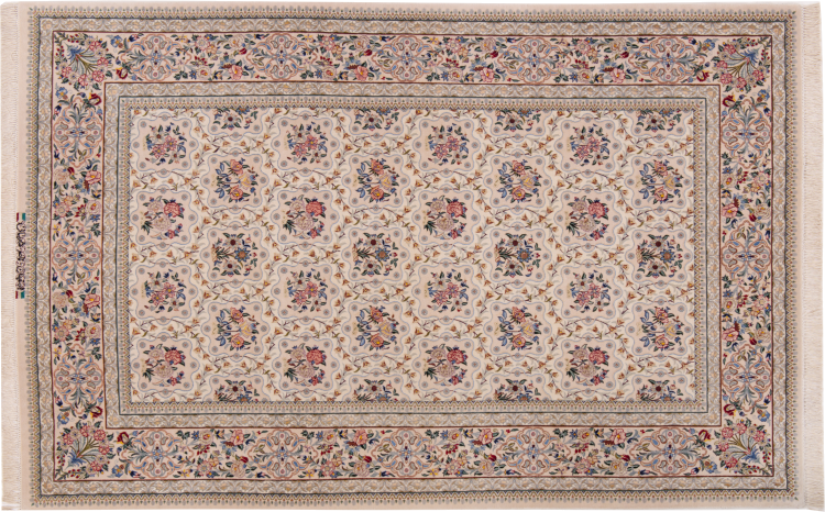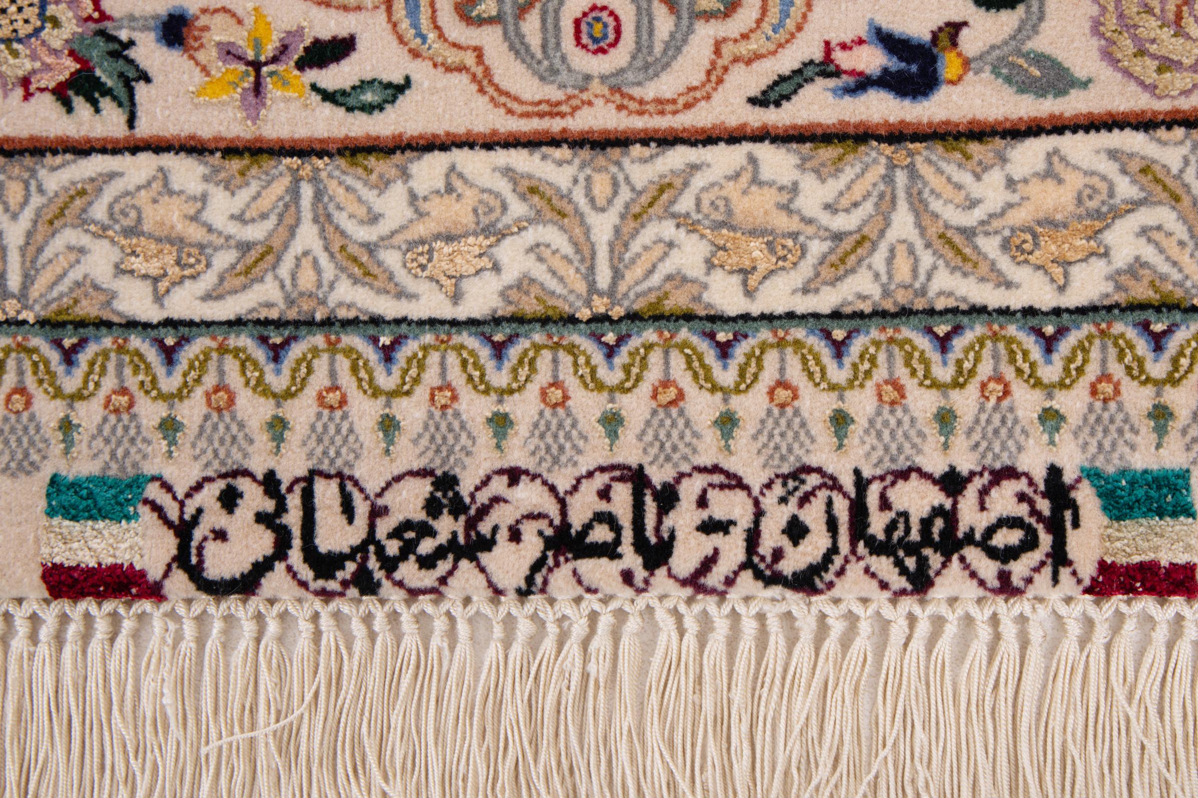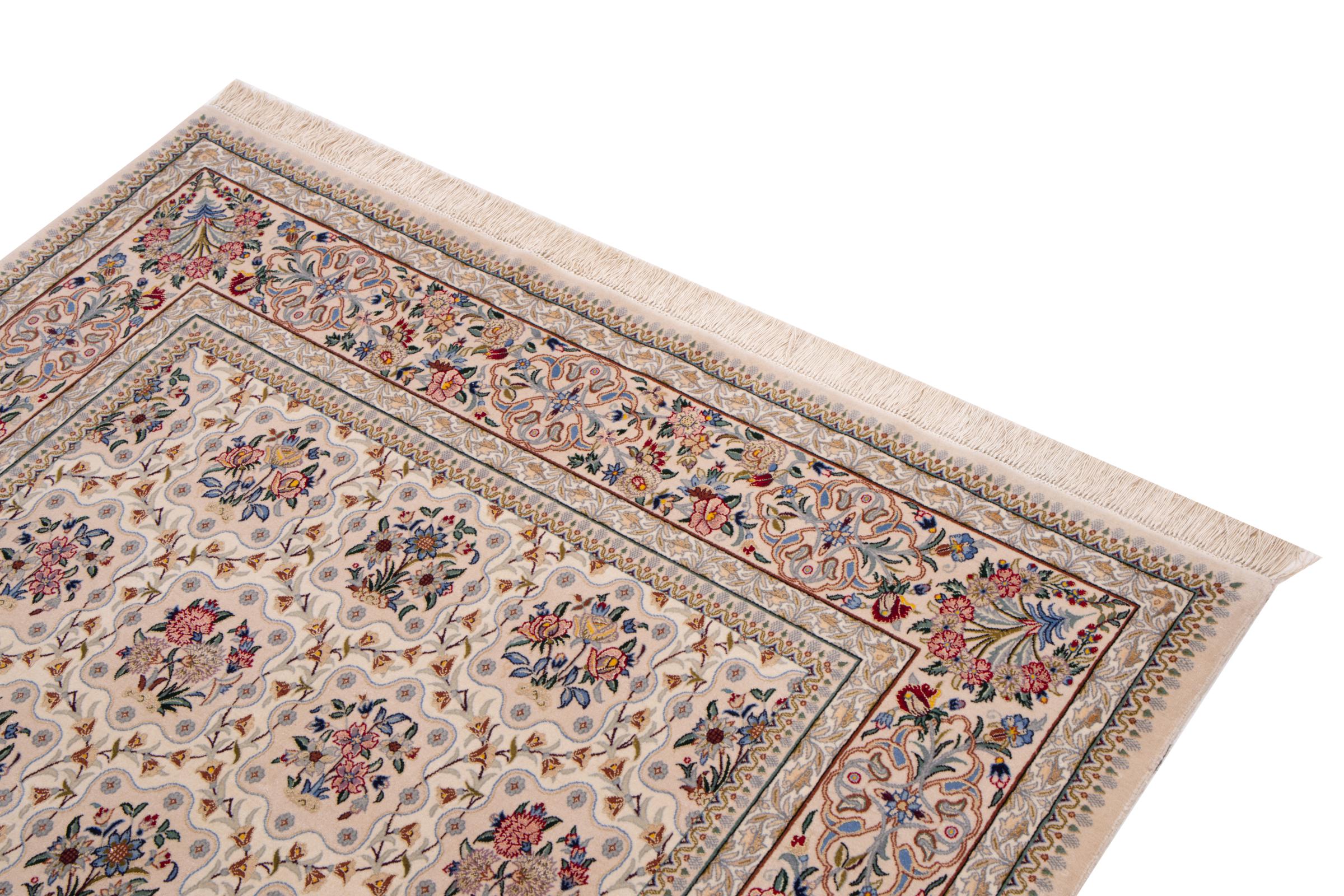 Tappeto-N.: 292361008681435 Dimensione: 226x145 cm Spessore: circa . 8 mm Nodi: 640 000 / m² Lavorazione: Annodato a mano Fondo: Lana con seta Catena: Seta Origine: Persia / Iran Età: Nuovo Peso: circa . 10 kg Disponibile: Unico - Solo 1 disponibili