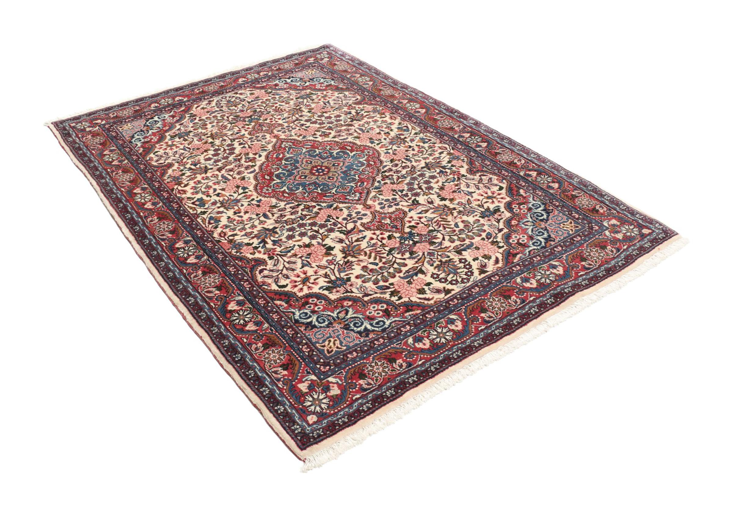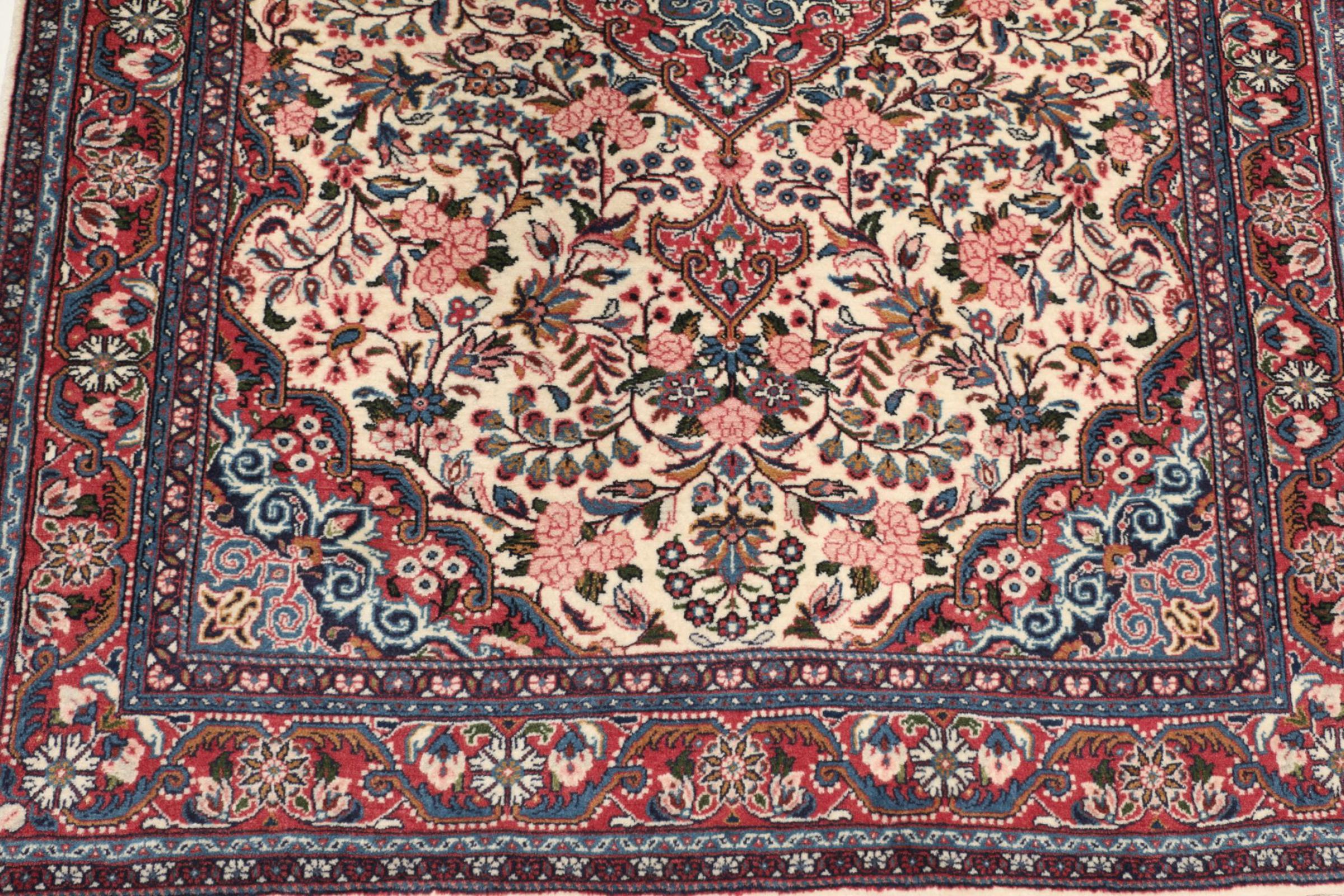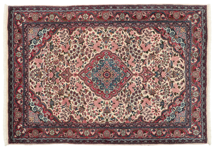Tappeto-N.: 308701009375752 Dimensione: 152x110 cm Spessore: circa . 10 mm Nodi: 200 000 - 250 000 / m² Lavorazione: Annodato a mano Fondo: Lana filata a mano Catena: Cotone Origine: Persia / Iran Età: Nuovo Peso: circa . 6 kg Conosciuto anche come Josan Disponibile: Unico - Solo 1 disponibili