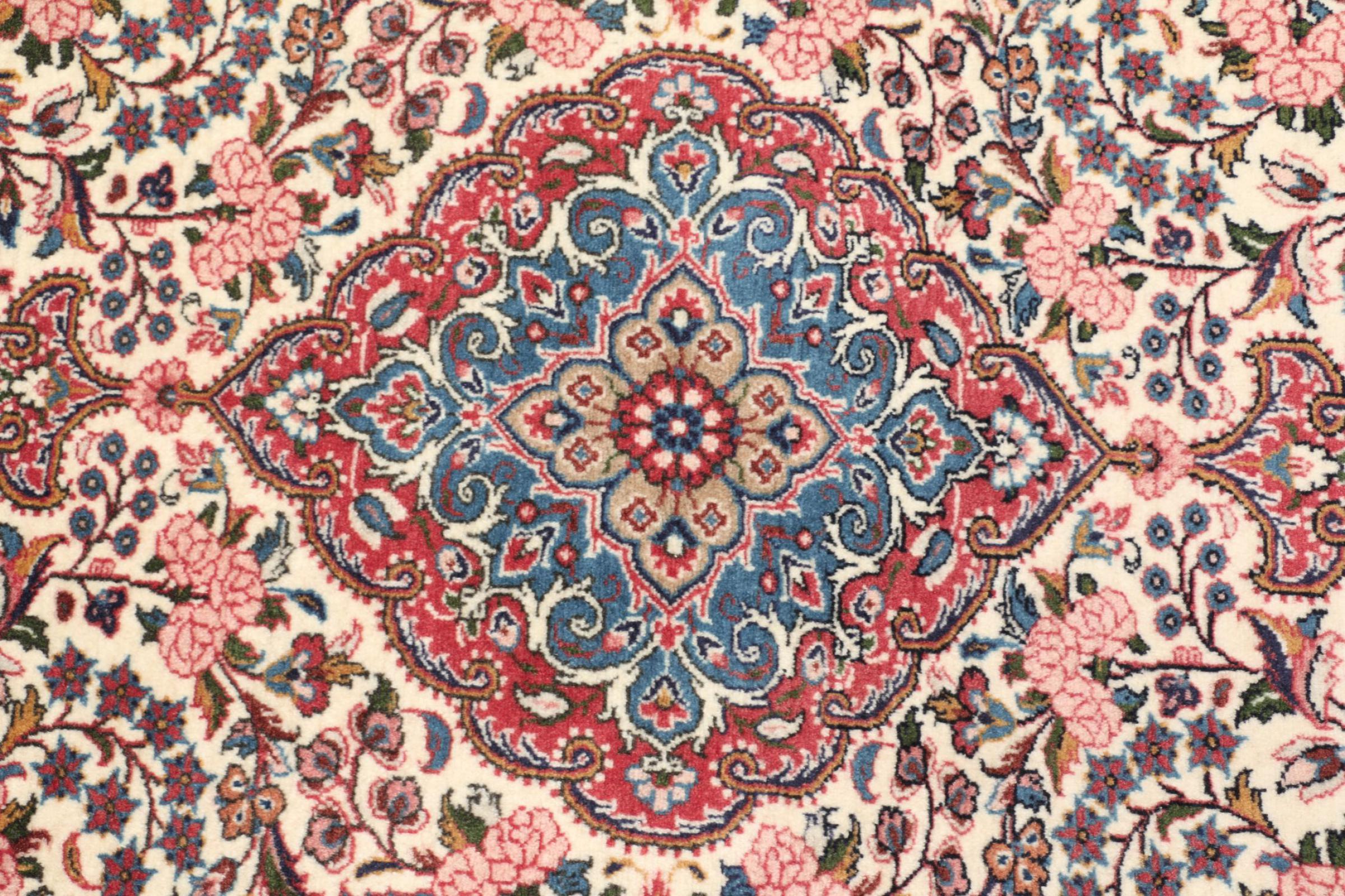 Questo tappeto è realizzato in lana di pecora filata a mano di altissima qualità. Soprattutto in Iran (ex Persia), Afghanistan e Pakistan la lana viene ancora filata a mano prima che inizi l'annodatura vera e propria del tappeto. La lana si è dimostrata nei secoli un materiale naturale ed estremamente resistente. Tra le altre cose, ha proprietà di repellenza allo sporco e di isolamento termico. Allo stesso tempo, la lana è incomparabilmente morbida e ha una lucentezza naturale.