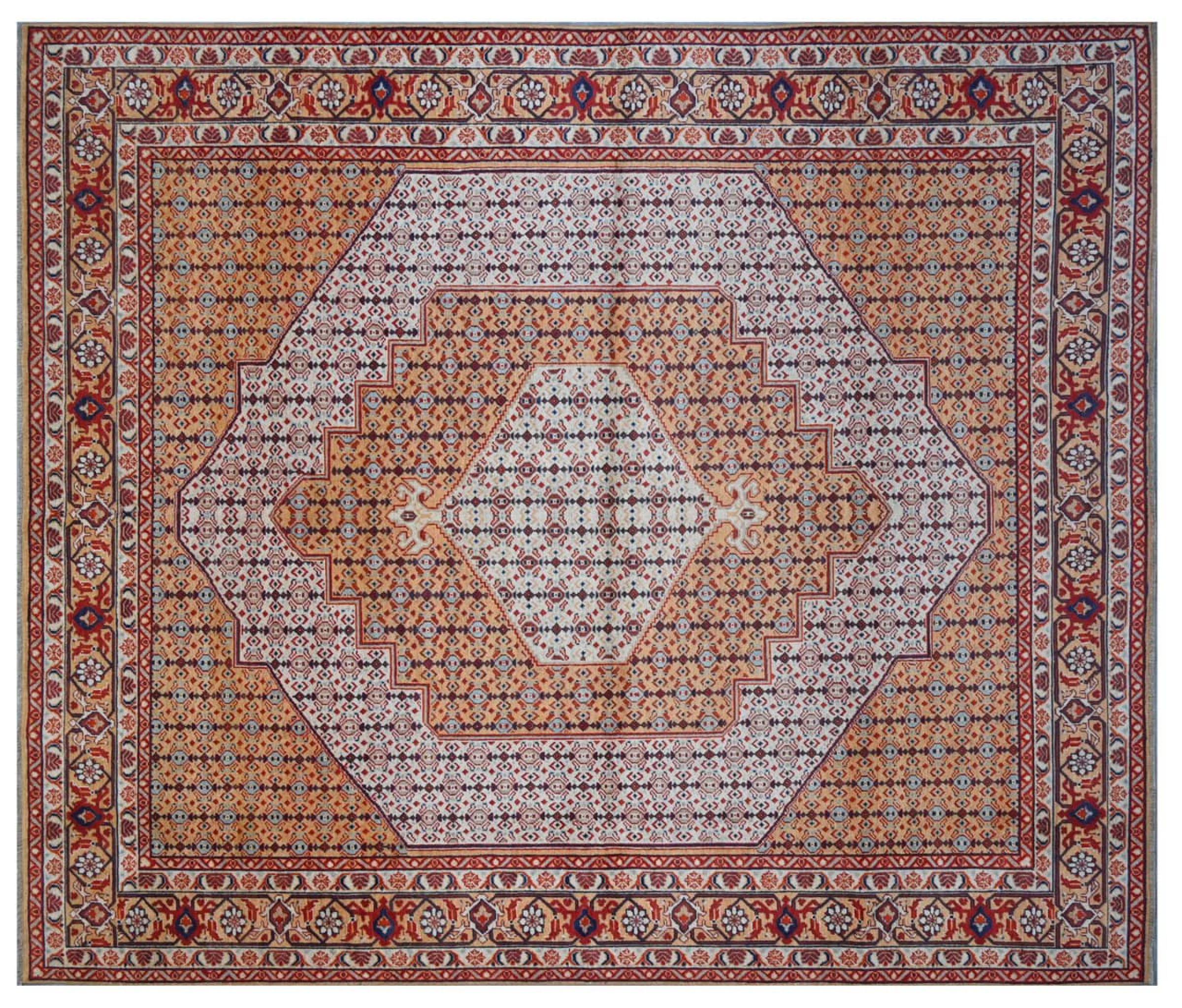 Tappeto-N.: 305897001888774 Dimensione: 301x256 cm Spessore: circa . 5 mm Nodi: 96 000 - 120 000 / m² Lavorazione: Annodato a mano Fondo: Lana filata a mano Catena: Cotone Origine: Afghanistan Età: Nuovo Peso: circa . 19 kg Disponibile: Unico - Solo 1 disponibili