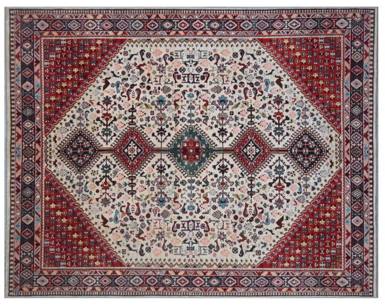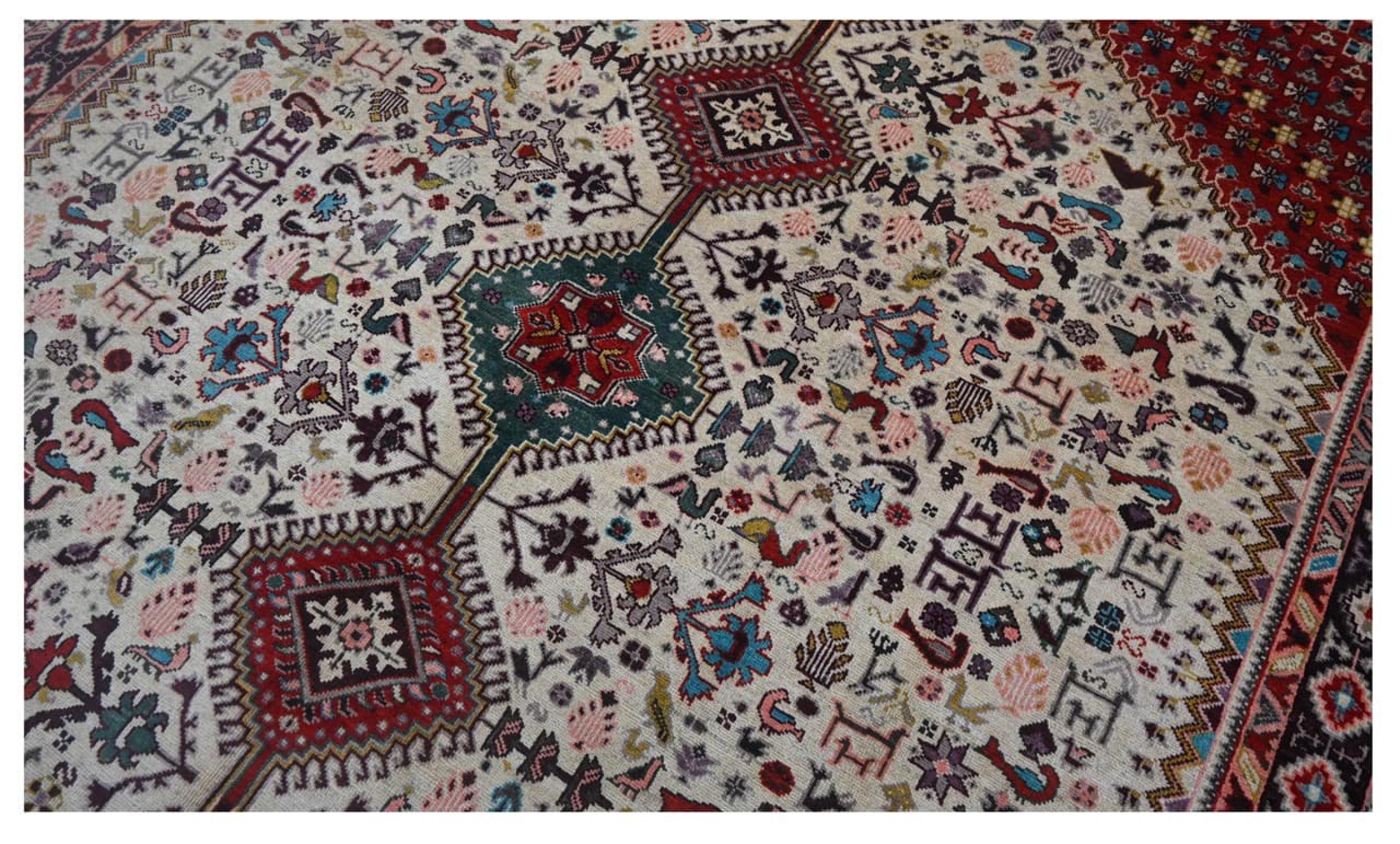 Questo tappeto è realizzato in lana di pecora filata a mano di altissima qualità. Soprattutto in Iran (ex Persia), Afghanistan e Pakistan la lana viene ancora filata a mano prima che inizi l'annodatura vera e propria del tappeto. La lana si è dimostrata nei secoli un materiale naturale ed estremamente resistente. Tra le altre cose, ha proprietà di repellenza allo sporco e di isolamento termico. Allo stesso tempo, la lana è incomparabilmente morbida e ha una lucentezza naturale.