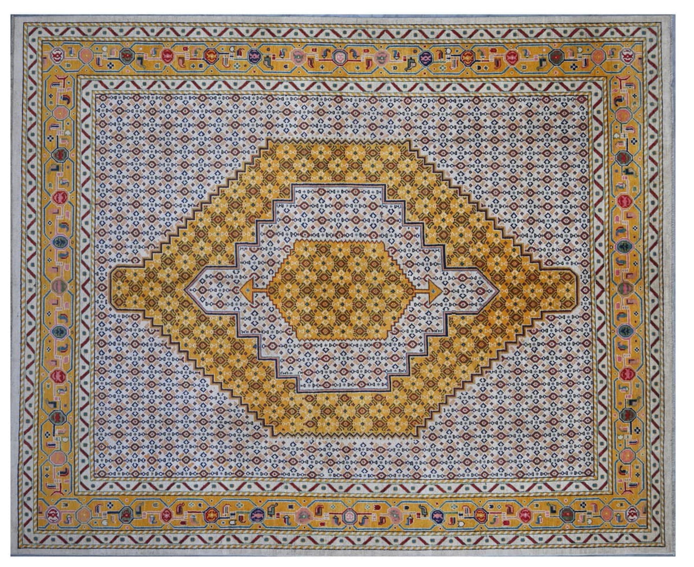 Tappeto-N.: 30588800523691 Dimensione: 327x253 cm Spessore: circa . 5 mm Nodi: 96 000 - 120 000 / m² Lavorazione: Annodato a mano Fondo: Lana filata a mano Catena: Cotone Origine: Afghanistan Età: Nuovo Peso: circa . 21 kg Disponibile: Unico - Solo 1 disponibili