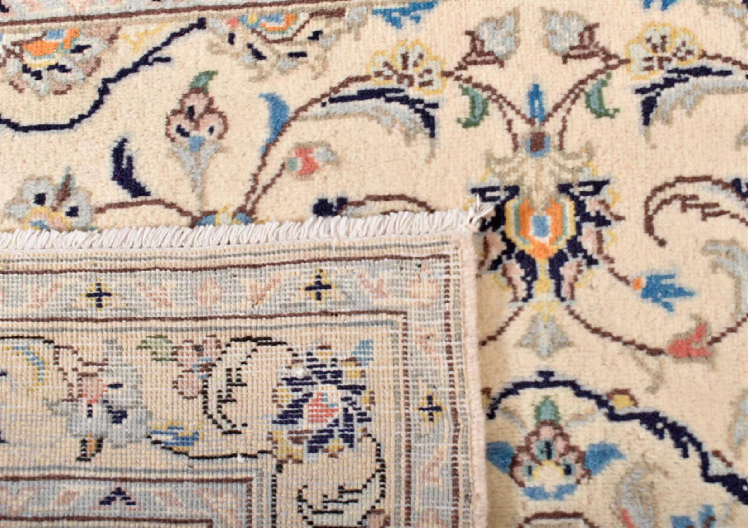 Questo tappeto di Kashan (Keshan) è tenuto nel suo design persiano molto tradizionale e tipico con bellissimi ornamenti. I tappeti Kashan sono molto popolari grazie al loro design eccezionalmente elegante. Questi tappeti provengono da Kashan, una città sull'antica Via della Seta. Questo tappeto è stato annodato a mano con lana di pecora di alta qualità e sarà un pezzo unico nella tua casa.