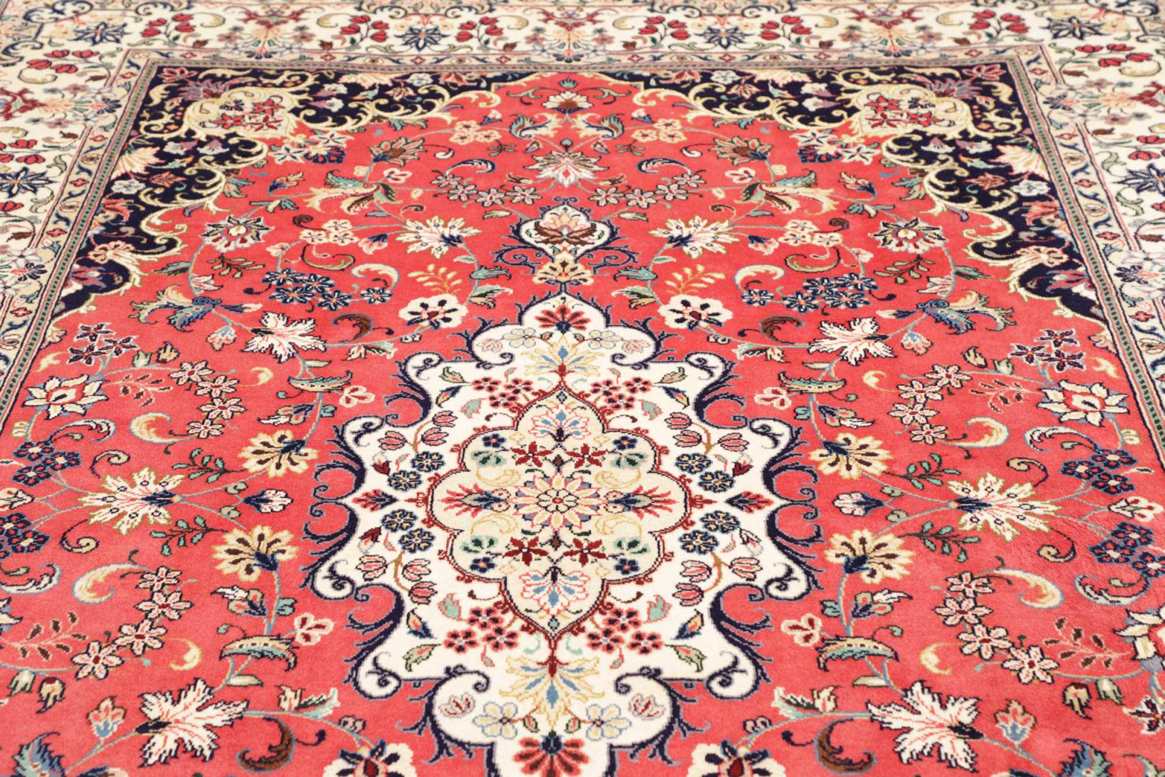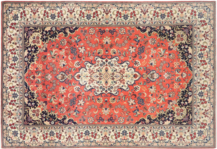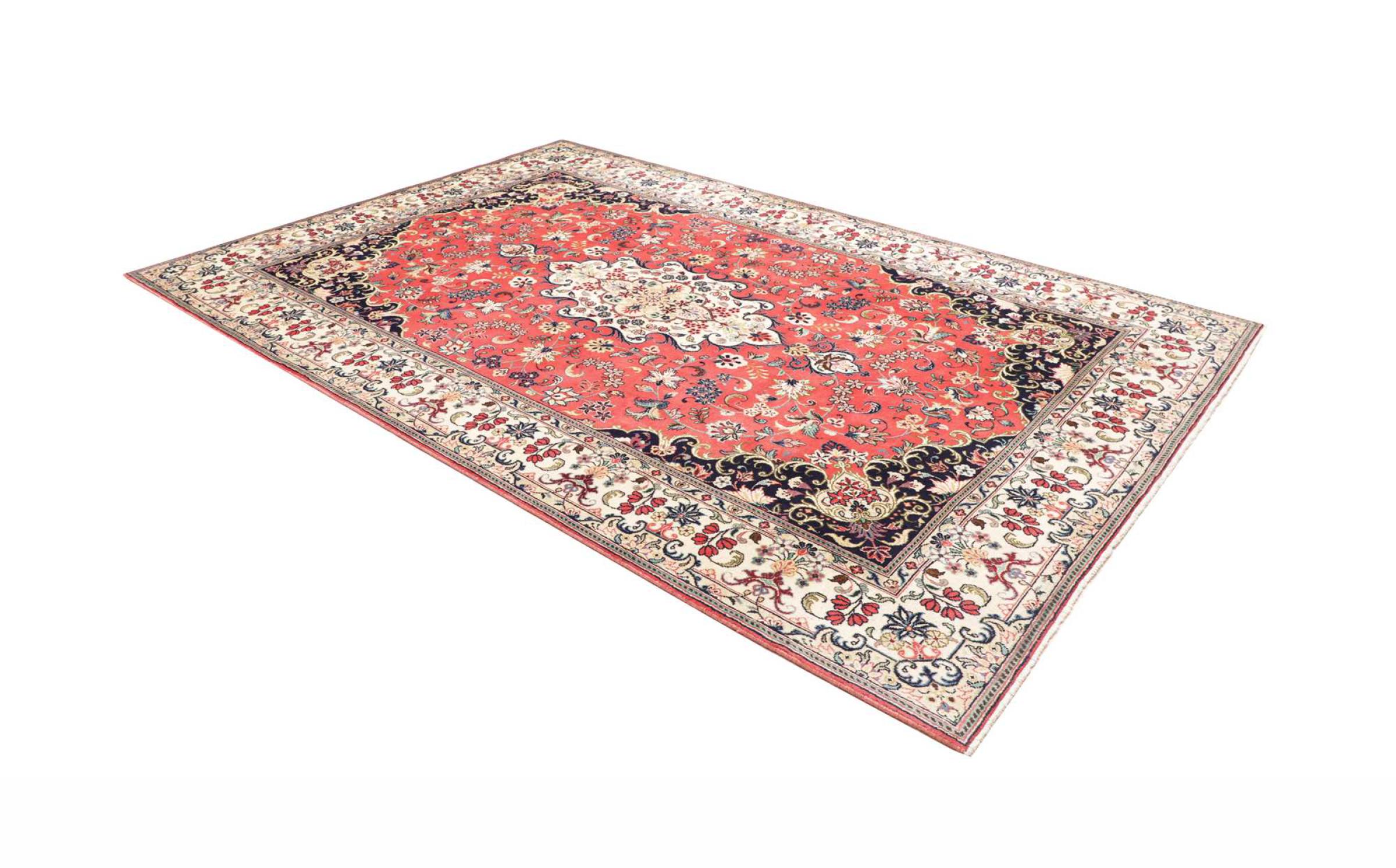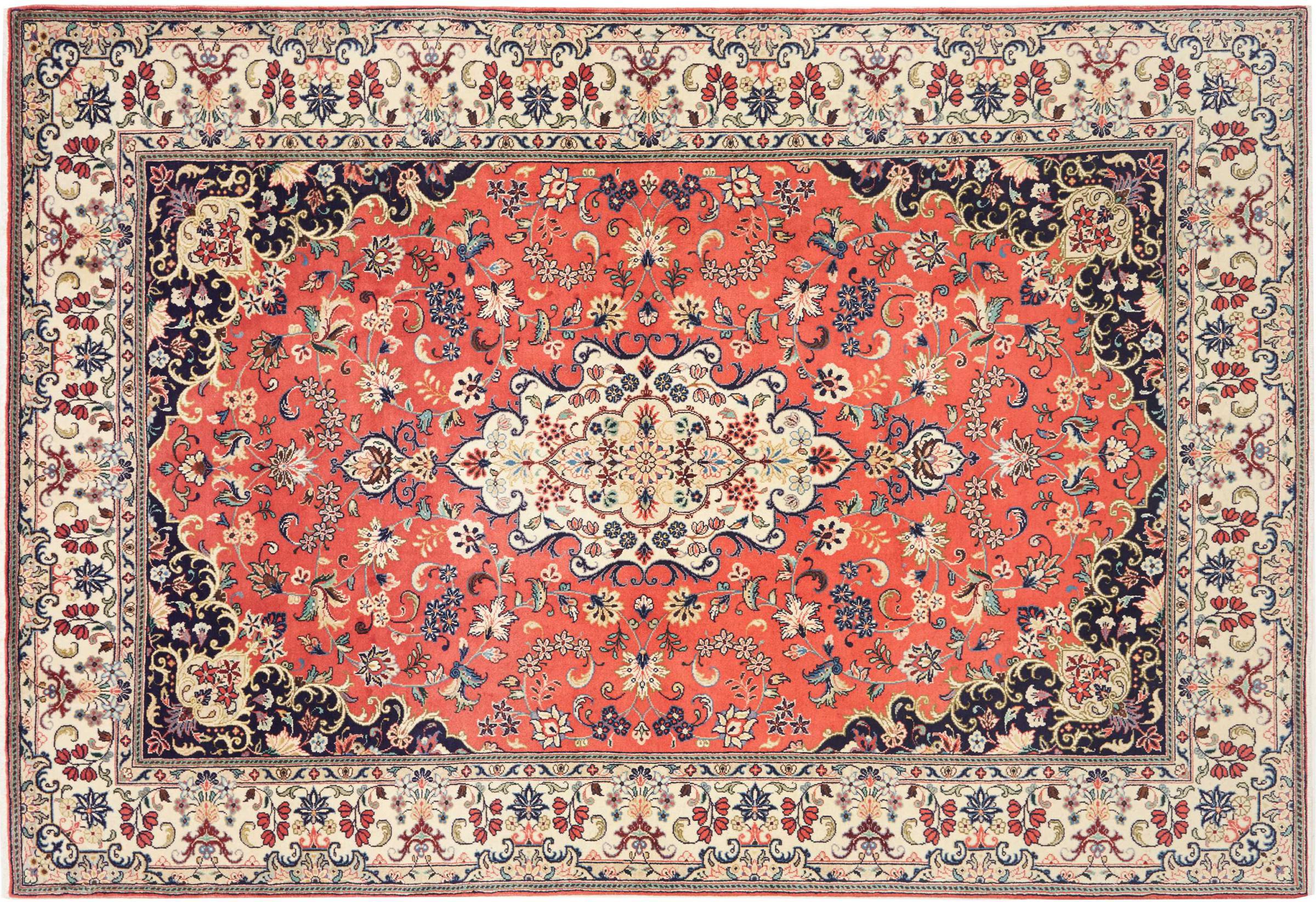 Tappeto-N.: 300753005133478 Dimensione: 292x195 cm Spessore: circa . 12 mm Nodi: 128 000 - 160 000 / m² Lavorazione: Annodato a mano Fondo: Lana filata a mano Catena: Cotone Origine: Persia / Iran Età: Nuovo Peso: circa . 20 kg Disponibile: Unico - Solo 1 disponibili