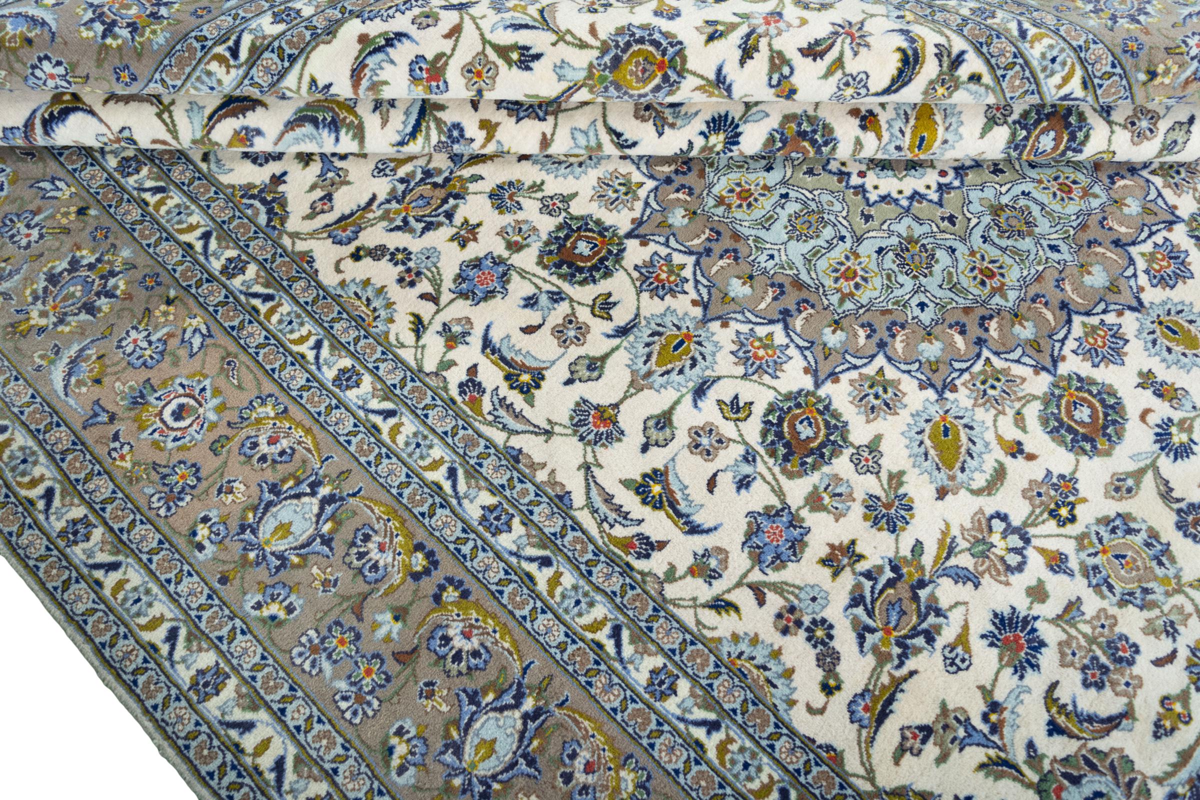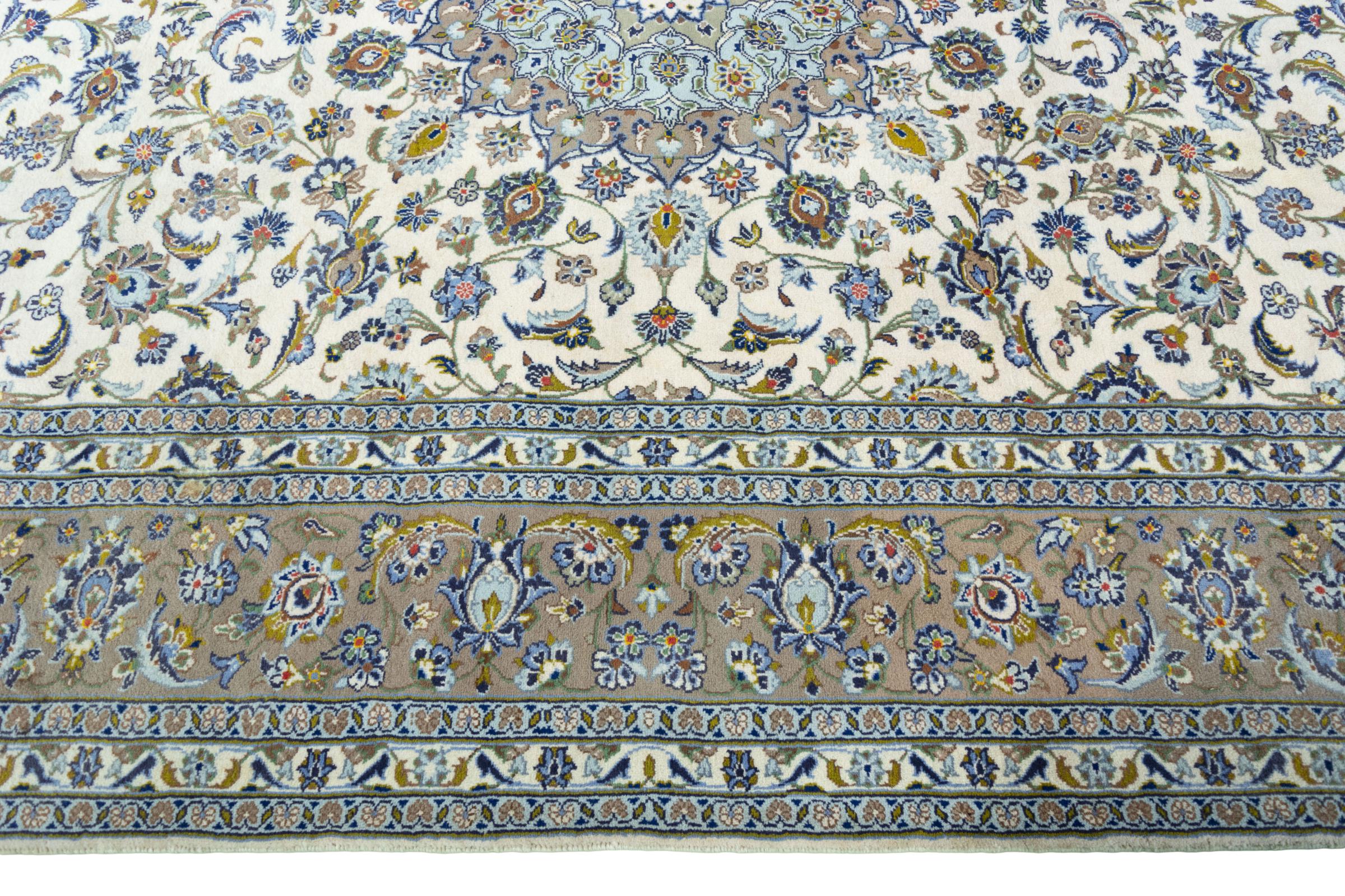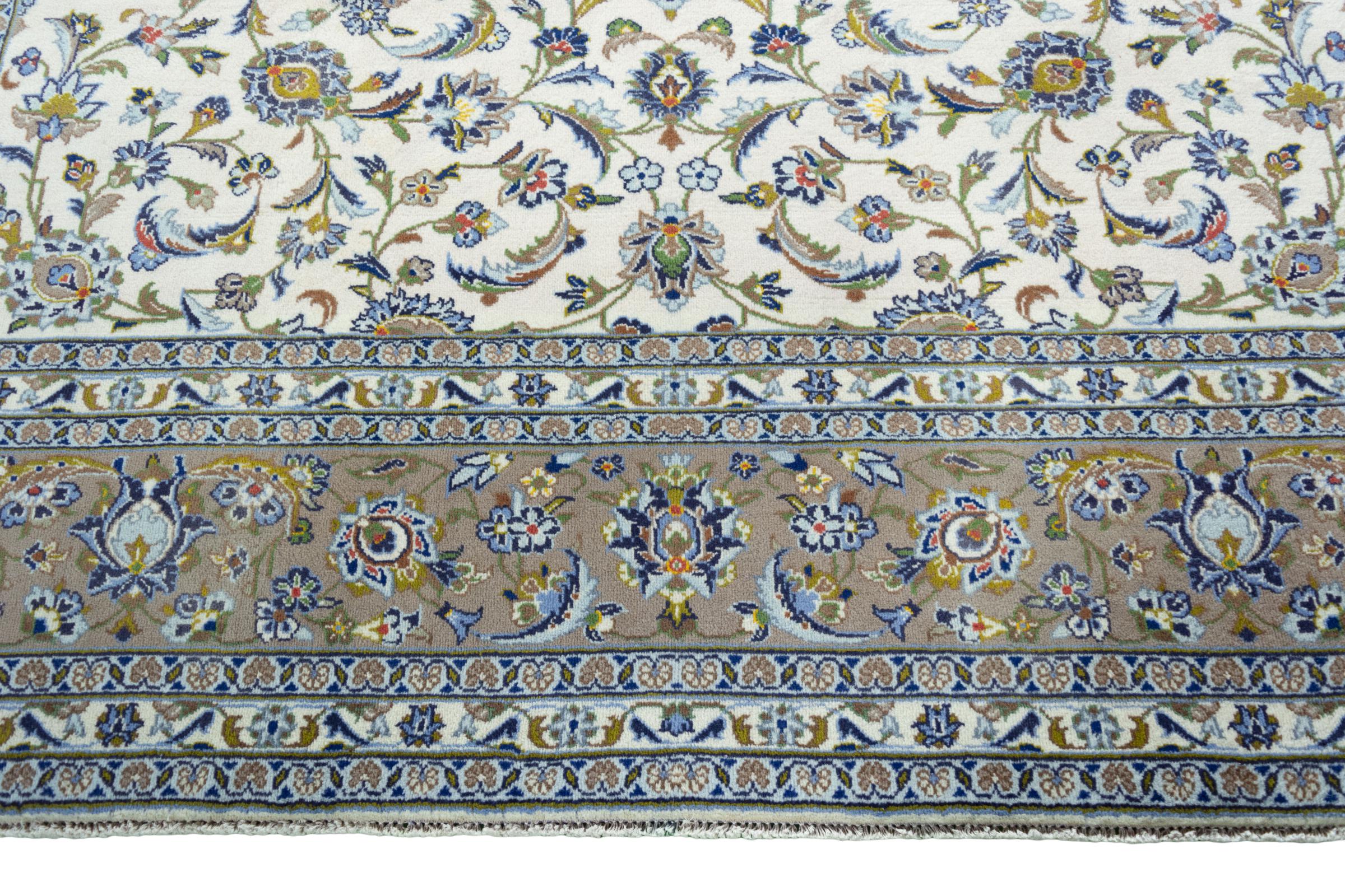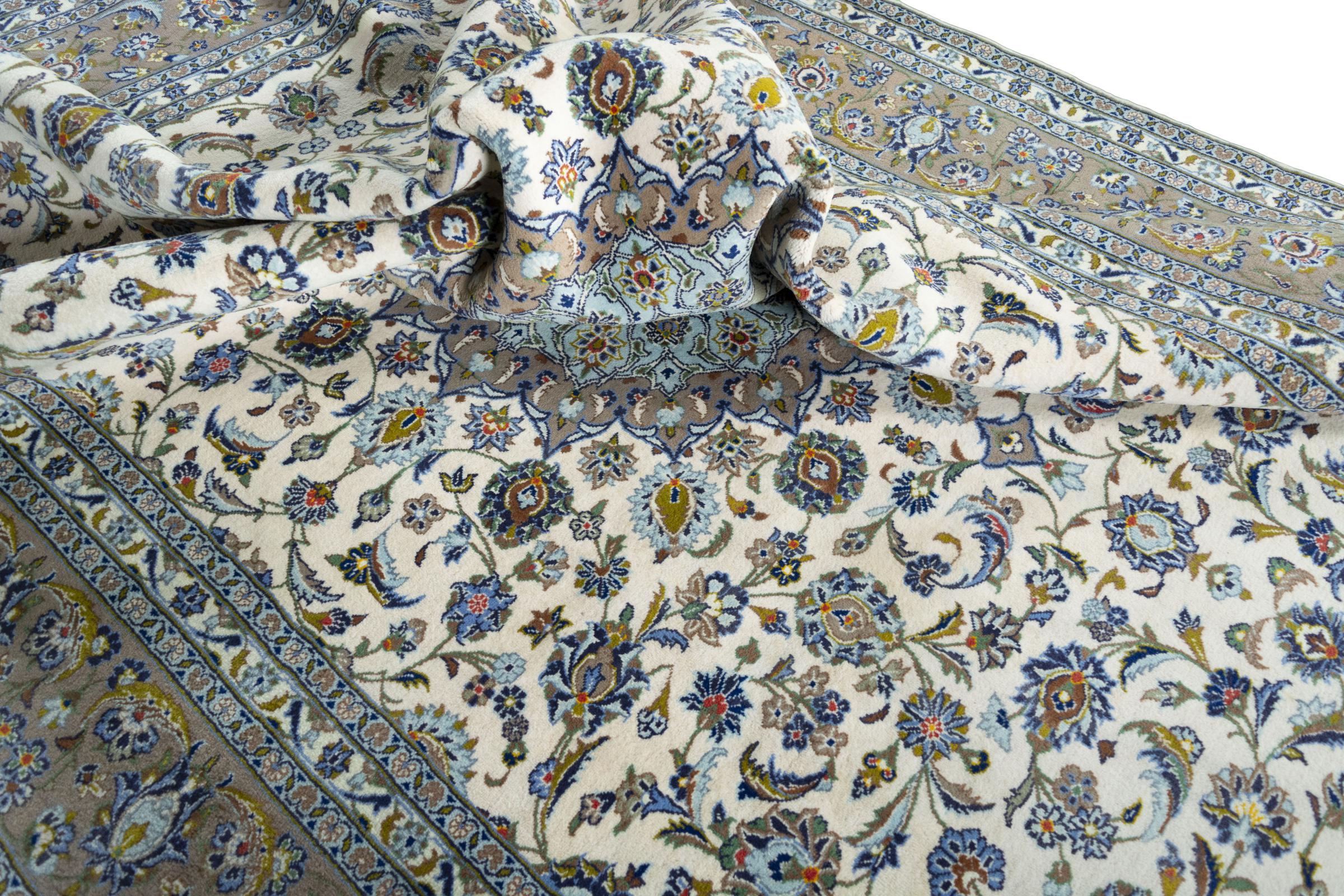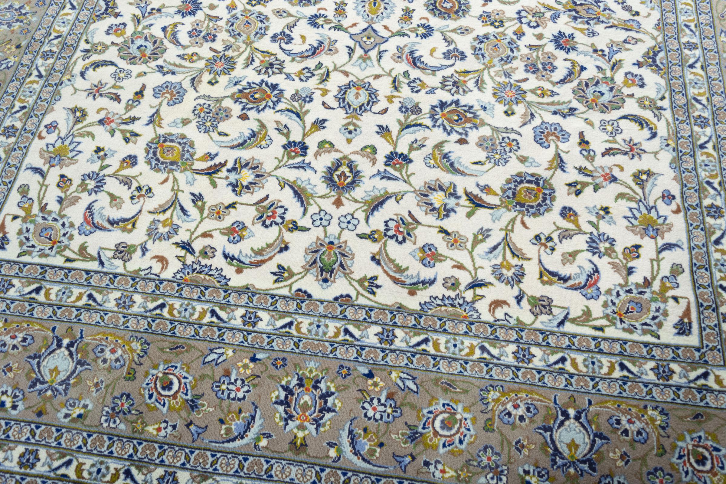 Questo tappeto di Kashan (Keshan) è tenuto nel suo design persiano molto tradizionale e tipico con bellissimi ornamenti. I tappeti Kashan sono molto popolari grazie al loro design eccezionalmente elegante. Questi tappeti provengono da Kashan, una città sull'antica Via della Seta. Questo tappeto è stato annodato a mano con lana di pecora di alta qualità e sarà un pezzo unico nella tua casa.