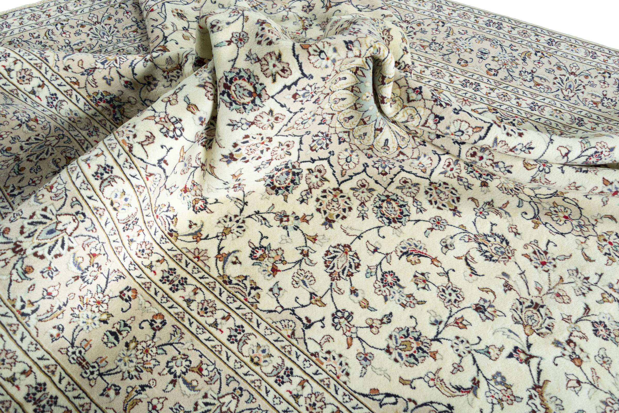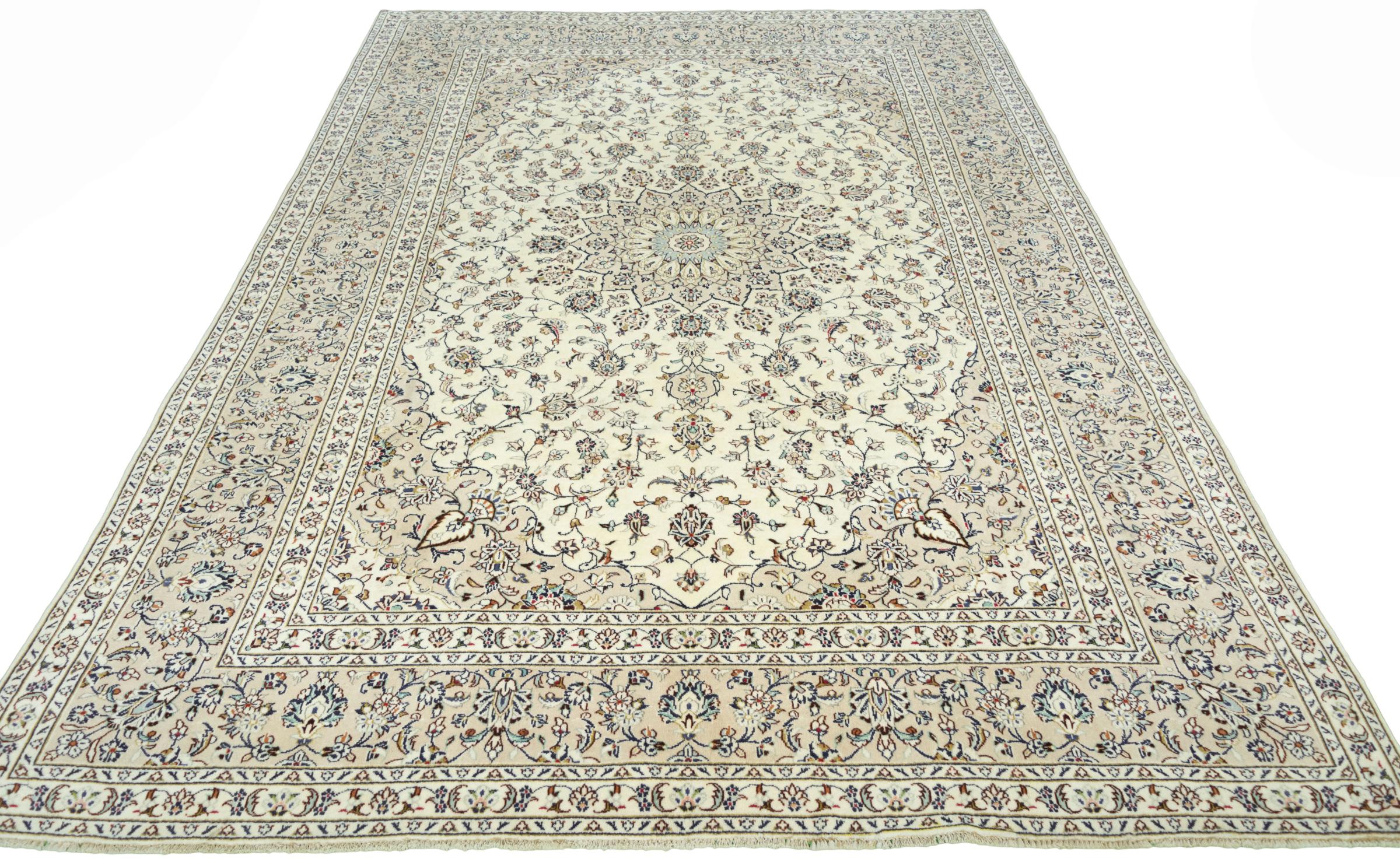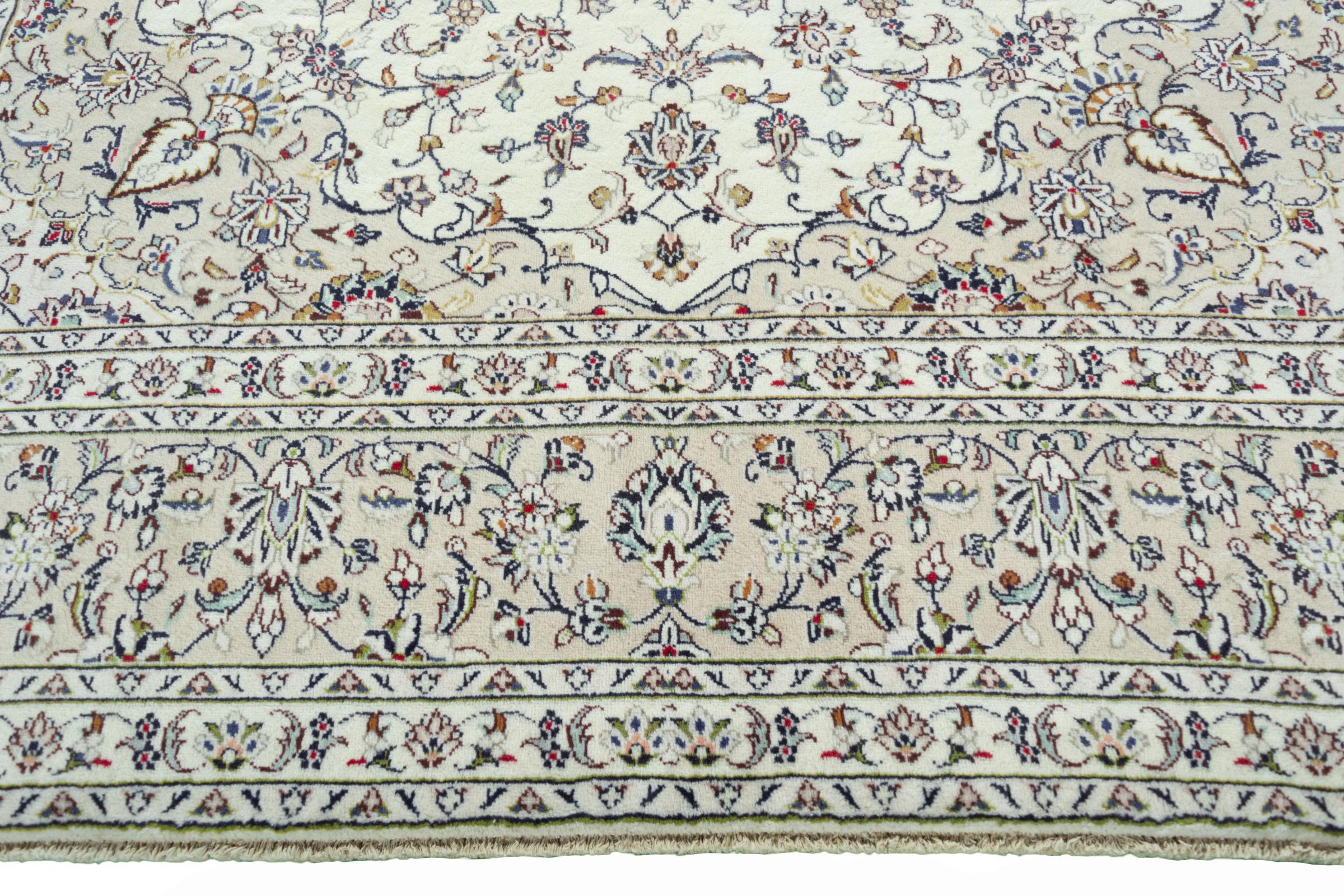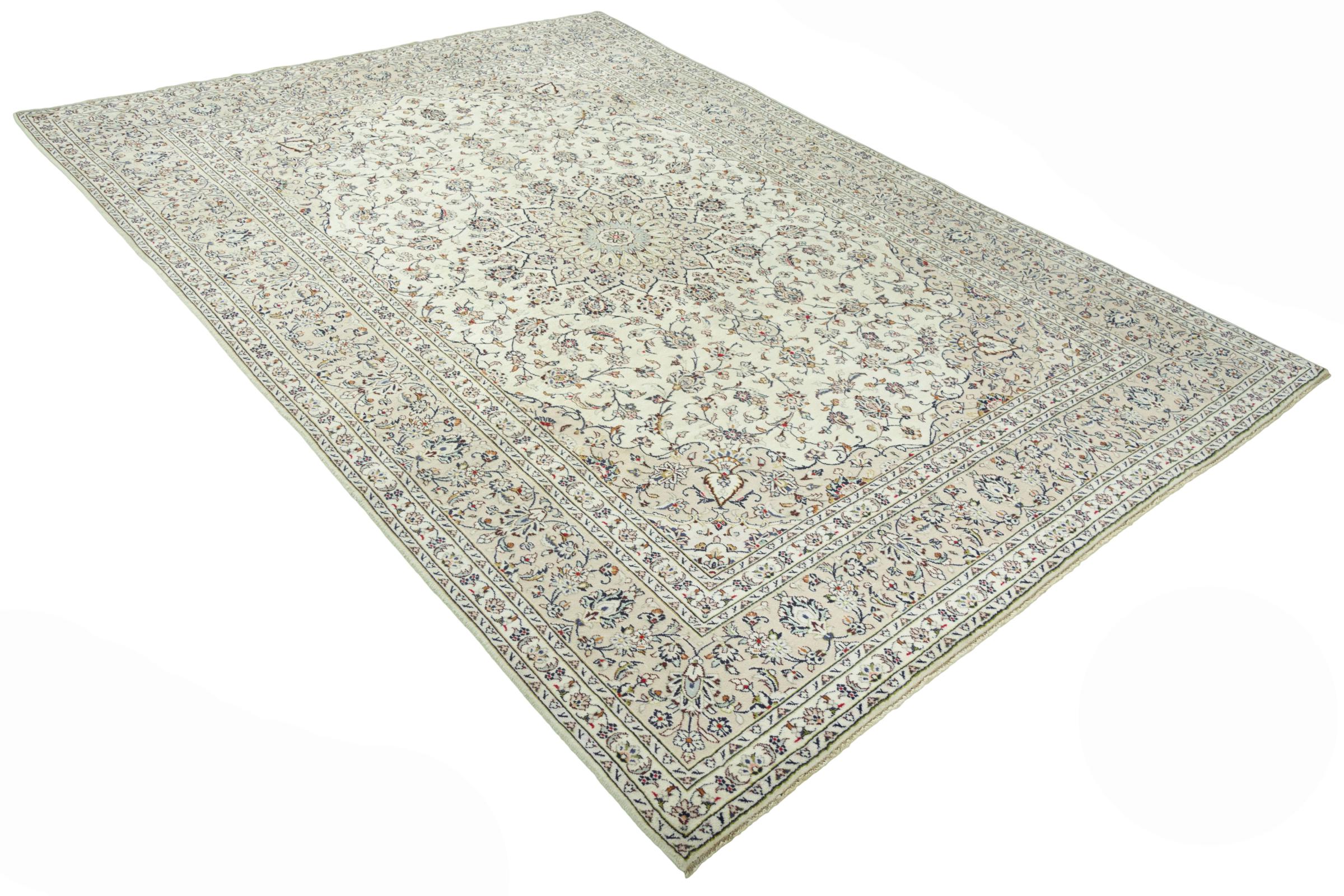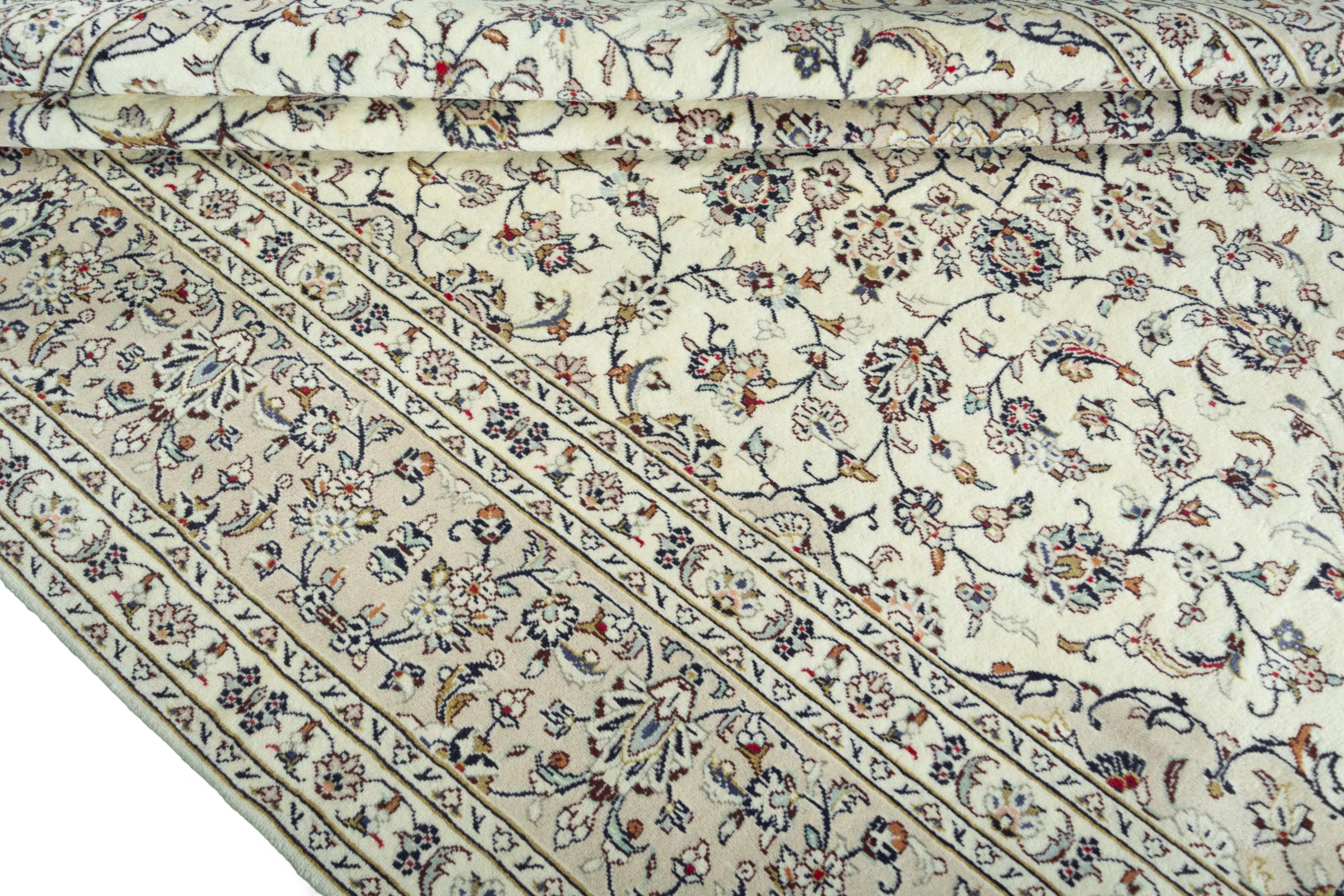 Questo tappeto di Kashan (Keshan) è tenuto nel suo design persiano molto tradizionale e tipico con bellissimi ornamenti. I tappeti Kashan sono molto popolari grazie al loro design eccezionalmente elegante. Questi tappeti provengono da Kashan, una città sull'antica Via della Seta. Questo tappeto è stato annodato a mano con lana di pecora di alta qualità e sarà un pezzo unico nella tua casa.