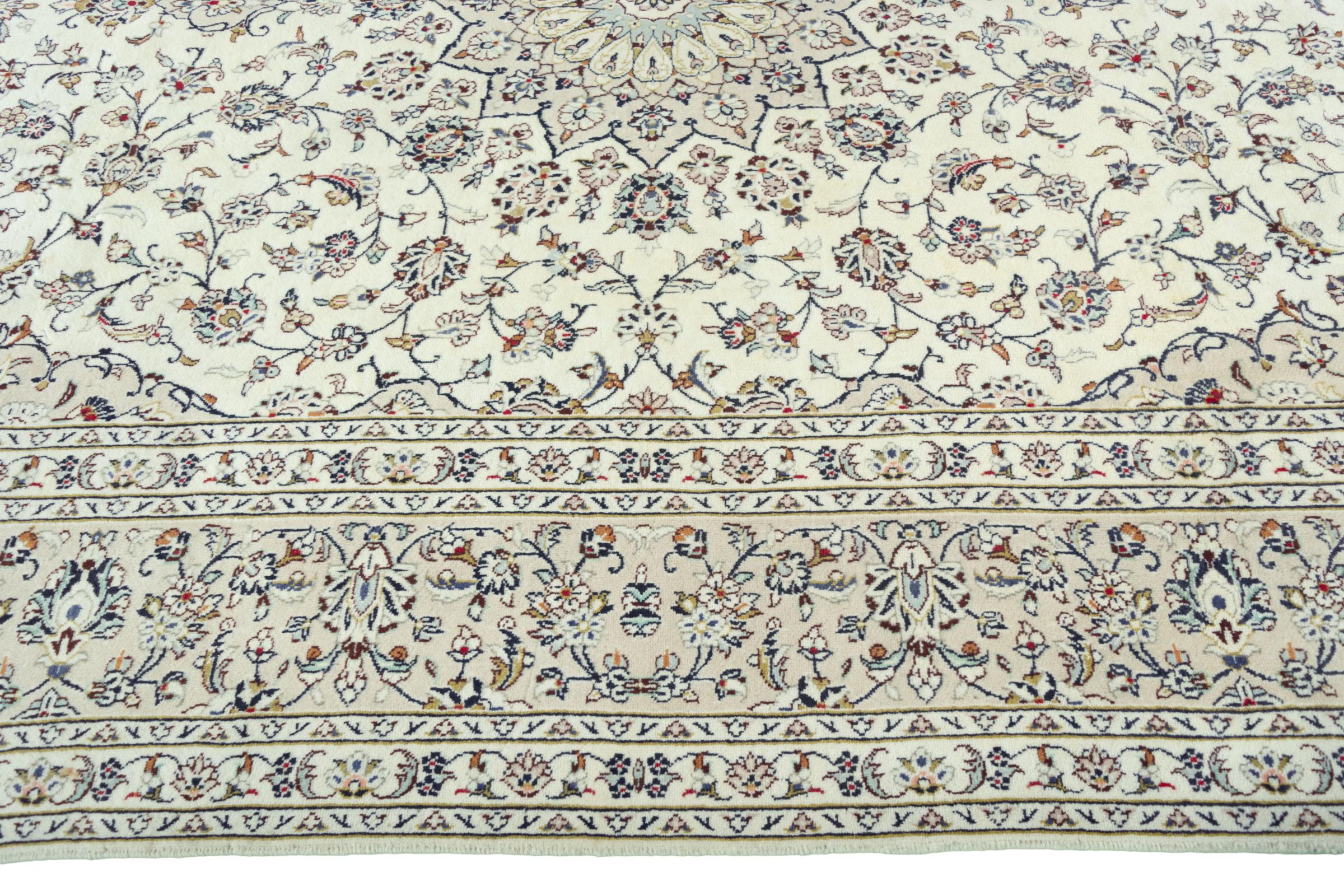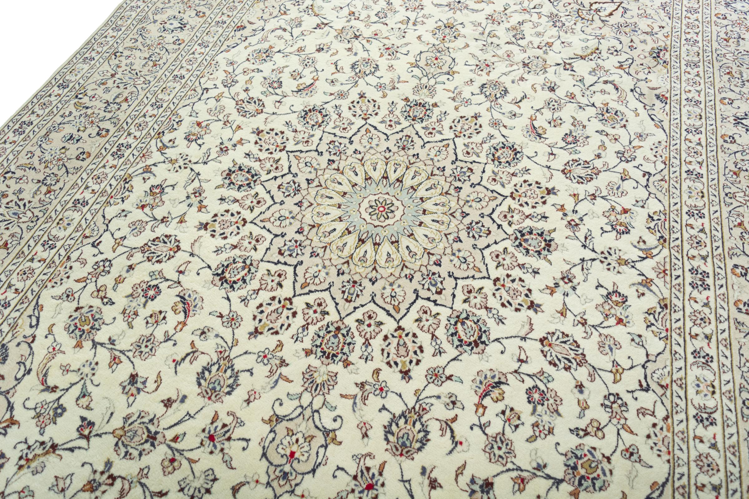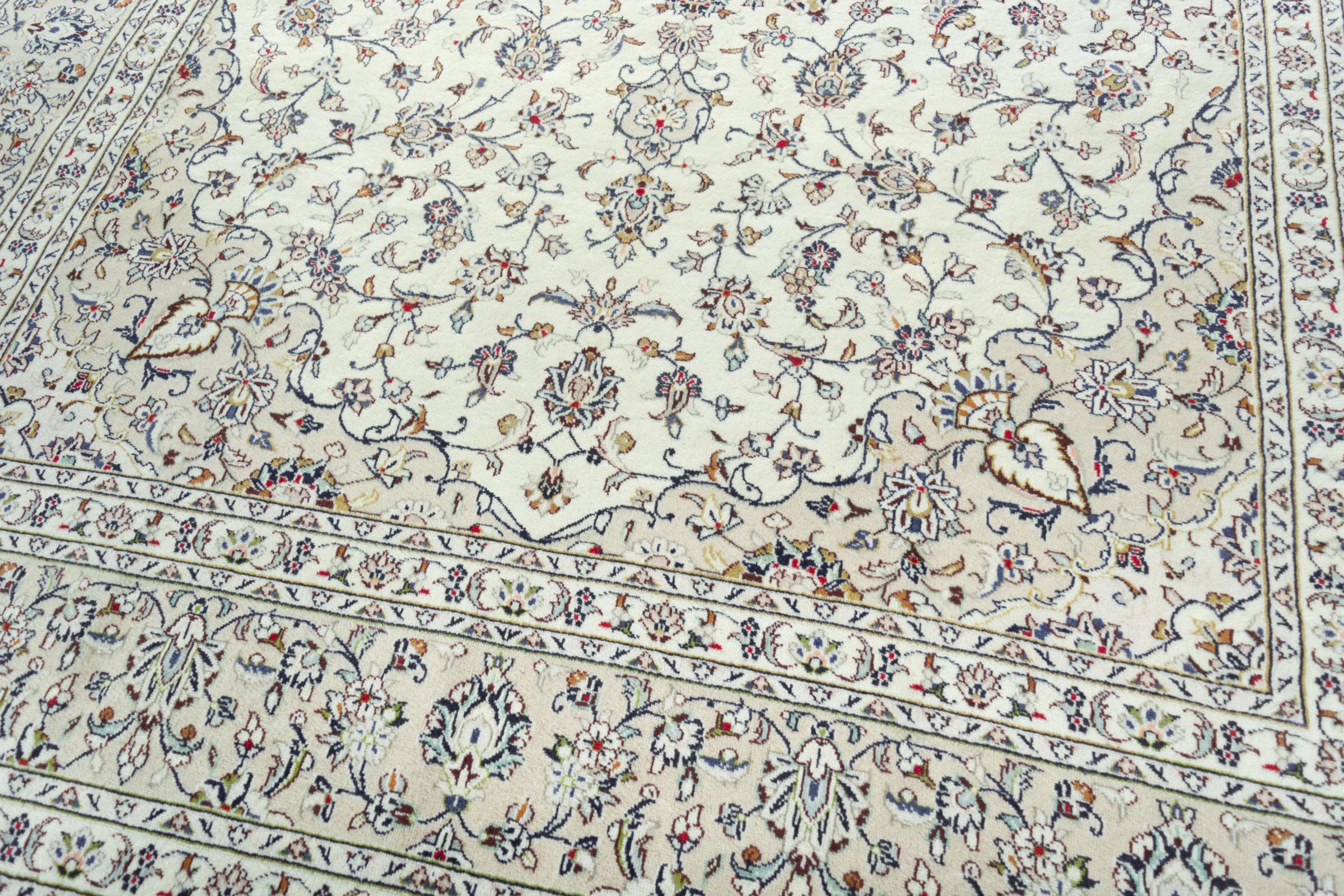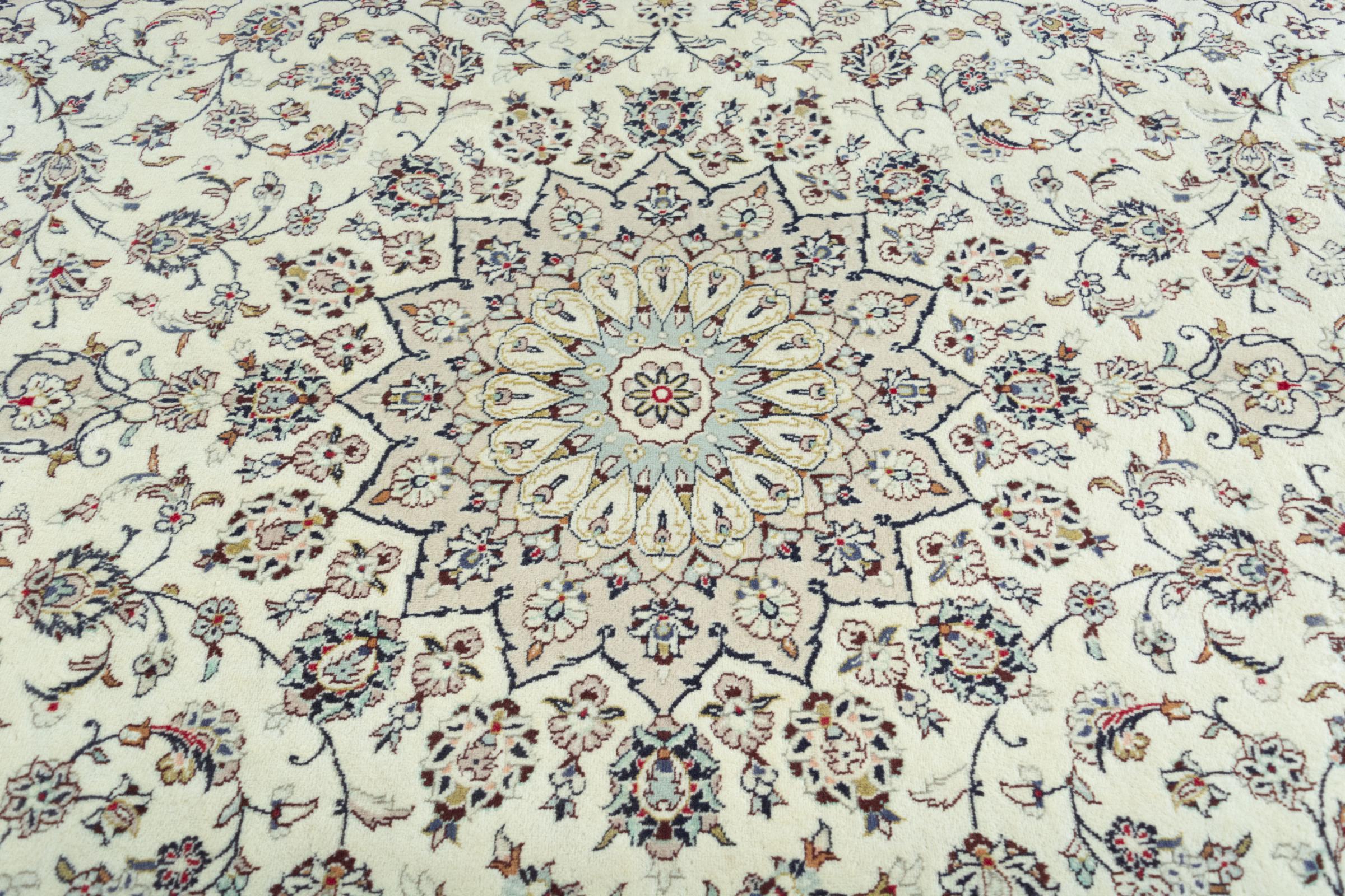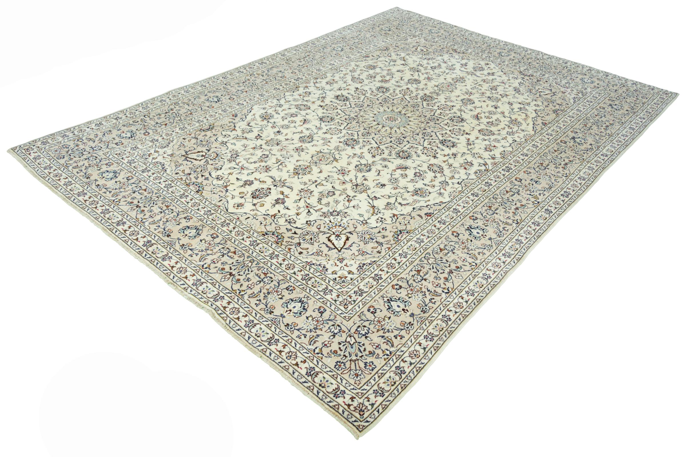 Questo tappeto di Kashan (Keshan) è tenuto nel suo design persiano molto tradizionale e tipico con bellissimi ornamenti. I tappeti Kashan sono molto popolari grazie al loro design eccezionalmente elegante. Questi tappeti provengono da Kashan, una città sull'antica Via della Seta. Questo tappeto è stato annodato a mano con lana di pecora di alta qualità e sarà un pezzo unico nella tua casa.