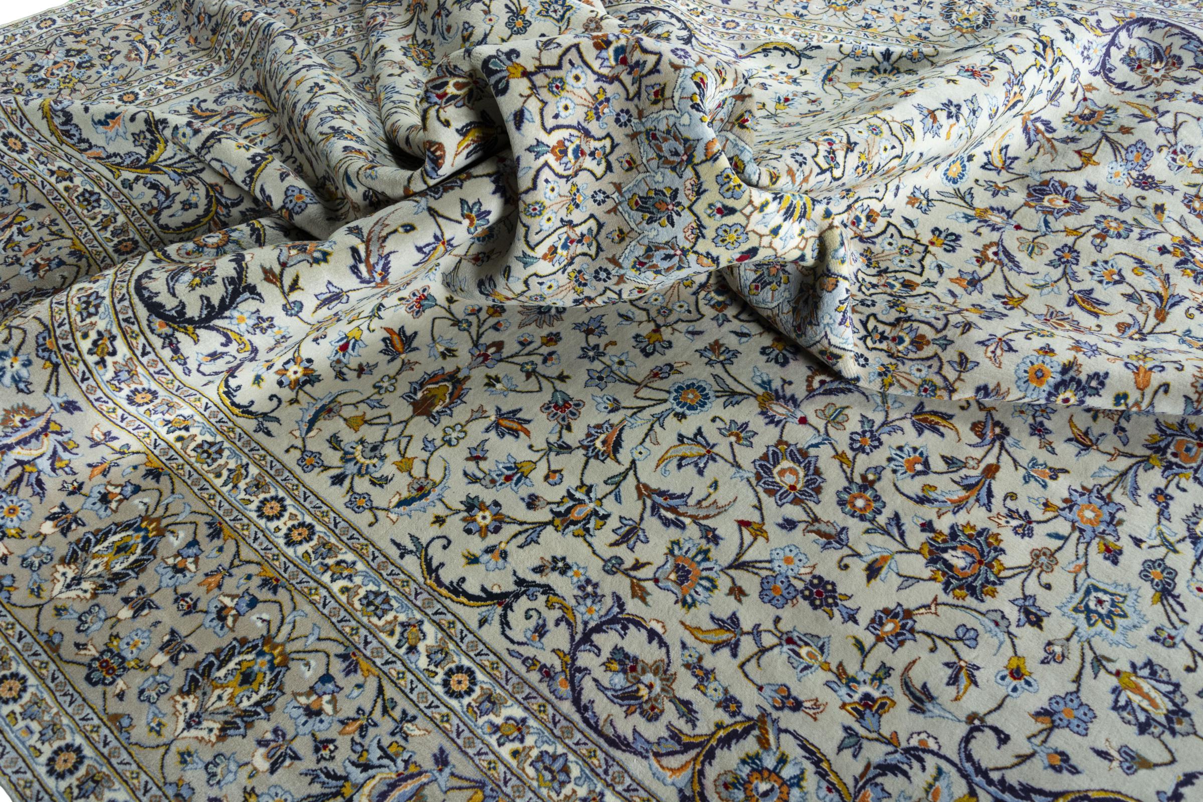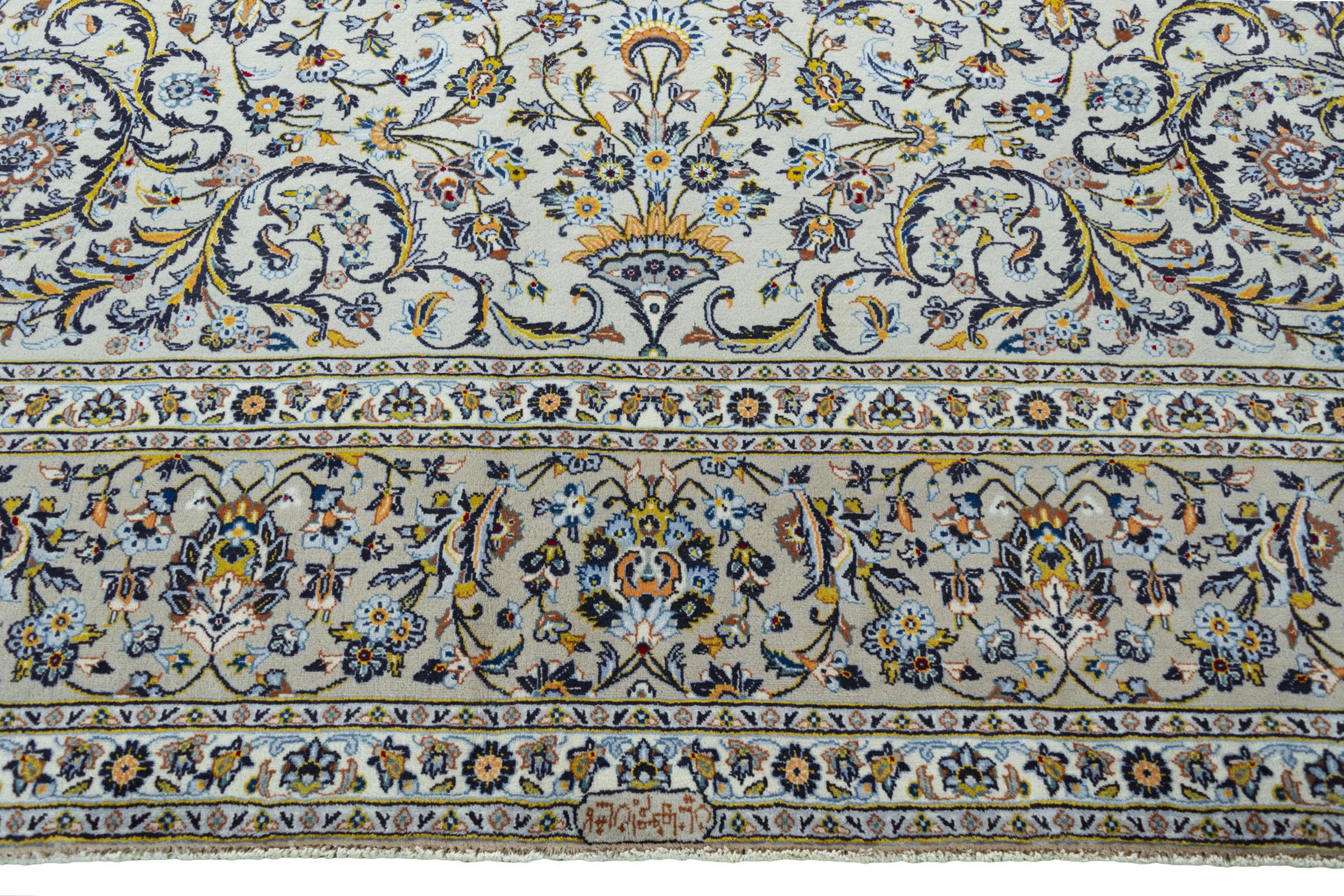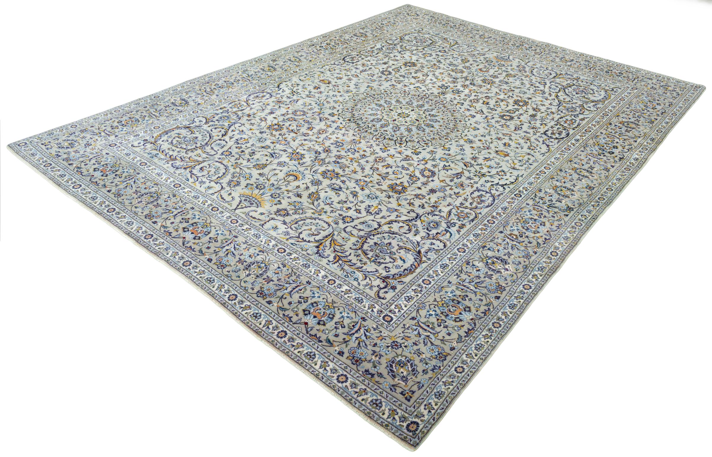 Questo tappeto di Kashan (Keshan) è tenuto nel suo design persiano molto tradizionale e tipico con bellissimi ornamenti. I tappeti Kashan sono molto popolari grazie al loro design eccezionalmente elegante. Questi tappeti provengono da Kashan, una città sull'antica Via della Seta. Questo tappeto è stato annodato a mano con lana di pecora di alta qualità e sarà un pezzo unico nella tua casa.