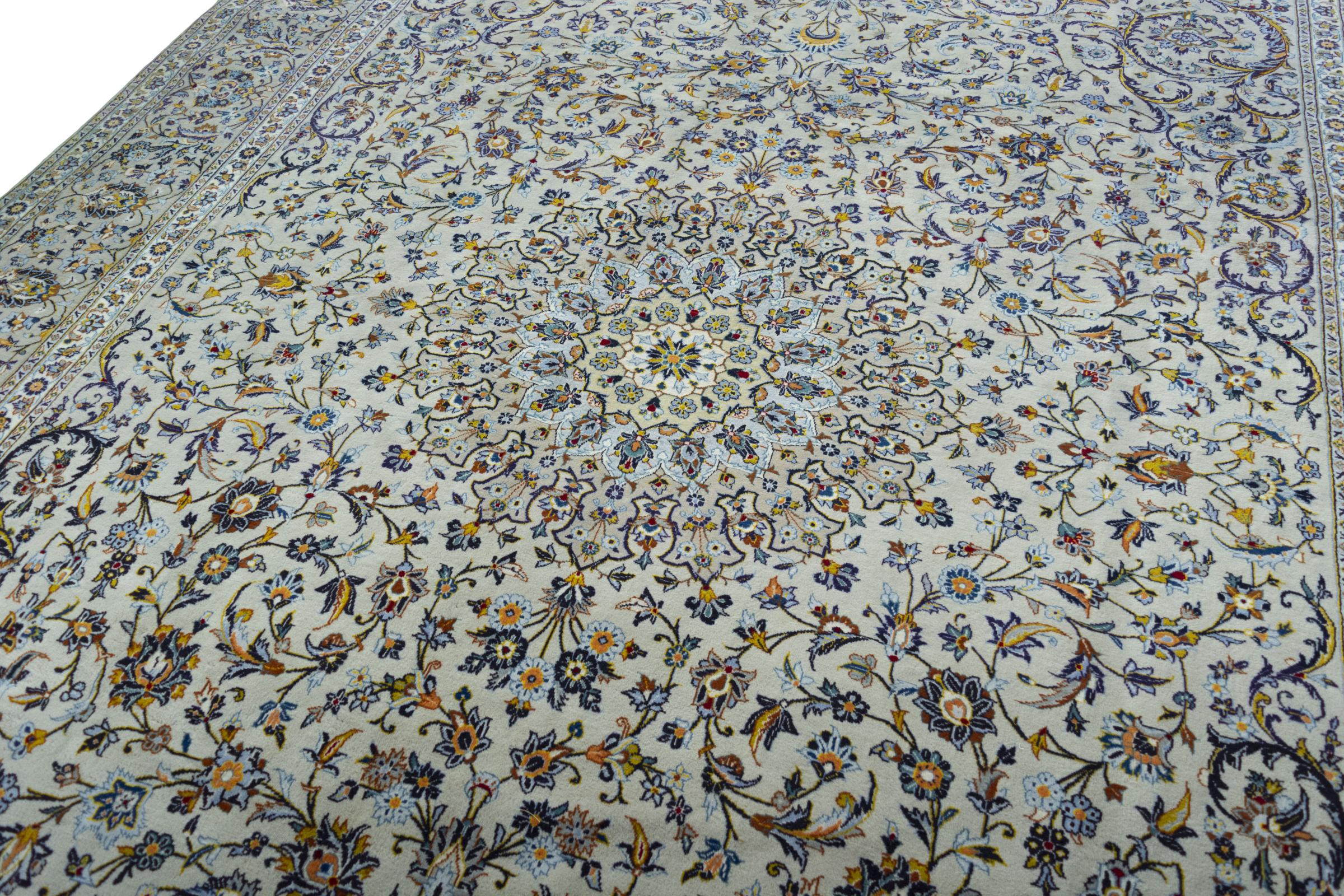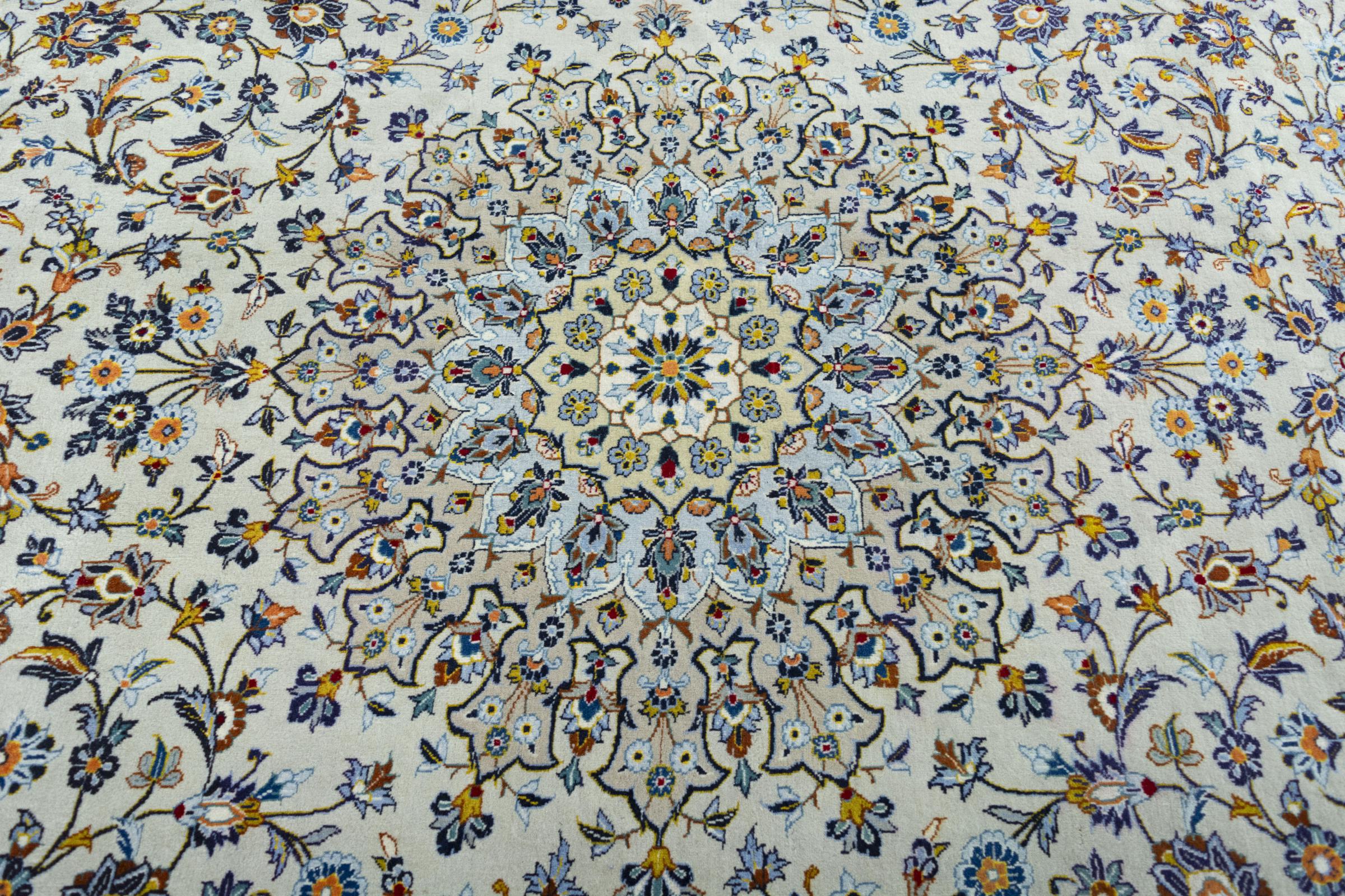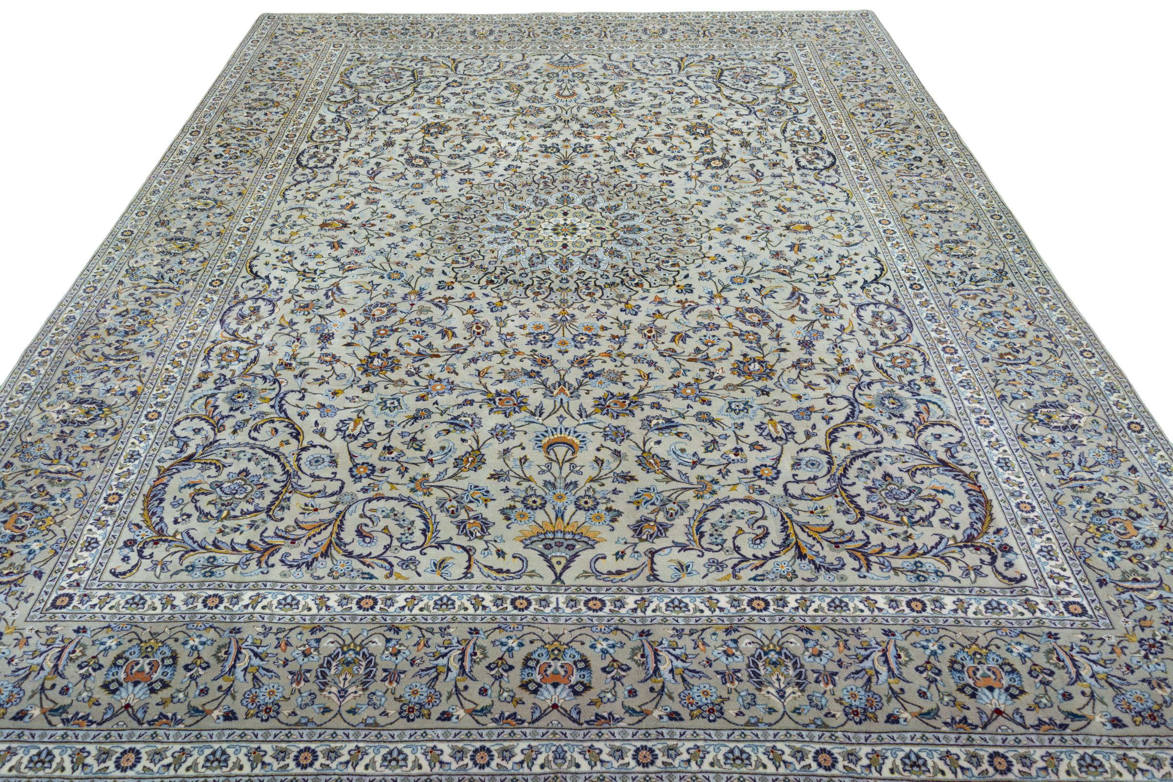 Questo tappeto di Kashan (Keshan) è tenuto nel suo design persiano molto tradizionale e tipico con bellissimi ornamenti. I tappeti Kashan sono molto popolari grazie al loro design eccezionalmente elegante. Questi tappeti provengono da Kashan, una città sull'antica Via della Seta. Questo tappeto è stato annodato a mano con lana di pecora di alta qualità e sarà un pezzo unico nella tua casa.