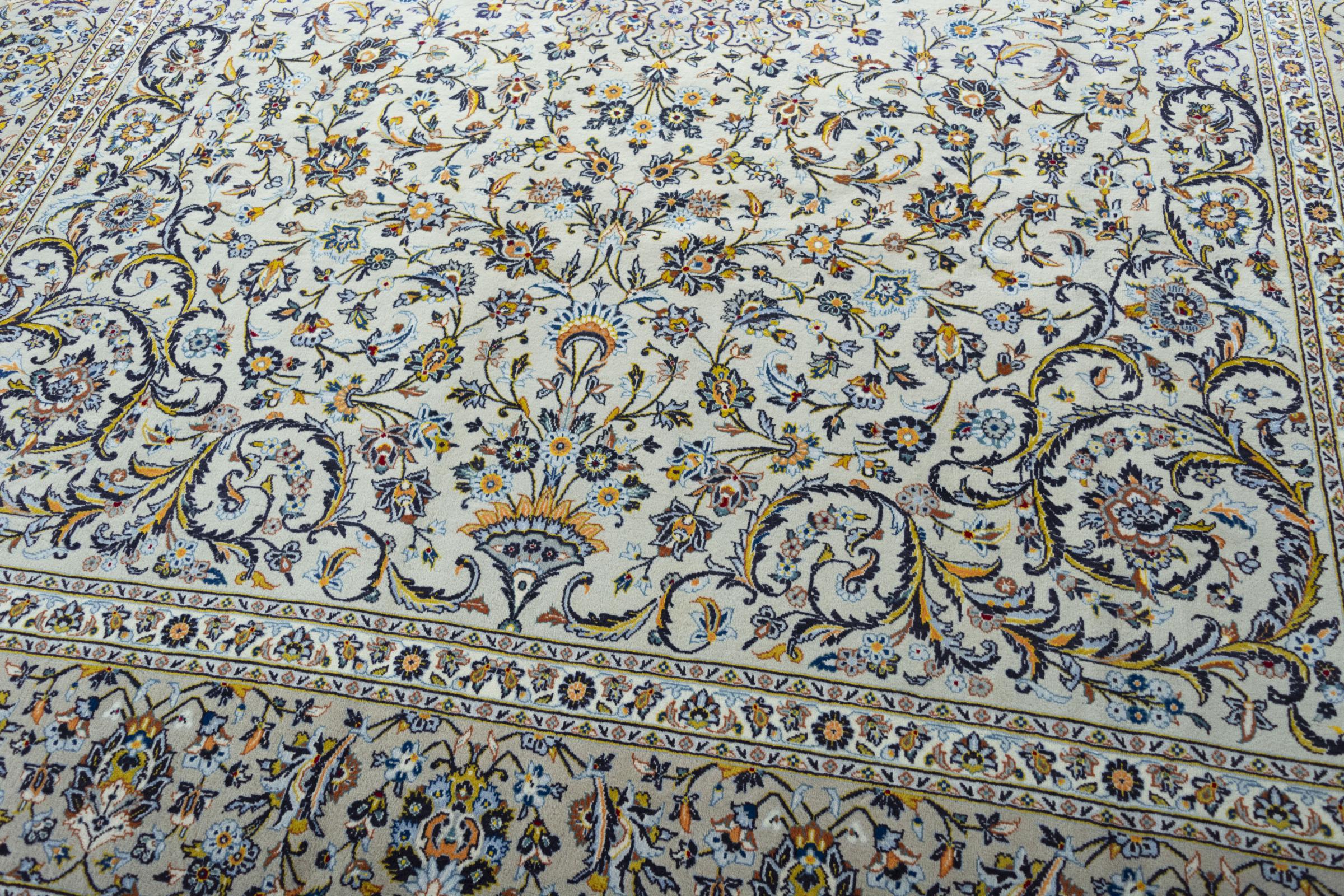 Tappeto-N.: 285892005384000 Dimensione: 389x292 cm Spessore: circa . 12 mm Nodi: 120 000 - 150 000 / m² Lavorazione: Annodato a mano Fondo: Lana di Cork Catena: Cotone Origine: Persia / Iran Età: Nuovo Peso: circa . 40 kg Disponibile: Unico - Solo 1 disponibili