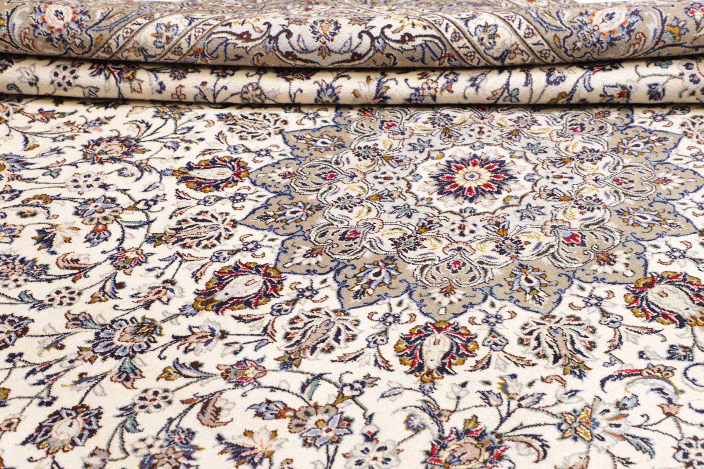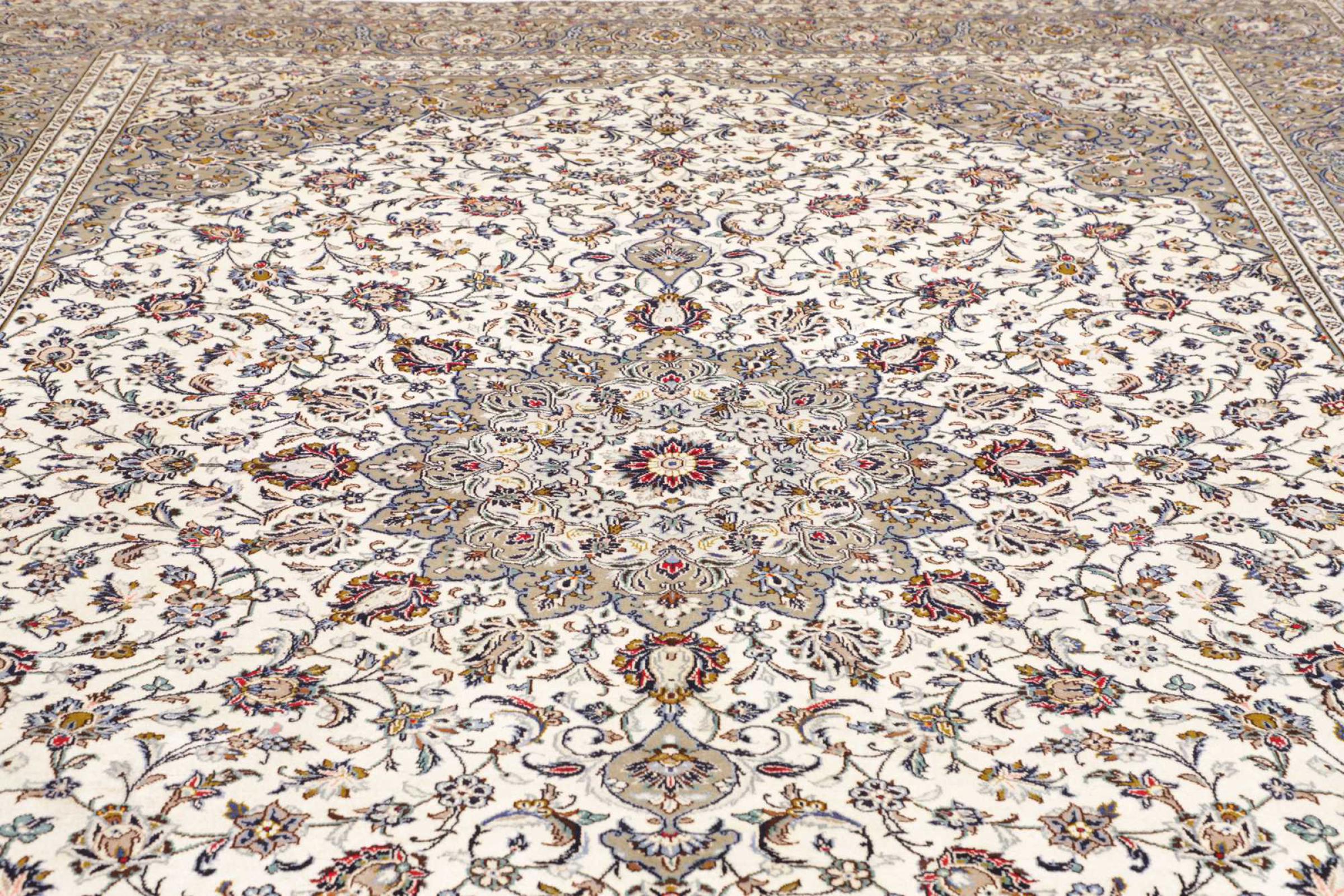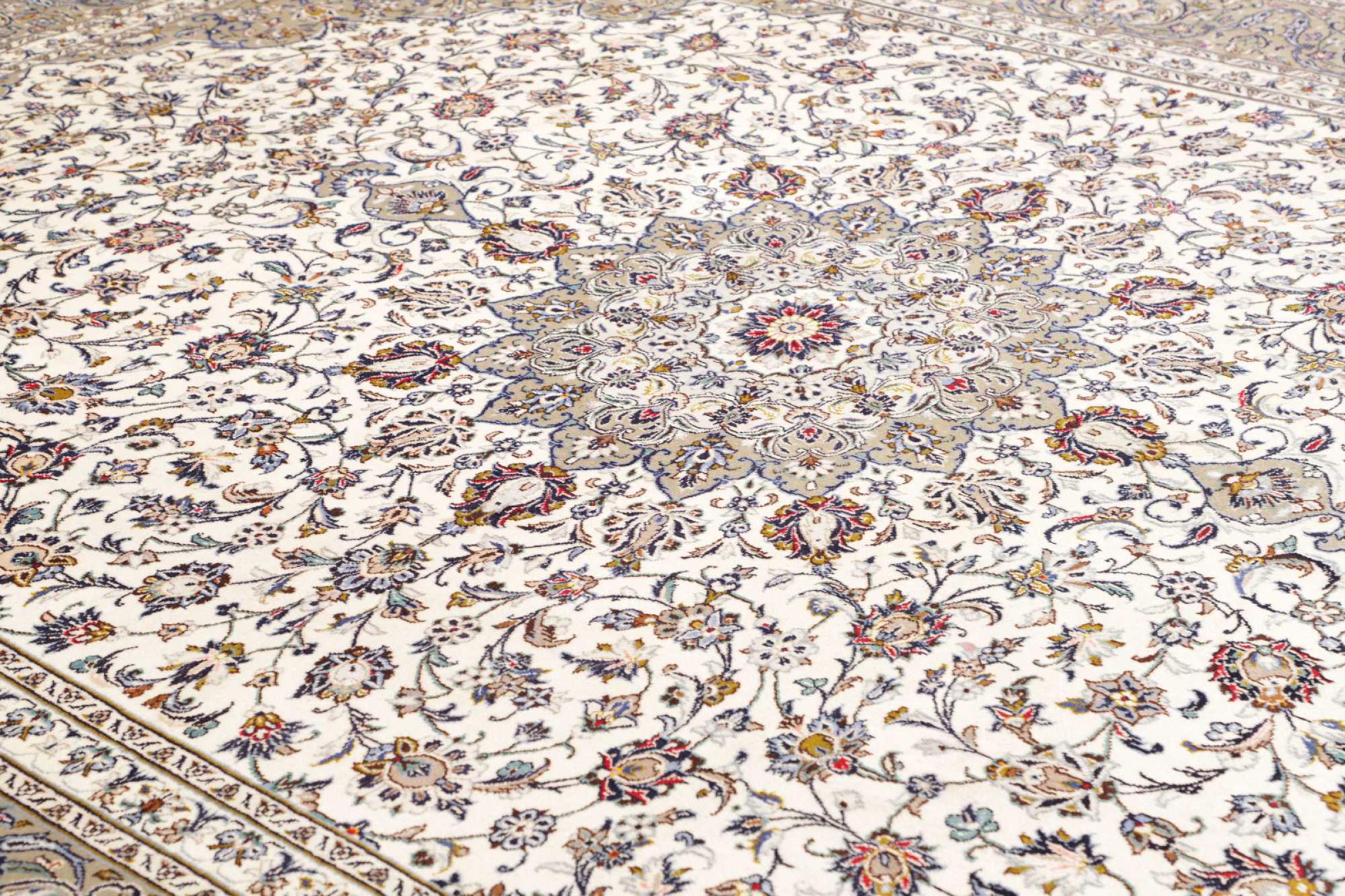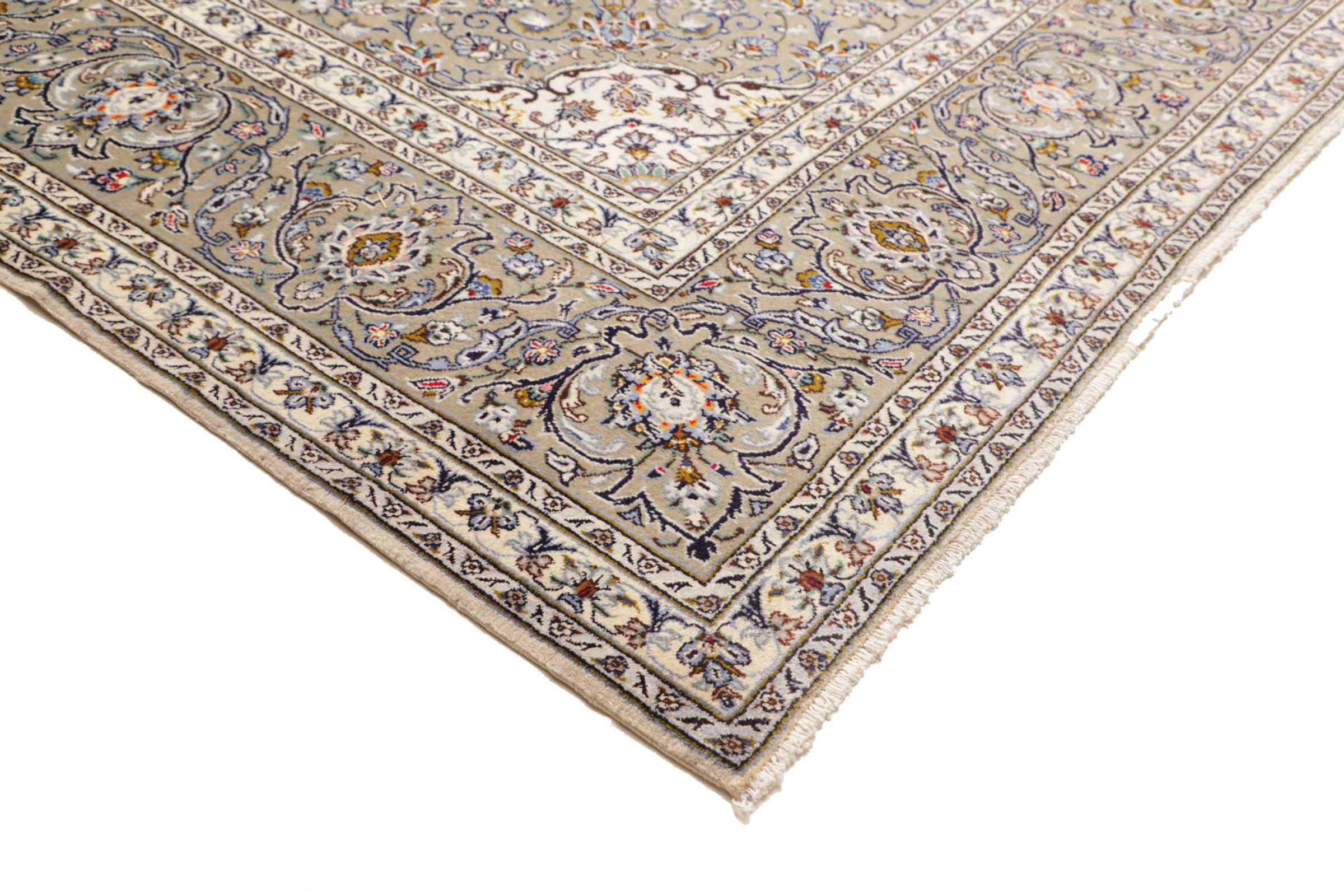 Questo tappeto di Kashan (Keshan) è tenuto nel suo design persiano molto tradizionale e tipico con bellissimi ornamenti. I tappeti Kashan sono molto popolari grazie al loro design eccezionalmente elegante. Questi tappeti provengono da Kashan, una città sull'antica Via della Seta. Questo tappeto è stato annodato a mano con lana di pecora di alta qualità e sarà un pezzo unico nella tua casa.