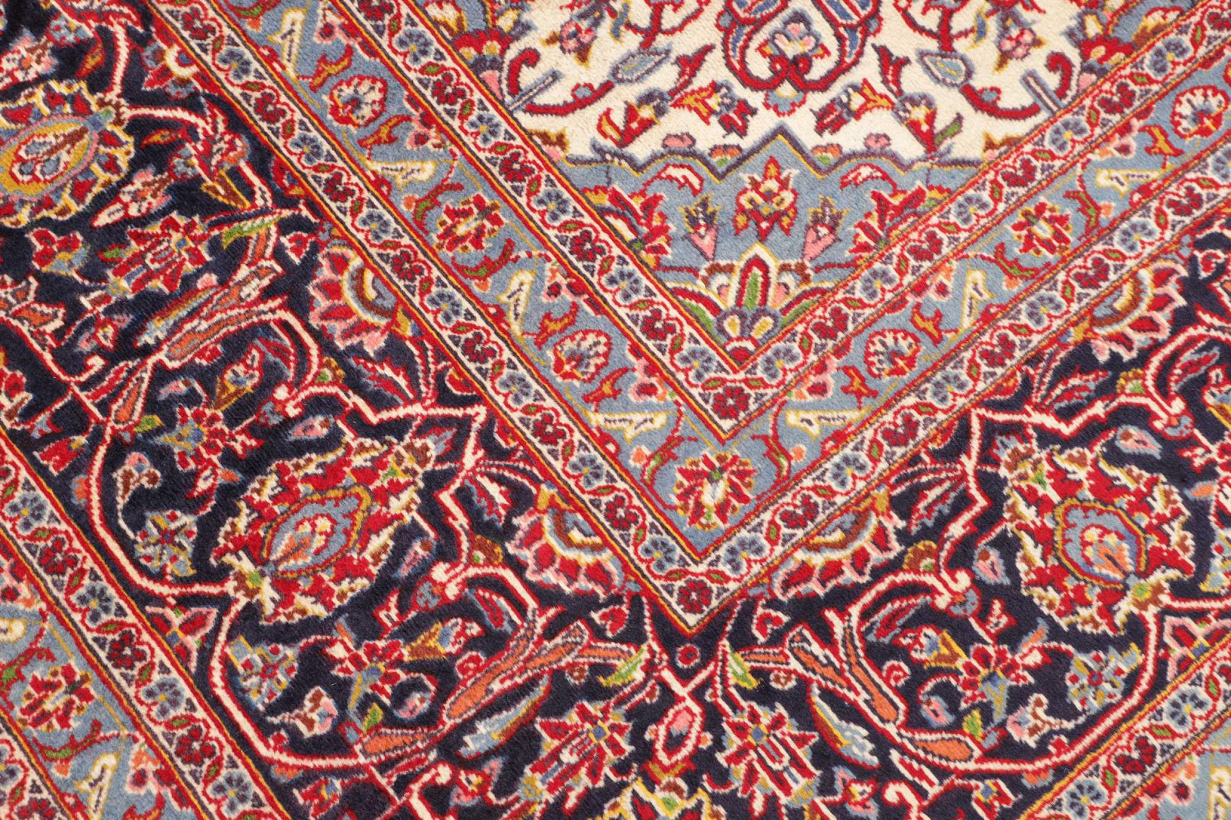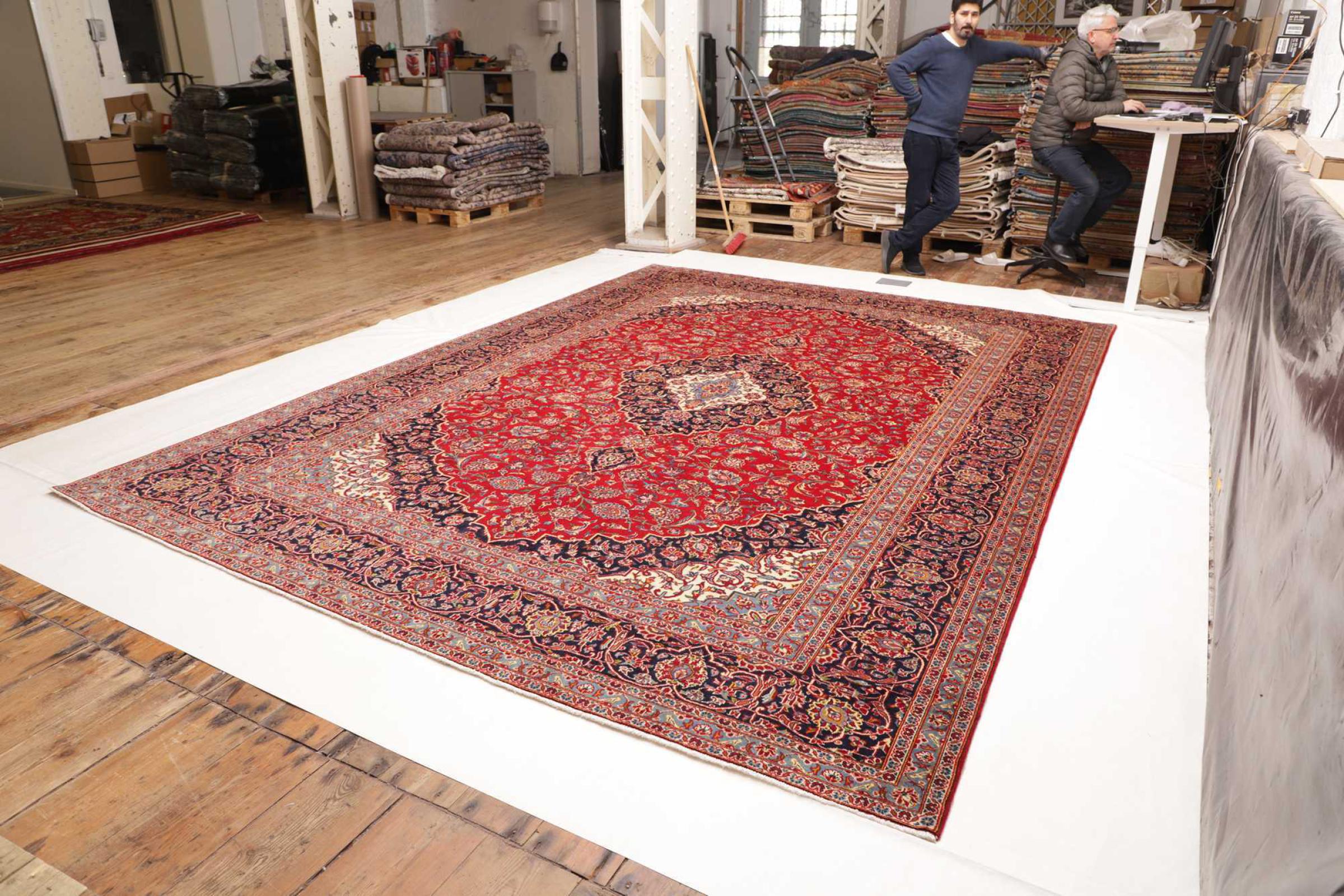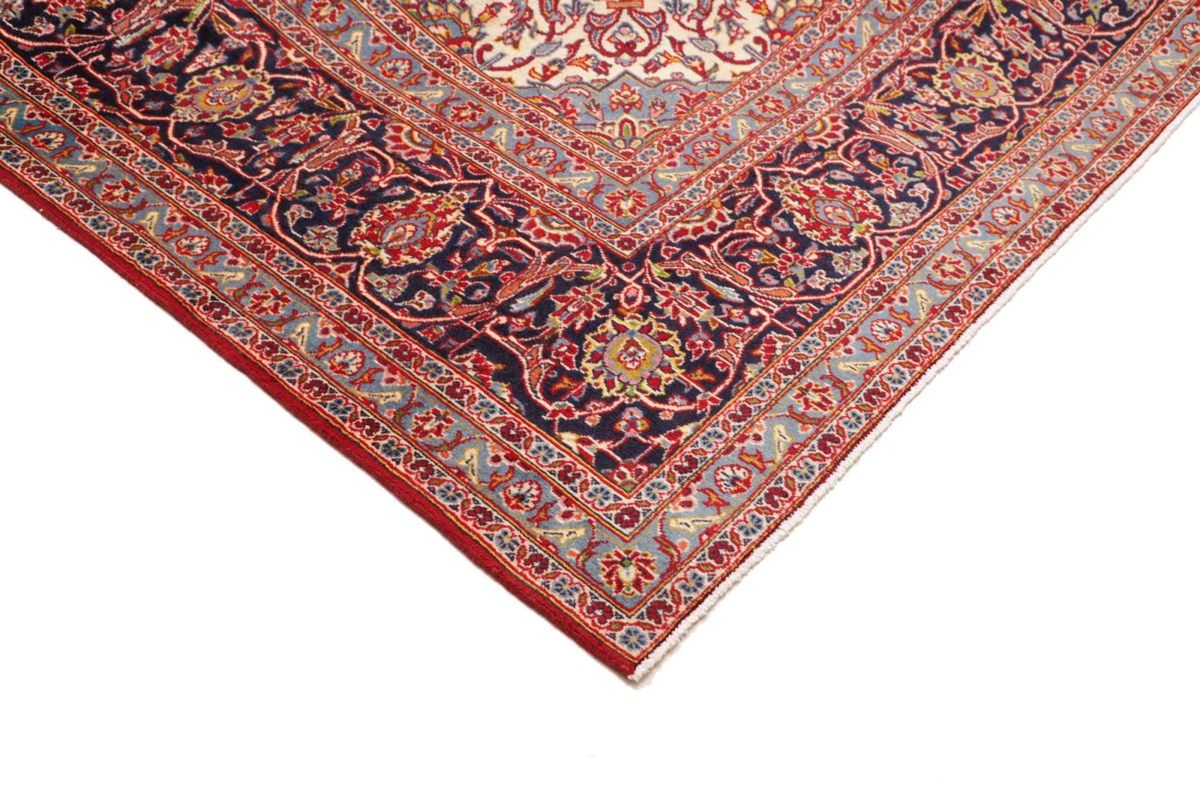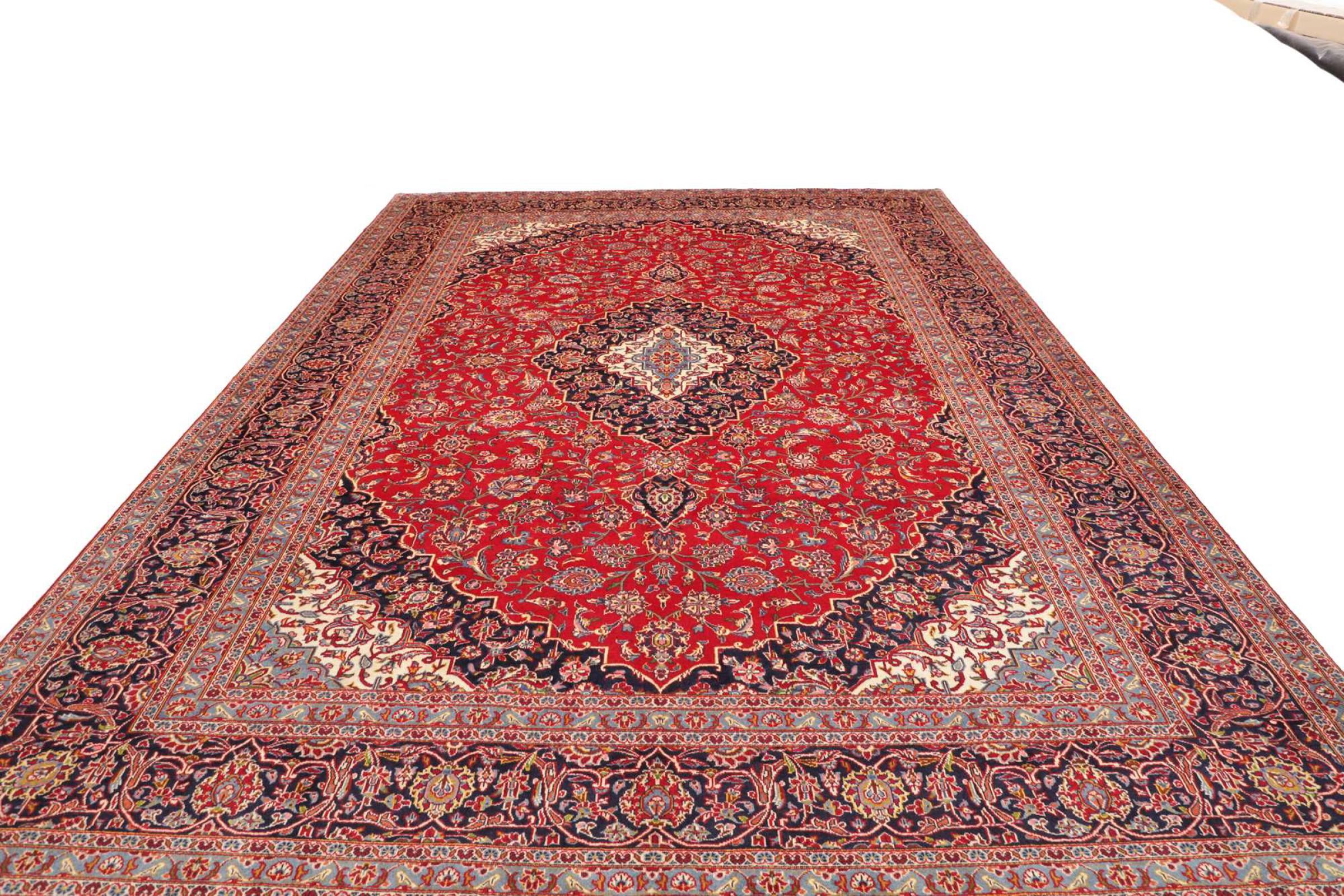 Questo tappeto di Kashan (Keshan) è tenuto nel suo design persiano molto tradizionale e tipico con bellissimi ornamenti. I tappeti Kashan sono molto popolari grazie al loro design eccezionalmente elegante. Questi tappeti provengono da Kashan, una città sull'antica Via della Seta. Questo tappeto è stato annodato a mano con lana di pecora di alta qualità e sarà un pezzo unico nella tua casa.