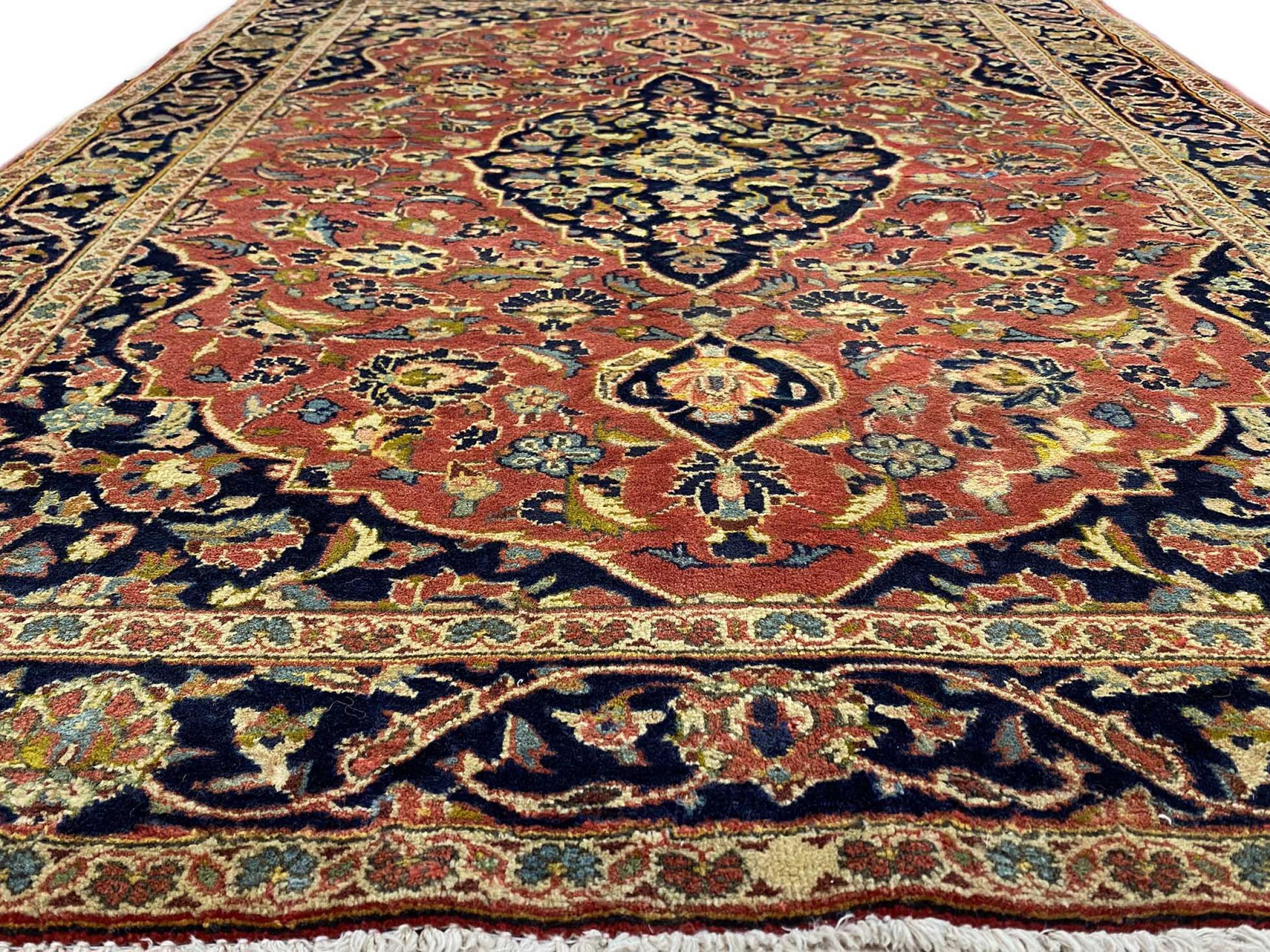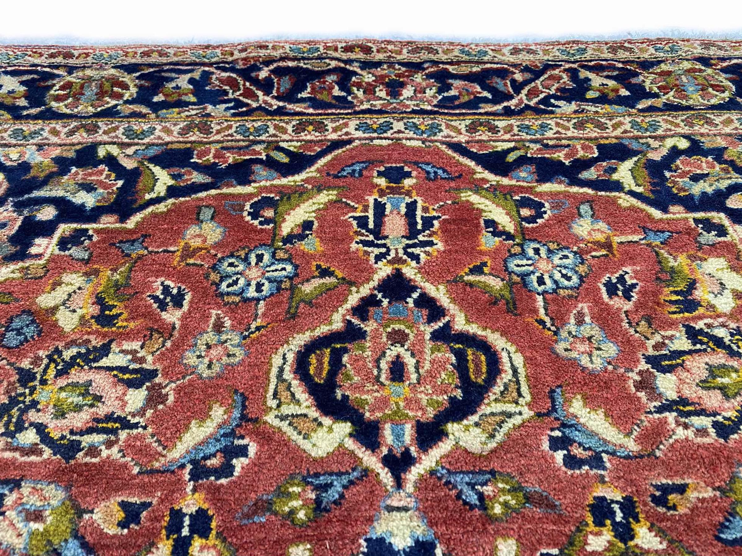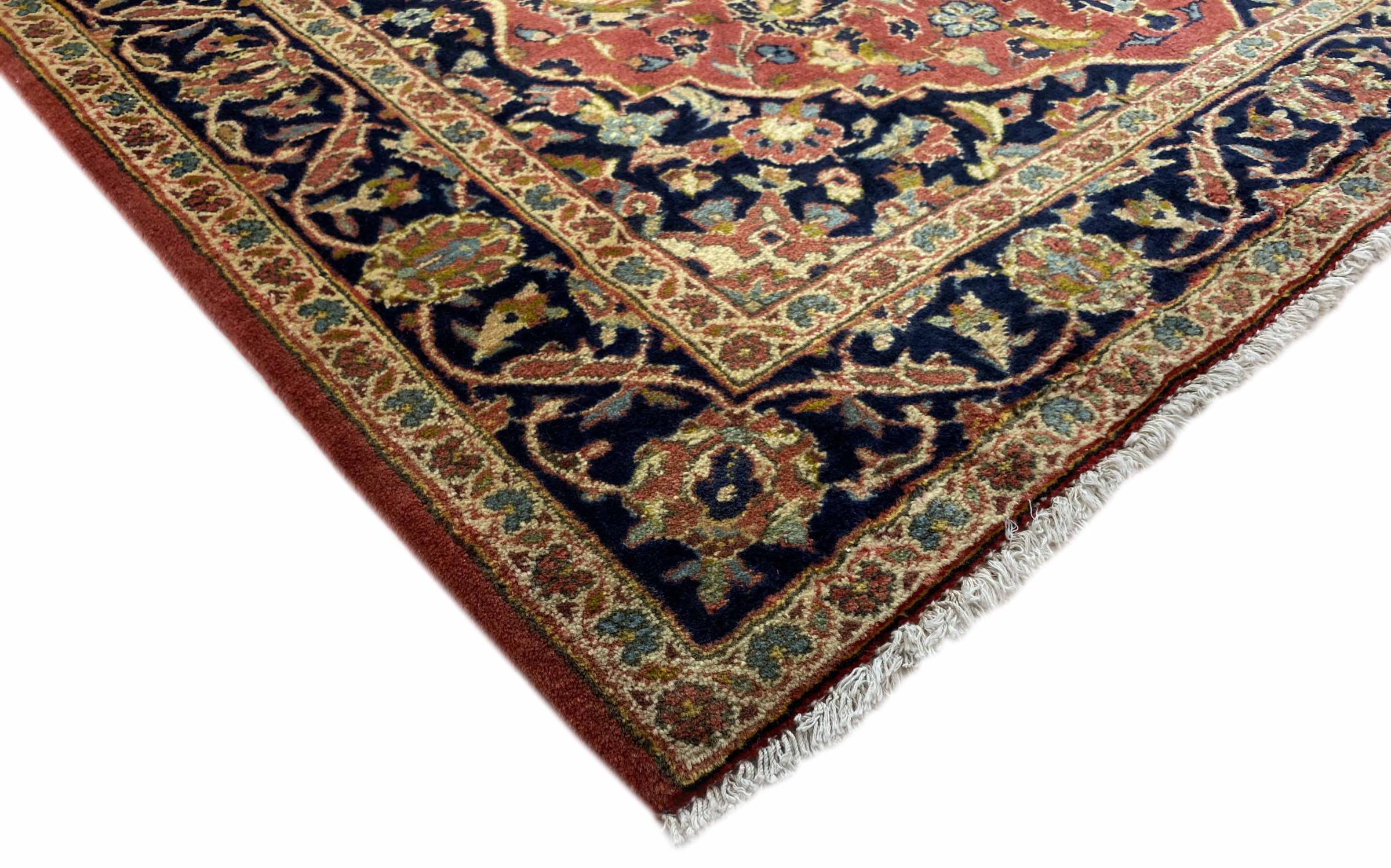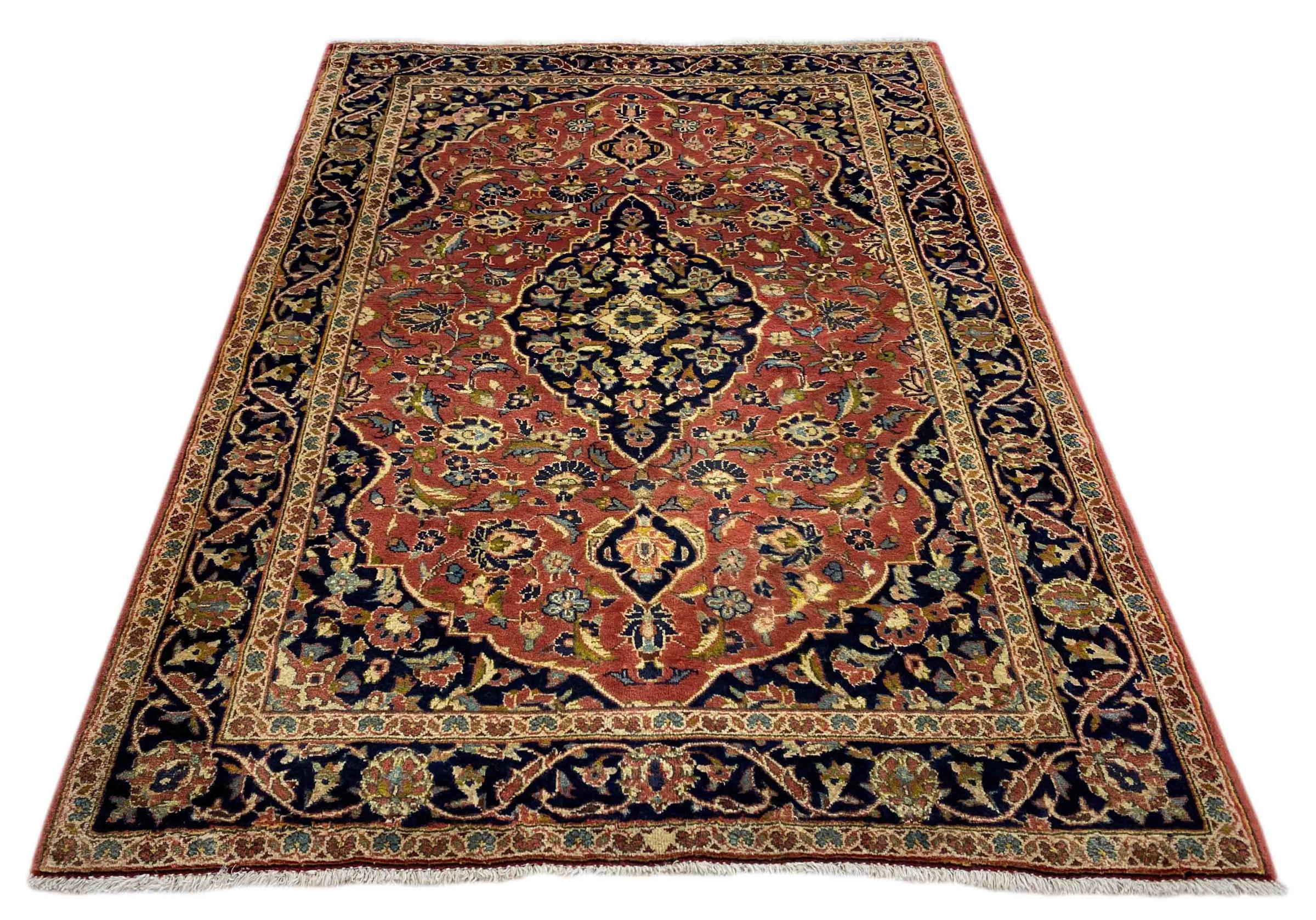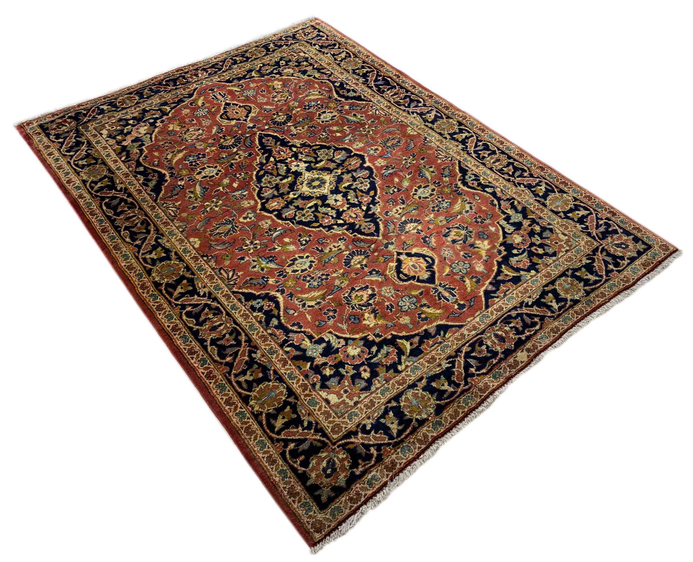 Questo tappeto di Kashan (Keshan) è tenuto nel suo design persiano molto tradizionale e tipico con bellissimi ornamenti. I tappeti Kashan sono molto popolari grazie al loro design eccezionalmente elegante. Questi tappeti provengono da Kashan, una città sull'antica Via della Seta. Questo tappeto è stato annodato a mano con lana di pecora di alta qualità e sarà un pezzo unico nella tua casa.