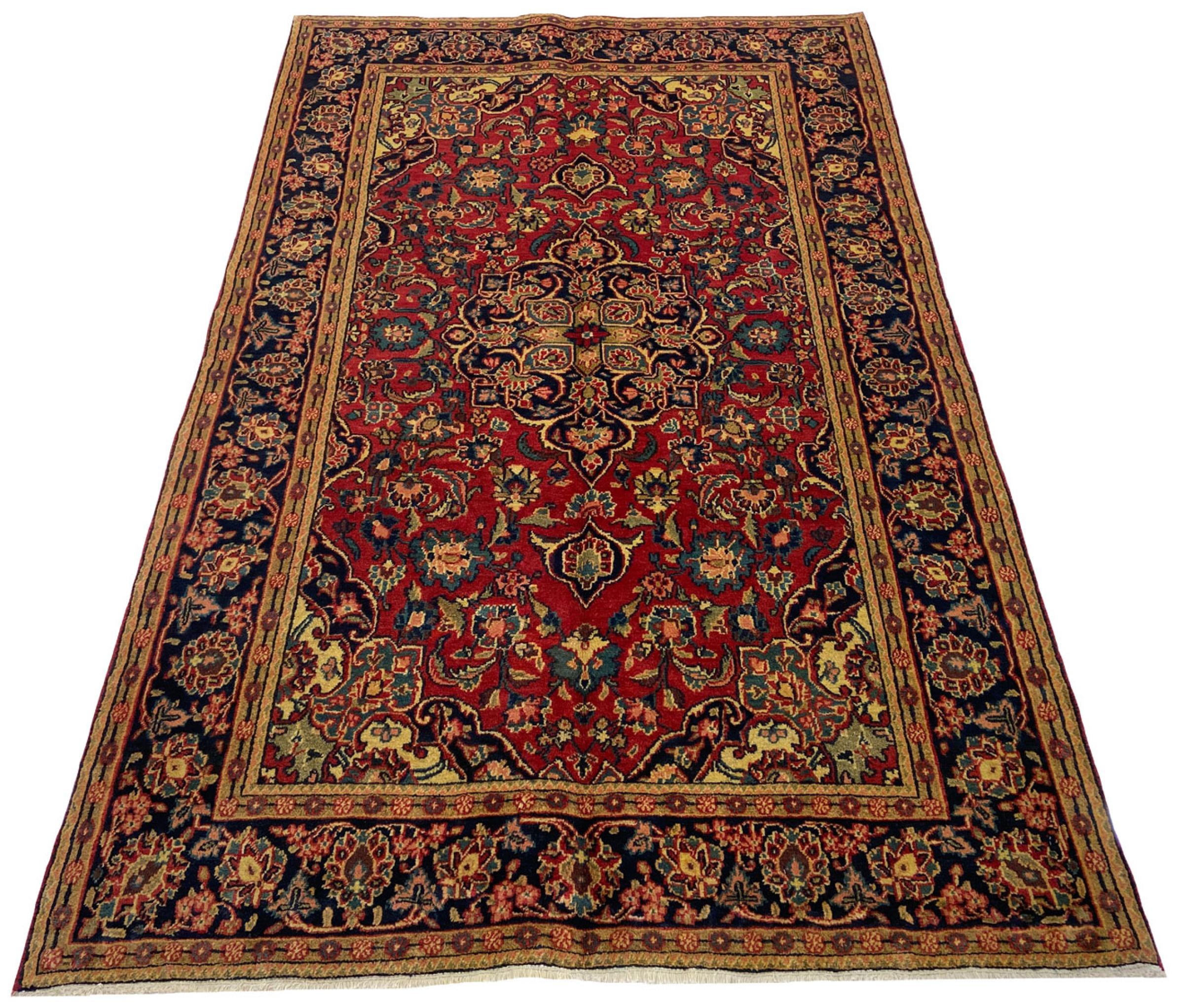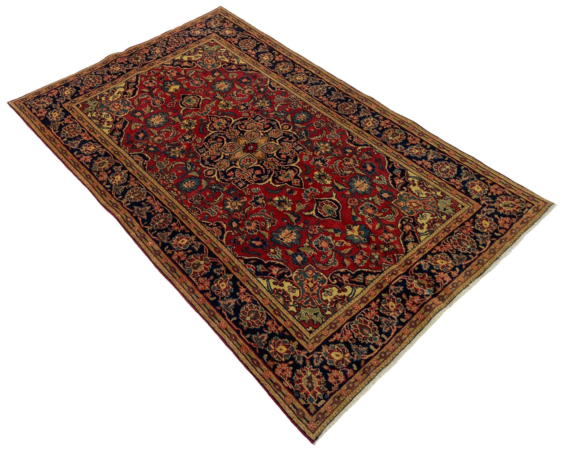 Questo tappeto di Kashan (Keshan) è tenuto nel suo design persiano molto tradizionale e tipico con bellissimi ornamenti. I tappeti Kashan sono molto popolari grazie al loro design eccezionalmente elegante. Questi tappeti provengono da Kashan, una città sull'antica Via della Seta. Questo tappeto è stato annodato a mano con lana di pecora di alta qualità e sarà un pezzo unico nella tua casa.