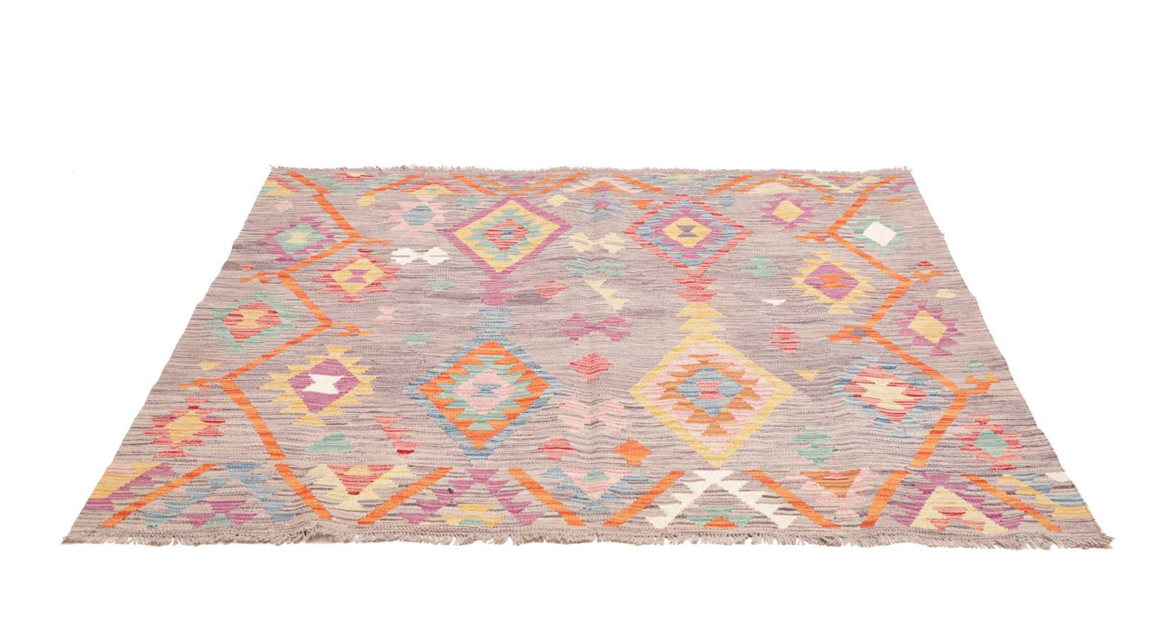 Questi tappeti kilim mostrano una differenza decisiva rispetto ai tappeti annodati a mano - sono tessuti a mano. Non hanno quindi un pelo alto di lana e sono spesso più piatti e ruvidi dei tappeti di lana annodati. La loro realizzazione è meno elaborata e quindi di solito sono molto più economici. Come vantaggio, i tappeti kilim sono anche molto più leggeri e possono essere stesi sia davanti che dietro. I kilim tessuti a mano provengono dall'ex Persia e ora sono spesso prodotti anche in Afghanistan. Hanno dei disegni piuttosto semplici e semplici, che sono dovuti alla loro tecnica di tessitura.