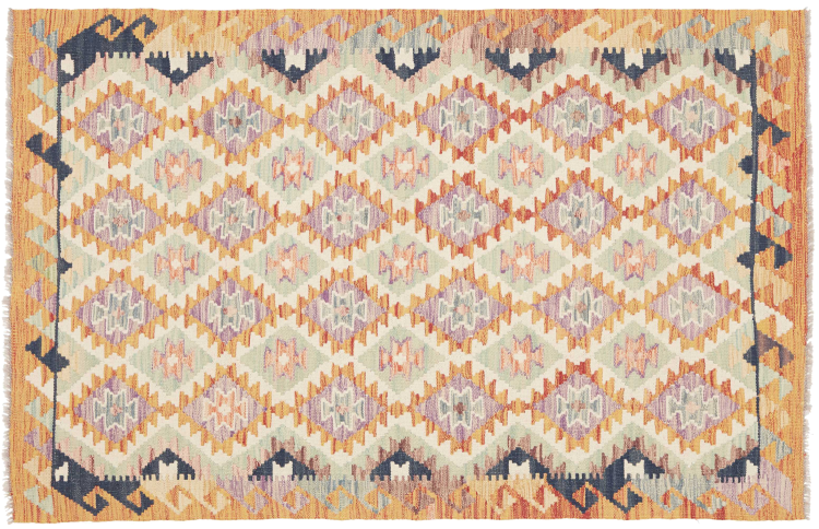 Questo kilim - afghano tessuto a mano è bello sia per i suoi colori e sia per il modello tipico. È stato tessuto a mano in Afghanistan con il 100% di lana. È anche robusto e durevole. Un vero e proprio profitto per voi e per la vostra casa.