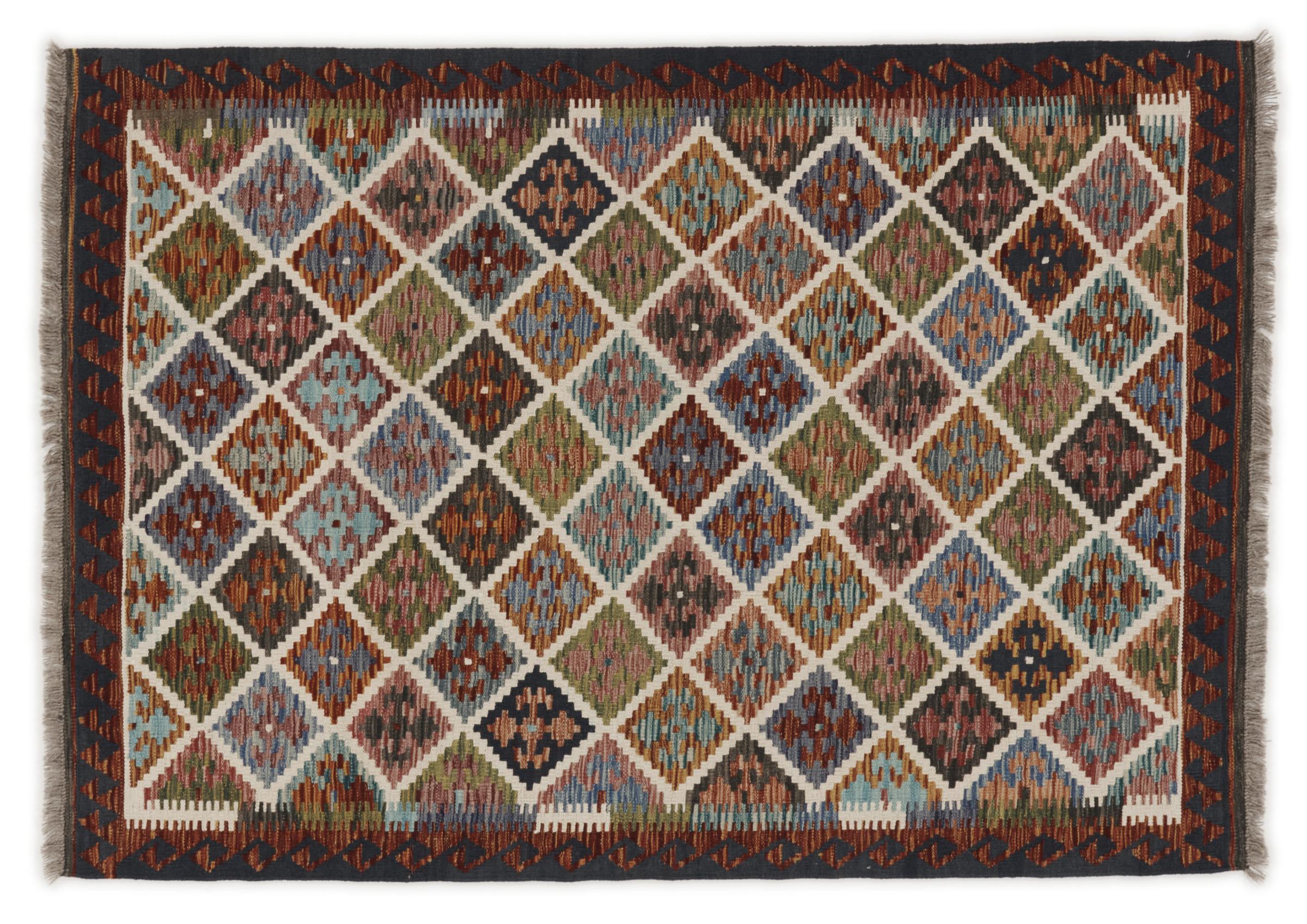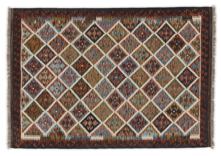 Questi tappeti kilim mostrano una differenza decisiva rispetto ai tappeti annodati a mano - sono tessuti a mano. Non hanno quindi un pelo alto di lana e sono spesso più piatti e ruvidi dei tappeti di lana annodati. La loro realizzazione è meno elaborata e quindi di solito sono molto più economici. Come vantaggio, i tappeti kilim sono anche molto più leggeri e possono essere stesi sia davanti che dietro. I kilim tessuti a mano provengono dall'ex Persia e ora sono spesso prodotti anche in Afghanistan. Hanno dei disegni piuttosto semplici e semplici, che sono dovuti alla loro tecnica di tessitura.