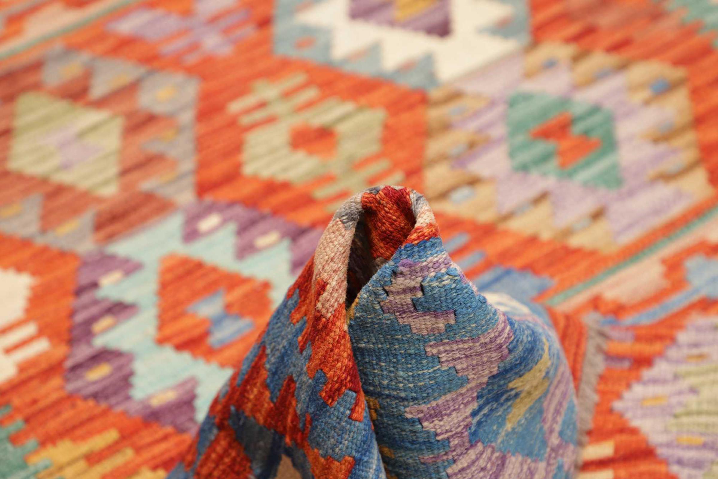 Questo kilim - afghano tessuto a mano è bello sia per i suoi colori e sia per il modello tipico. È stato tessuto a mano in Afghanistan con il 100% di lana. È anche robusto e durevole. Un vero e proprio profitto per voi e per la vostra casa.